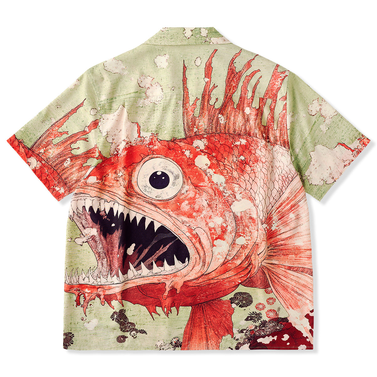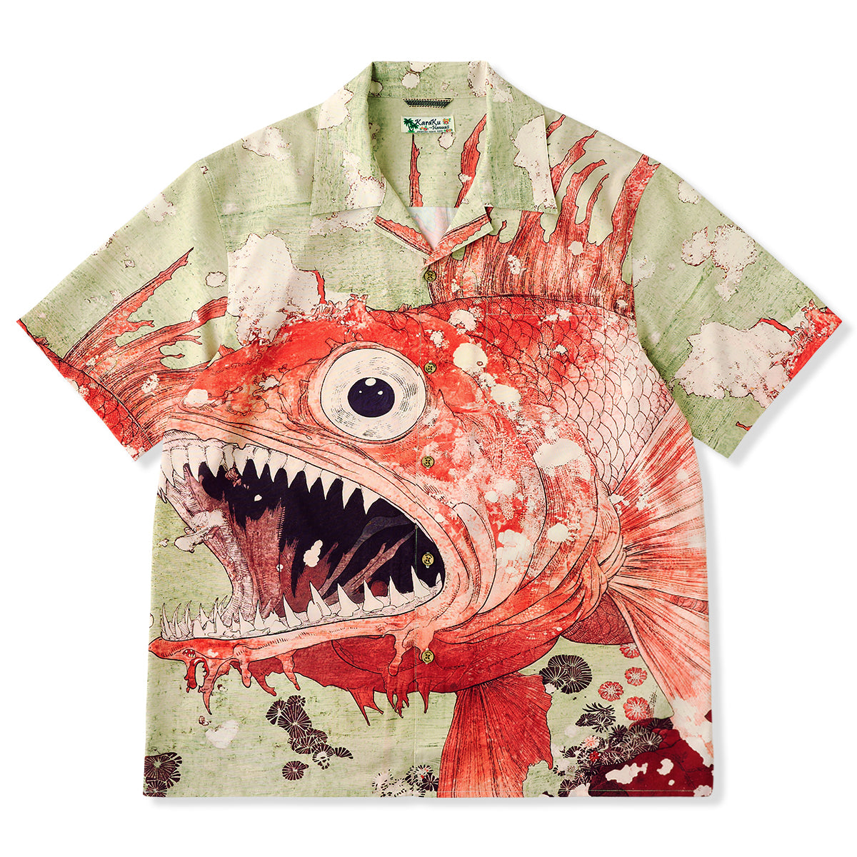 【予約】「紅鯉狂瀾」浮世絵風プリント入りアロハシャツ