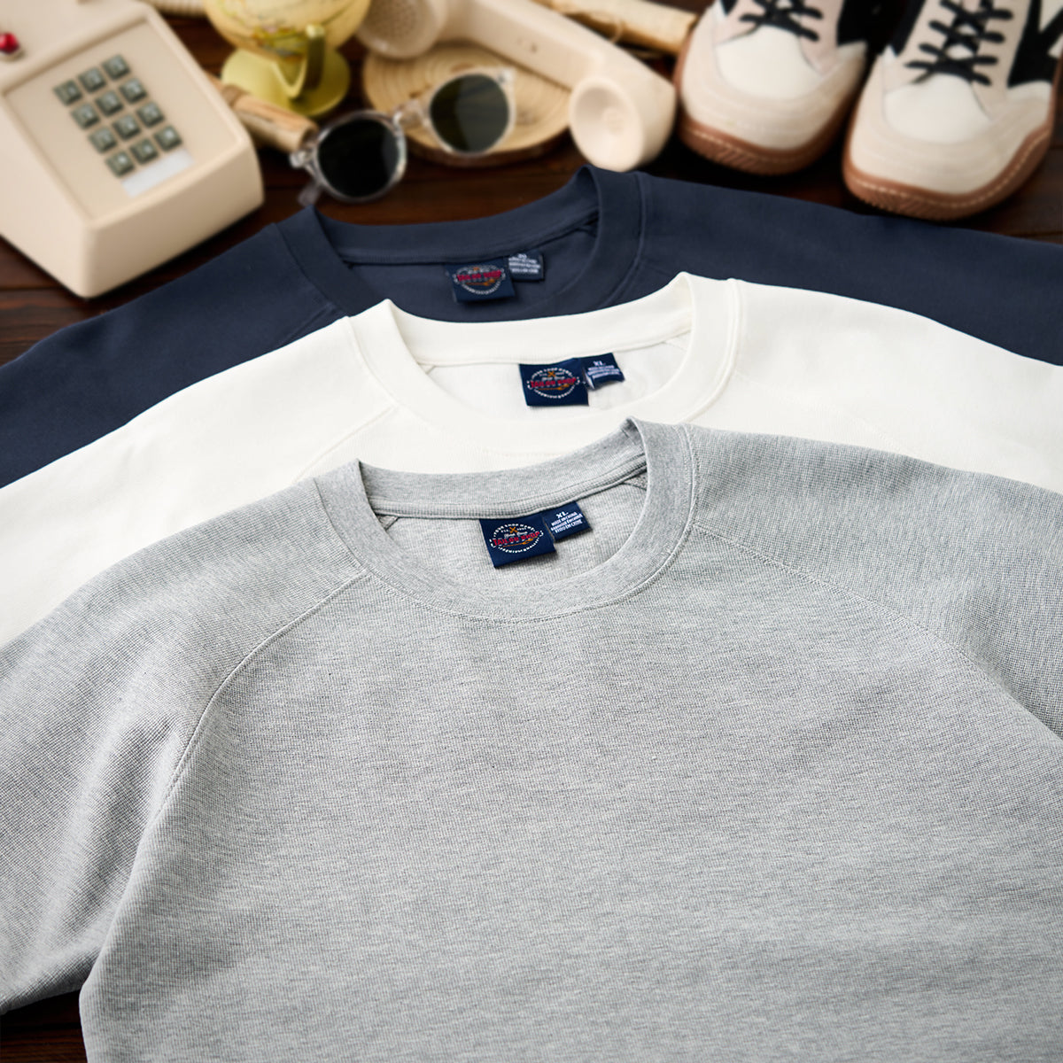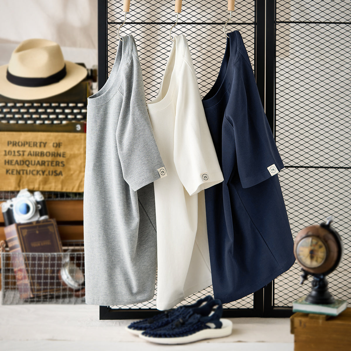 旬のライトグレーをはじめ、洗練された印象のホワイト、大人の穏やかな印象のネイビーなど3色で展開、スタイルに合わせてお選びいただける。