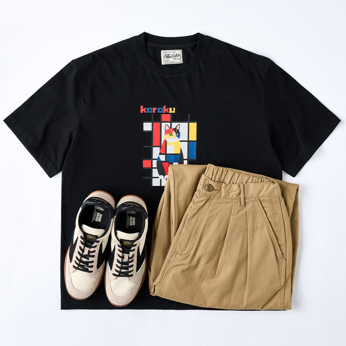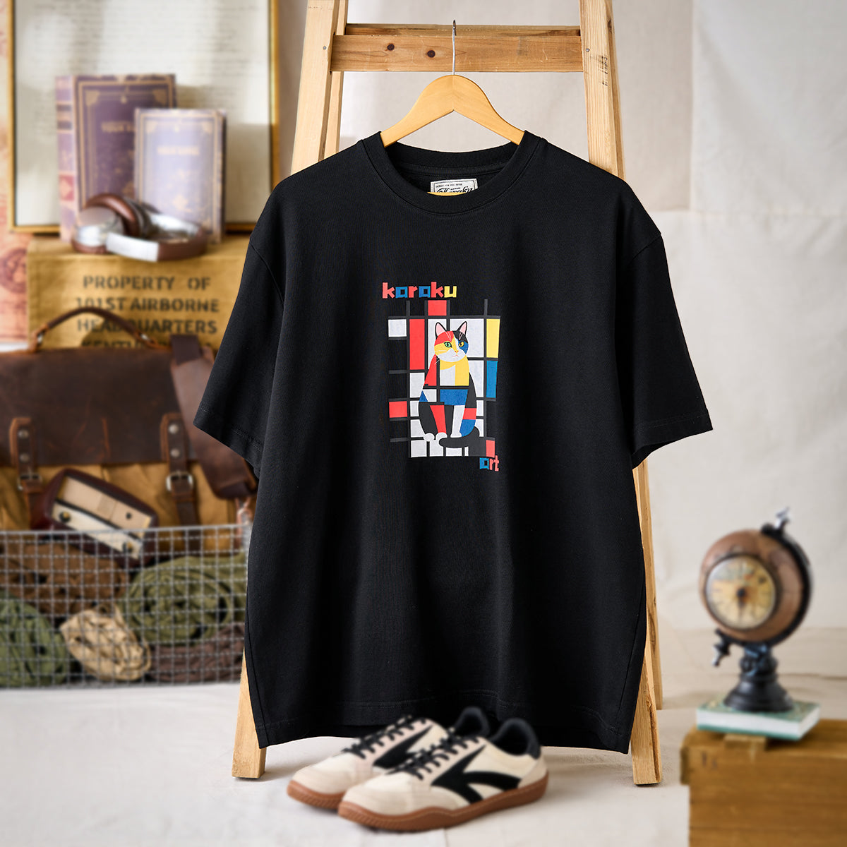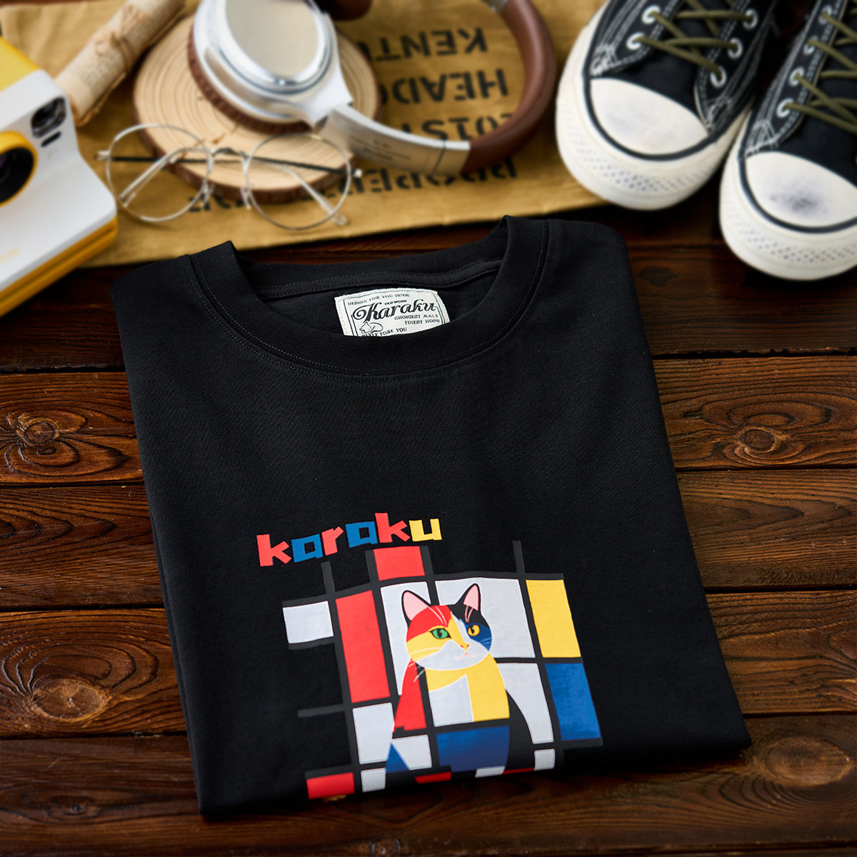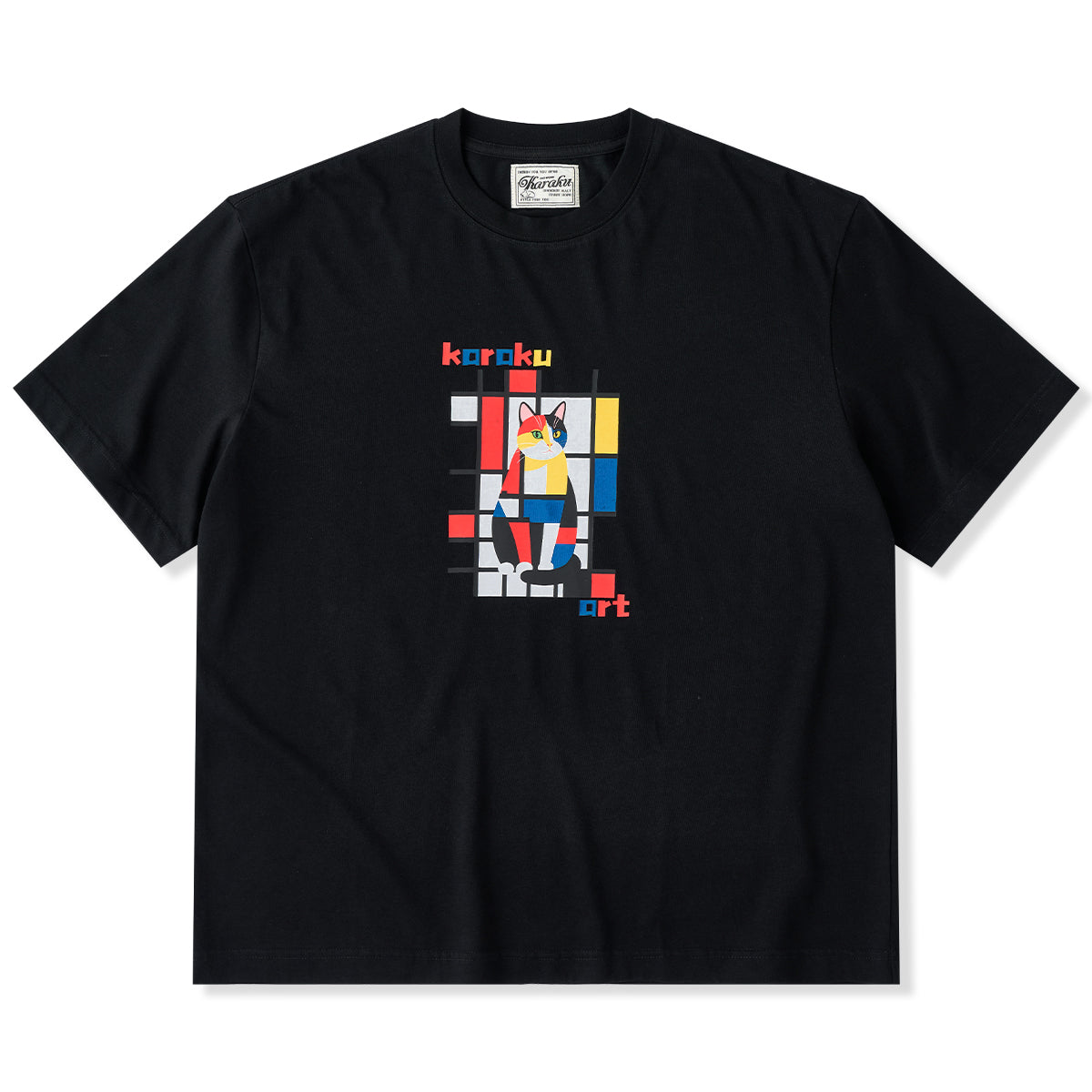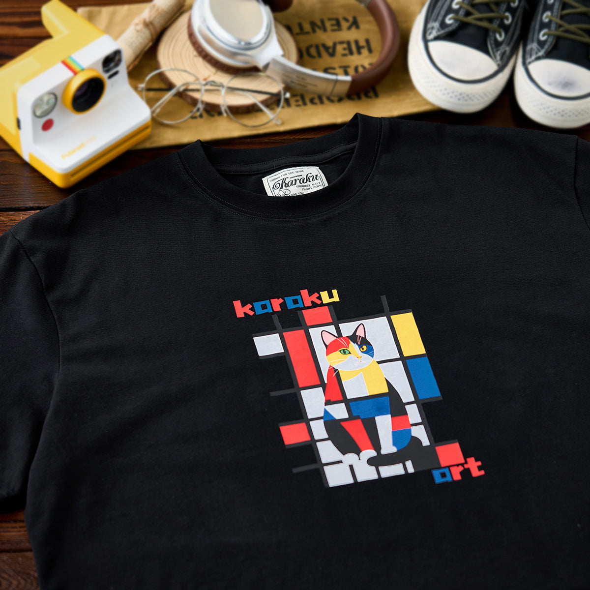 「KaraKu Art・モンドリニャン」パロディ風プリントコットンTシャツ