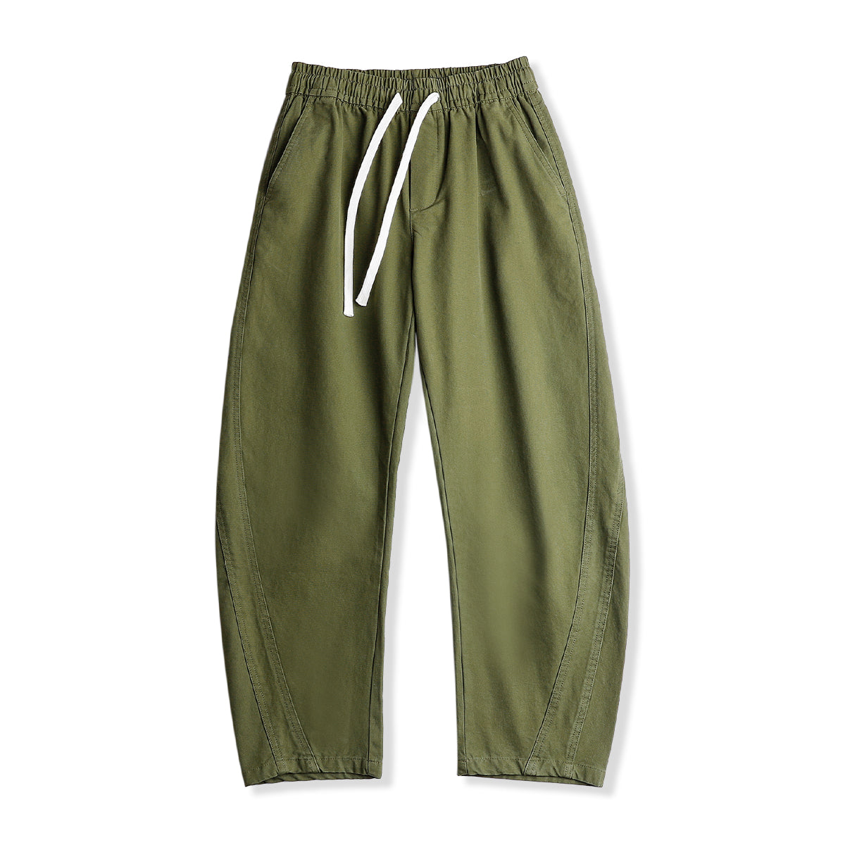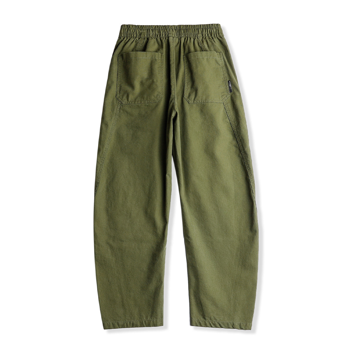 テーパードシルエットが特徴的で、ヒップや太もも周りにはゆとりがあり、裾に向かってやや細くなるデザインで、リラックス感がありながらも、だらしなくならない絶妙なバランスのシルエットになっている。