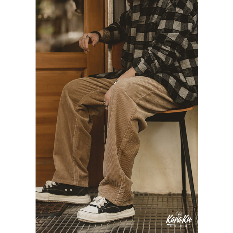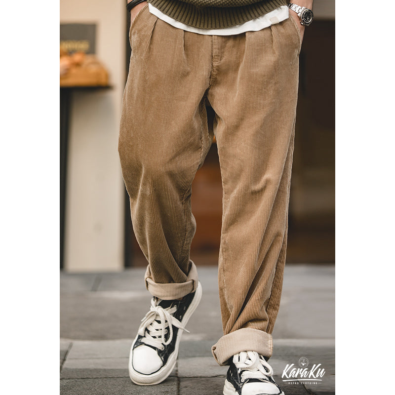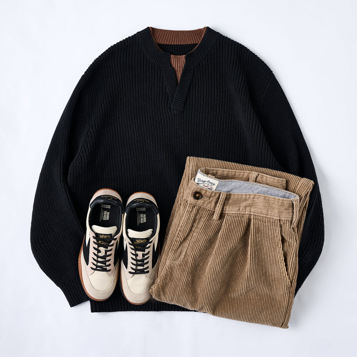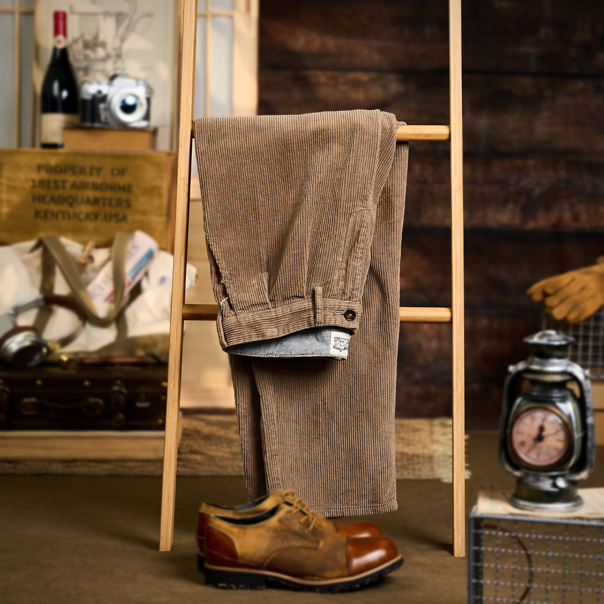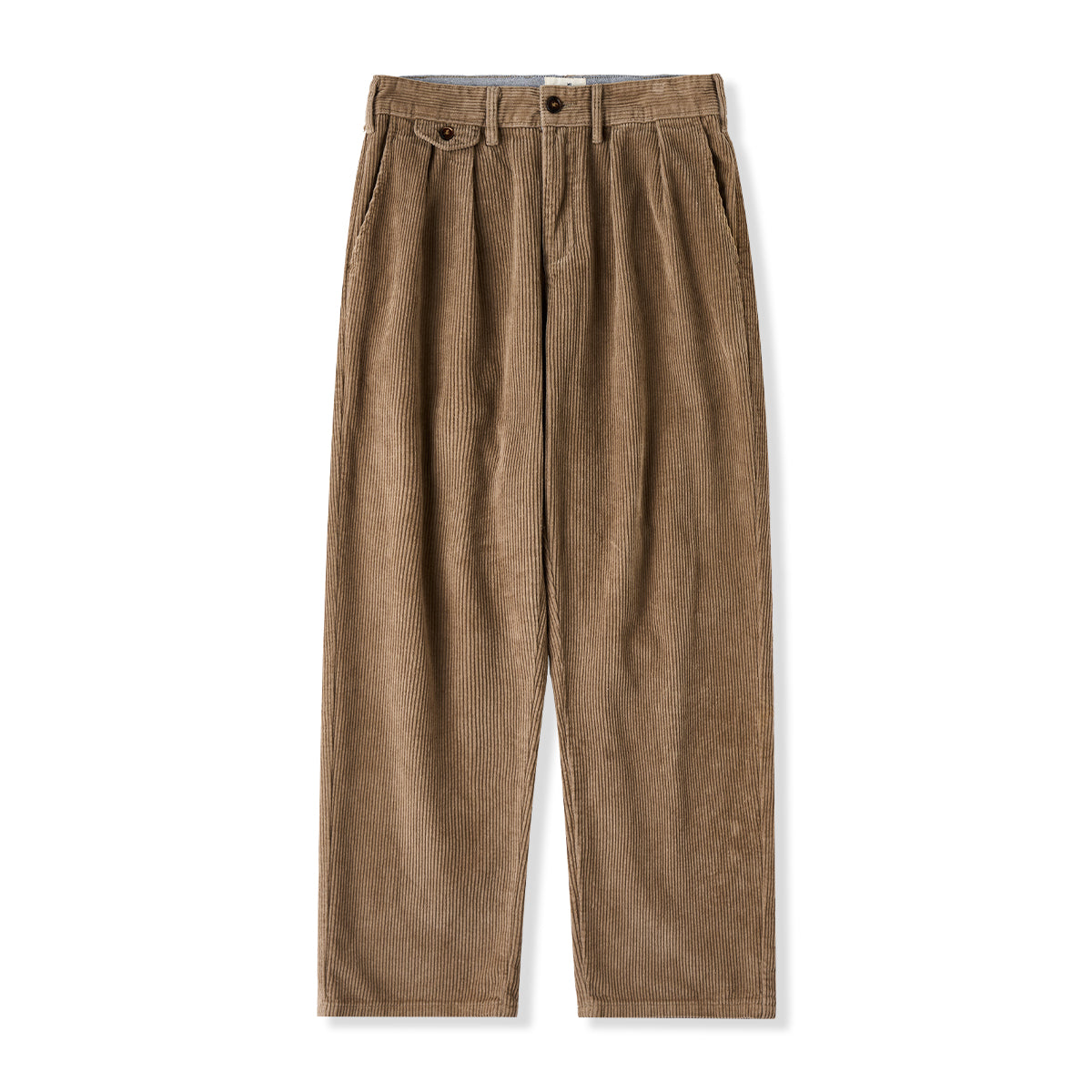 秋冬に最適なコーデュロイ素材で、ヴィンテージライクな表情の太畝コーデュロイ生地を採用し、凸凹が空気を蓄えることができ、保湿性や吸湿性に優れている。生地にはコットン100%を使用し、肌触りが良くシワになりにくく、通気性や耐久性にも優れる。ワイドなシルエットなのでゆったりとした履き心地でリラックス感。これから寒くなる時期にぴったりのコーデュロイパンツはデイリーコーデに活躍する。定番のカーキはもちろん、ナチュラルで上品な印象のダークブラウンなど、秋冬の着こなしを軽やかにまとめてくれる2色をご用意しました。