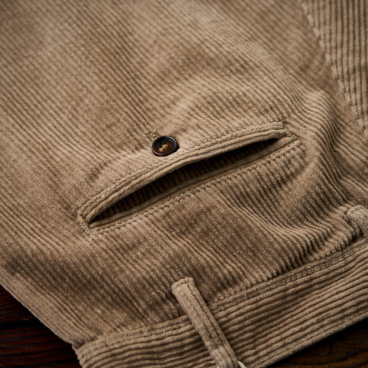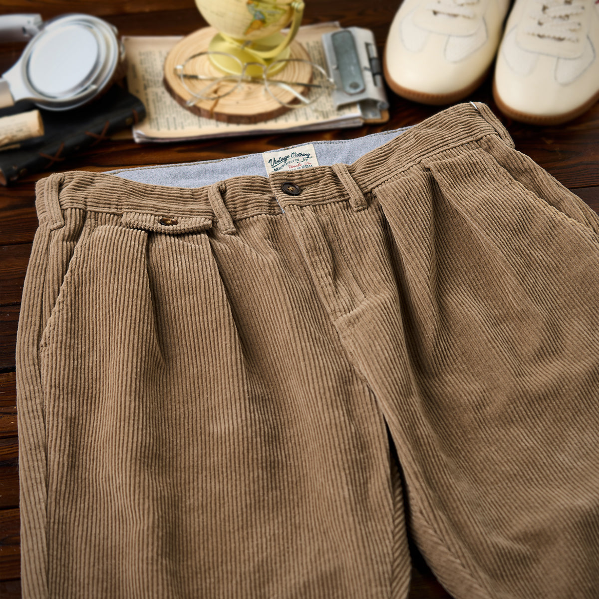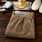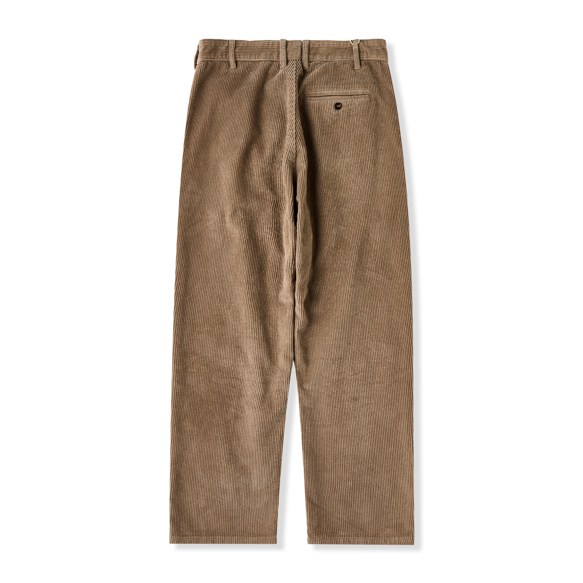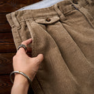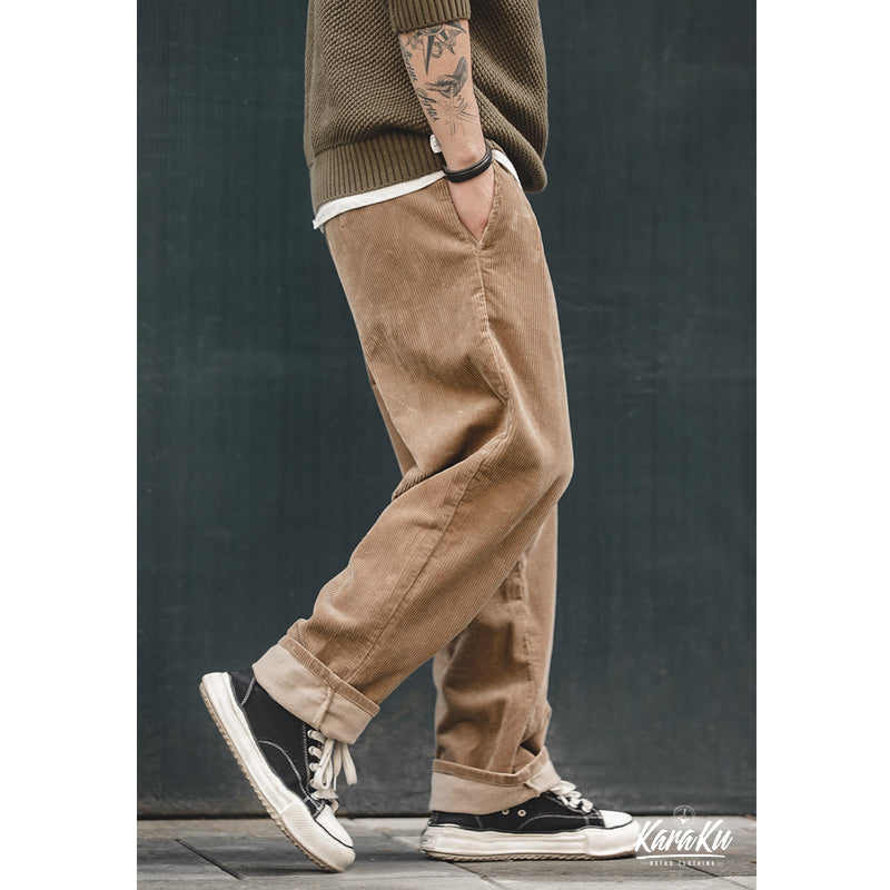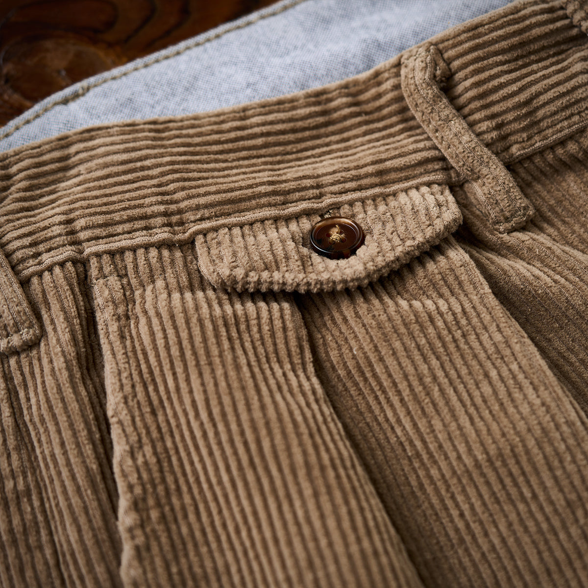 秋冬に最適なコーデュロイ素材で、ヴィンテージライクな表情の太畝コーデュロイ生地を採用し、凸凹が空気を蓄えることができ、保湿性や吸湿性に優れている。生地にはコットン100%を使用し、肌触りが良くシワになりにくく、通気性や耐久性にも優れる。ワイドなシルエットなのでゆったりとした履き心地でリラックス感。これから寒くなる時期にぴったりのコーデュロイパンツはデイリーコーデに活躍する。定番のカーキはもちろん、ナチュラルで上品な印象のダークブラウンなど、秋冬の着こなしを軽やかにまとめてくれる2色をご用意しました。