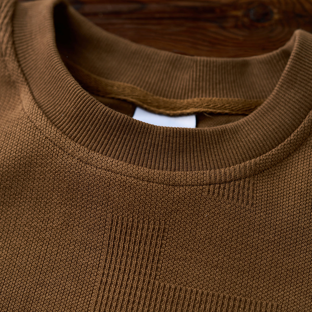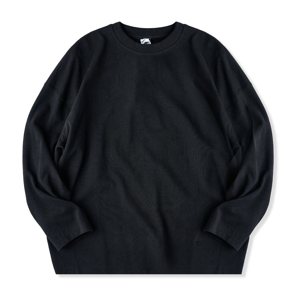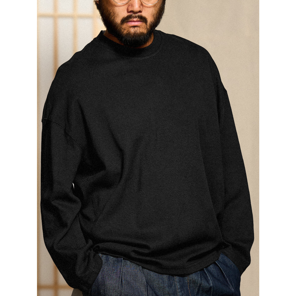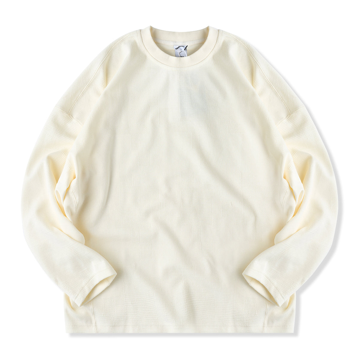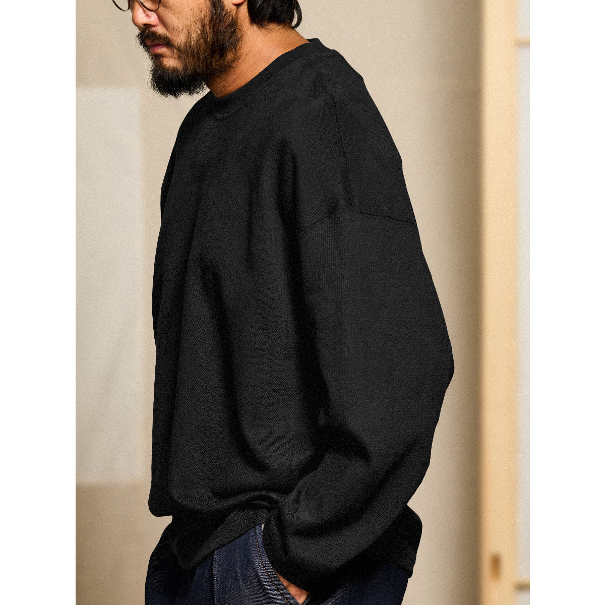 クルーネックデザインで、シンプルながらもカジュアルな印象を強調しています。ゆったりとしたシルエットで、リラックス感とトレンド感を兼ね備えています。