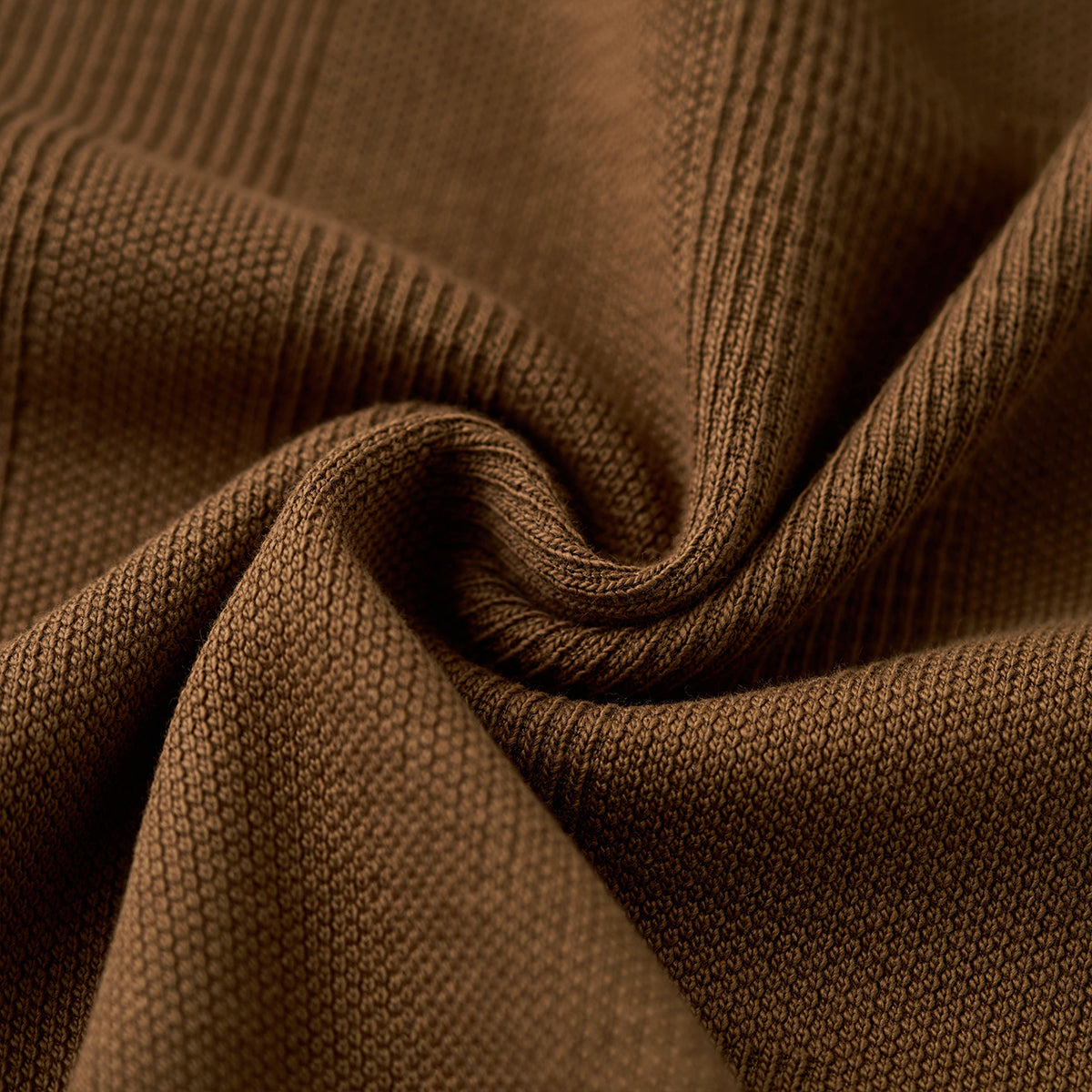 組成がポリエステル、コットンとスパンデックスといった3者混。3つの特徴を融合してつくられているのが、それぞれのデメリットを補ってお互いの長所を引き立てる。