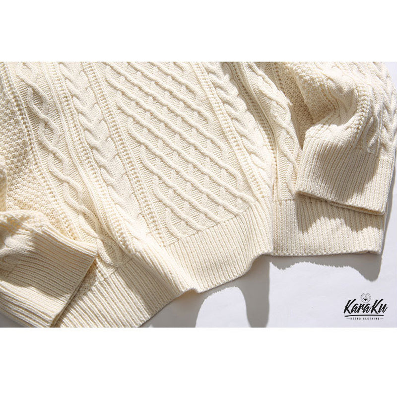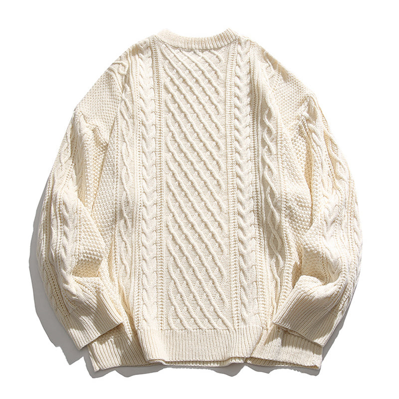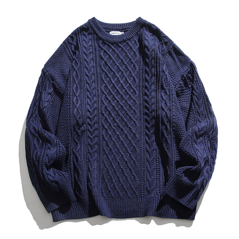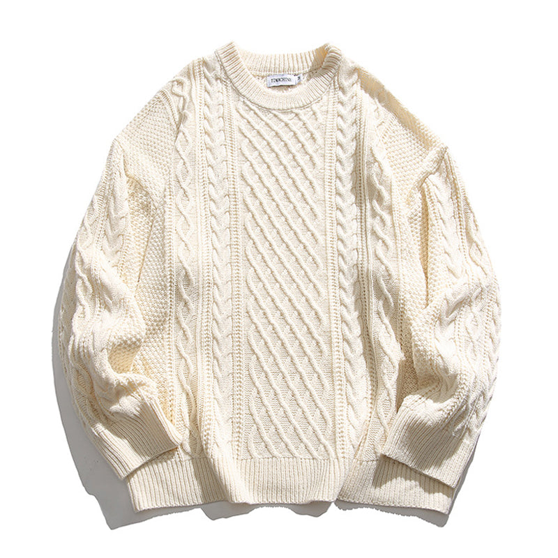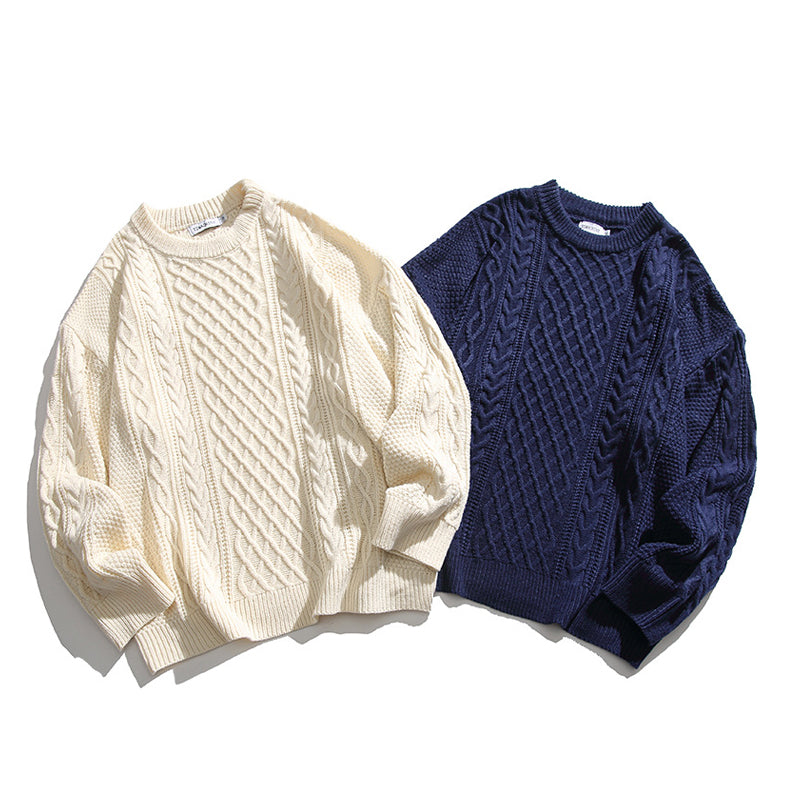 前身頃・後身頃と全体にあしらわれたツイストパターンが特長となっています。立体的な編地で羽織るだけでニュアンスたっぷりのスタイリングにしてくれるニットセーターで、袖や裾のリブ編みもさりげないポイントになっています。柔らかな肌触りと、保温性の高さが魅力のアクリル100%の素材を使用し、着心地と保温性が優れた。色がスタイリングに迷わないオフホワイトと上品で知的な印象を与えてくれるネイビーの2色展開。ゆったりとしたシルエットはリラックスに着こなせる。ワイドパンツやタイトなトラックパンツを合わせたシルエットで魅せるコーデはもちろん、スウェットパンツと合わせればこなれ感のあるリラックススタイルでも着こなせます。スキニーやデニムパンツなどと合わせるだけでイマドキ感のある着こなしが完成します。