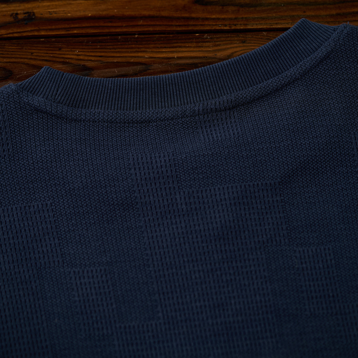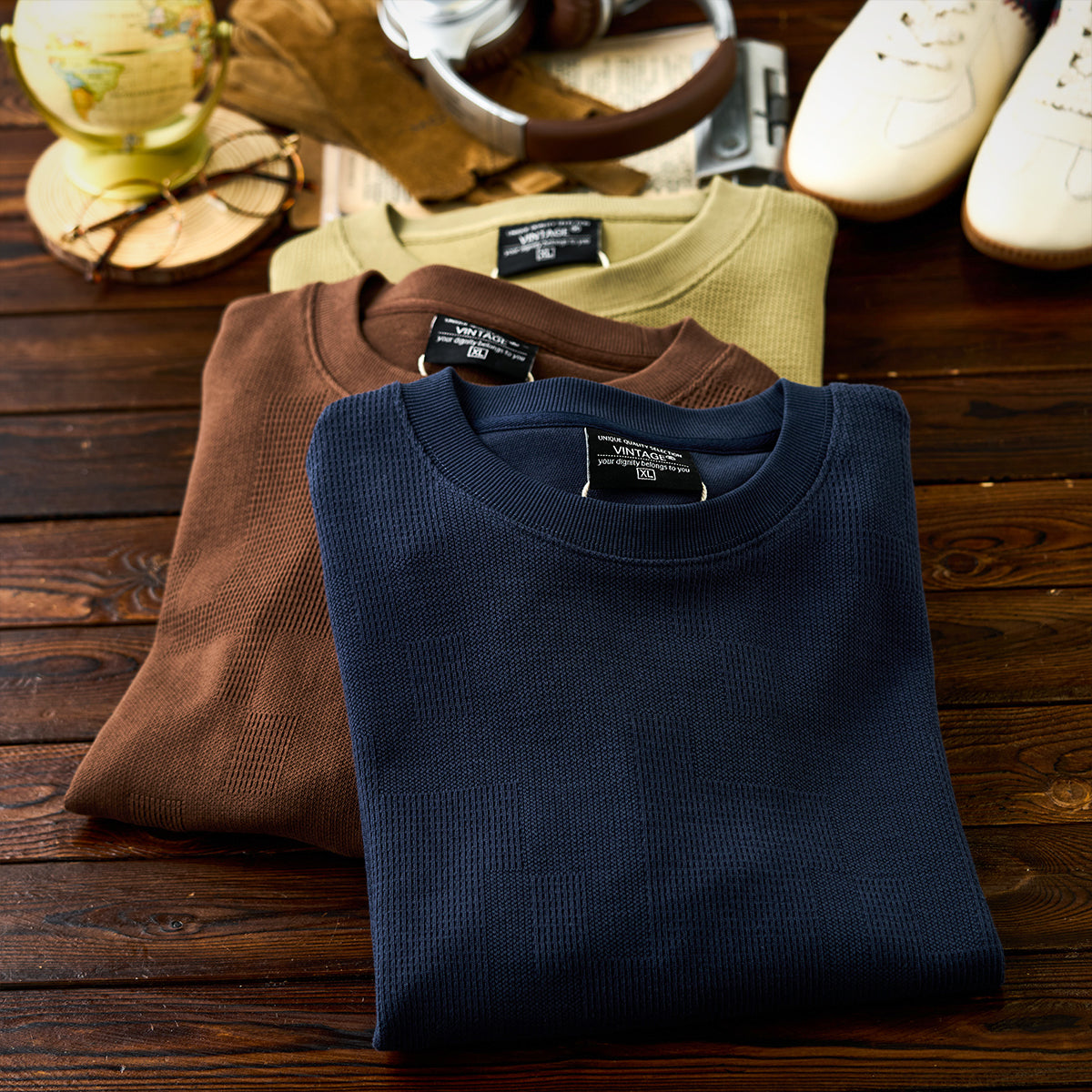 2色ワッフル編みテクスチャクルーネックニットセーター