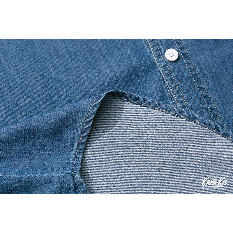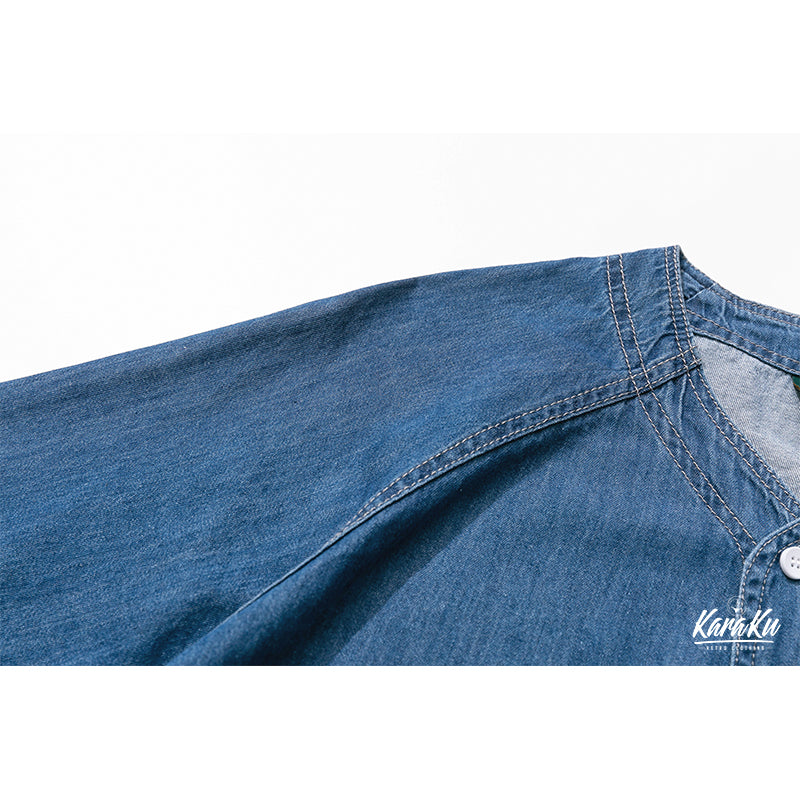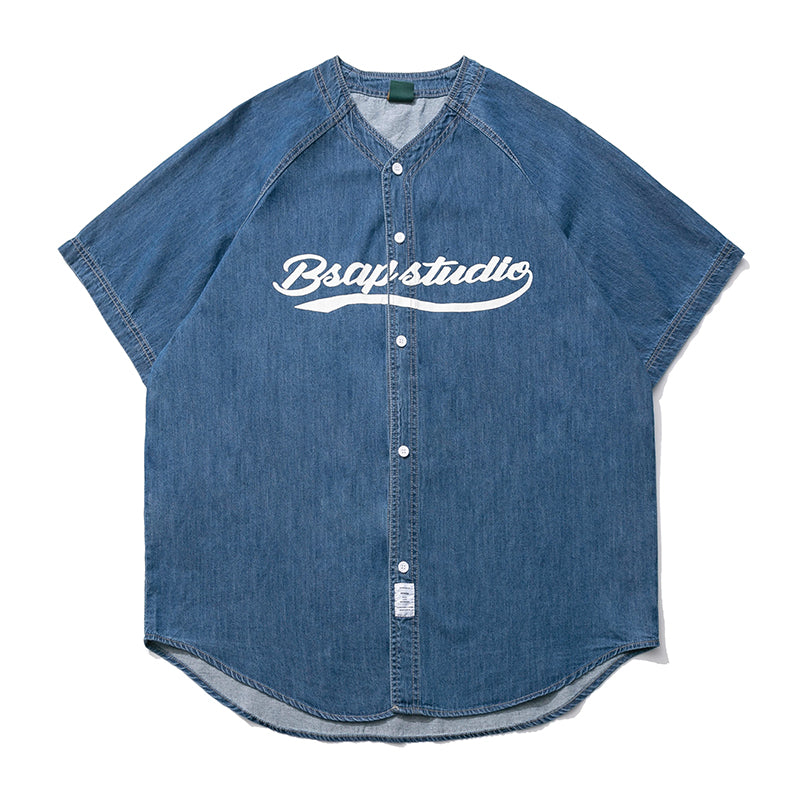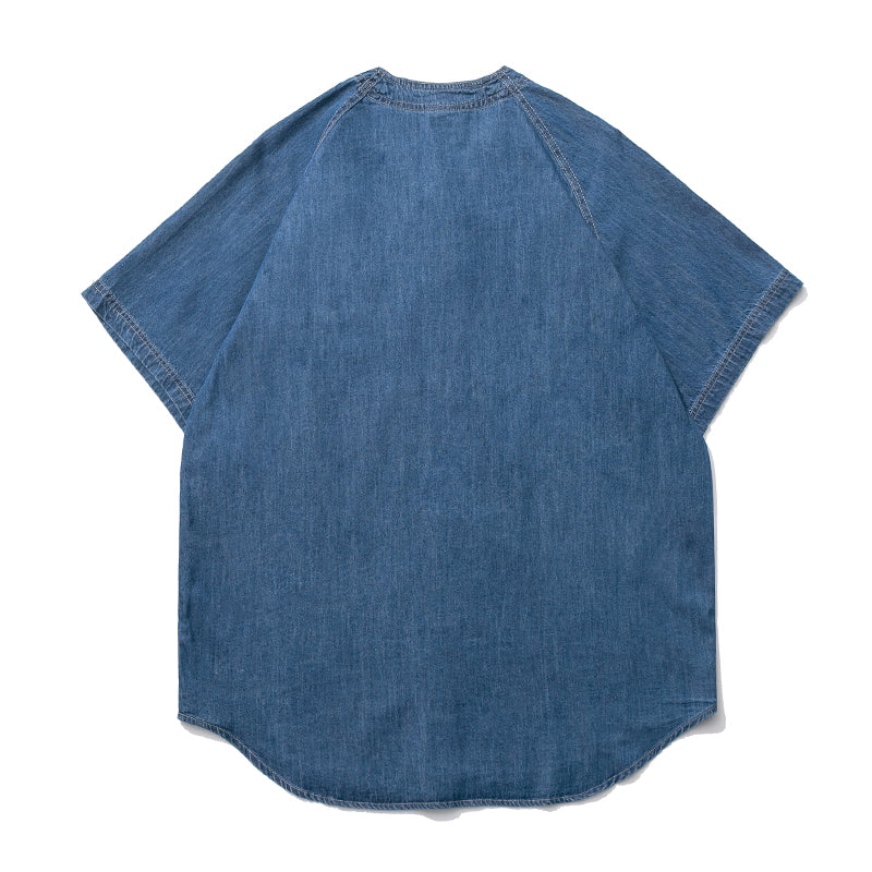 レトロプリント デニムラグランベースボールシャツ