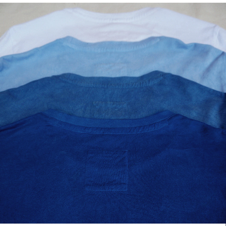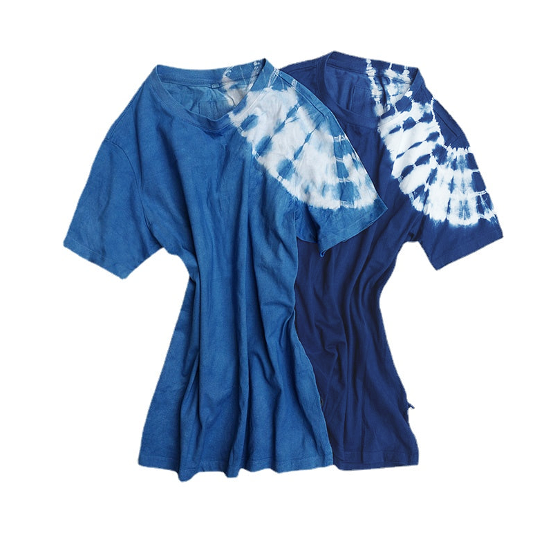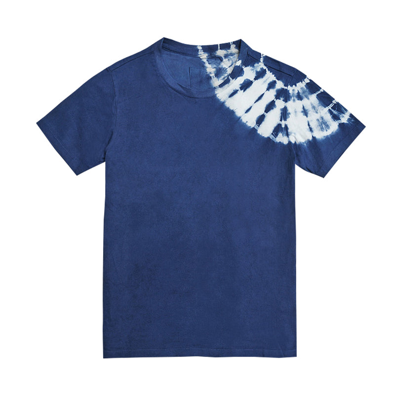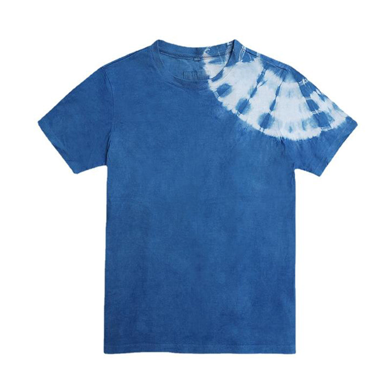 本インディゴのTシャツ。本インディゴでしか味わえない色味・変化をお楽しみ下さい。片袖だけ絞り染め模様で差をつける。しなやかさと耐久性を両立させたコットン生地。吸汗性と速乾性に優れ、夏の時期はもちろん、季節を問わず快適に着用が可能なのが嬉しいポイント。8サイズを展開し、女性の方にも是非おすすめします。