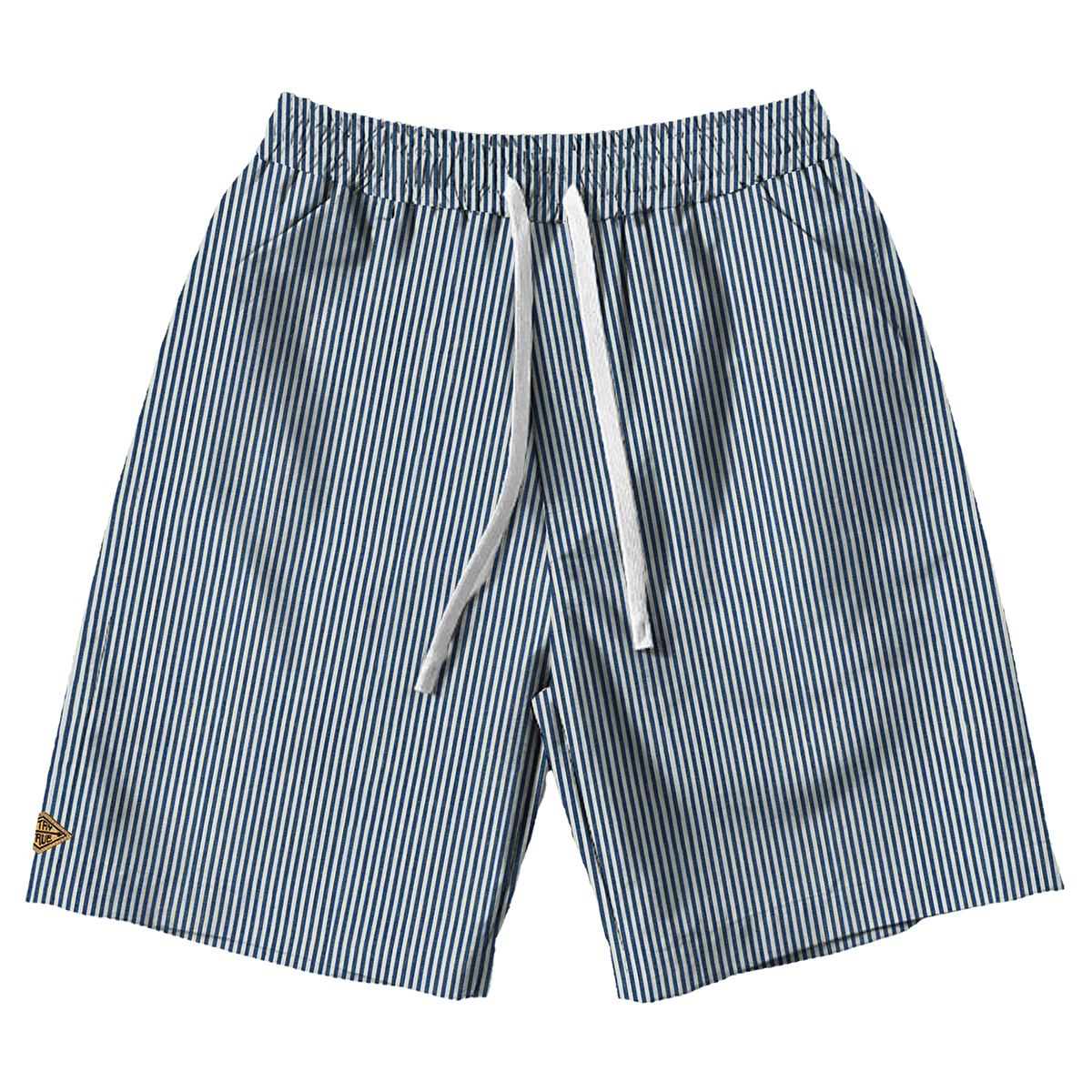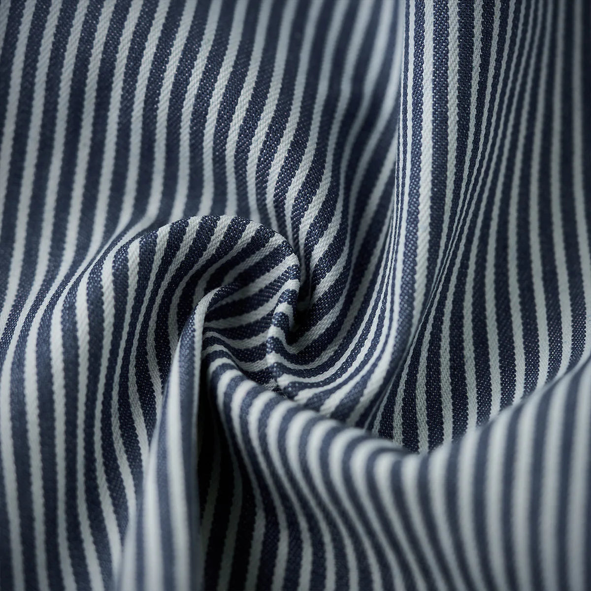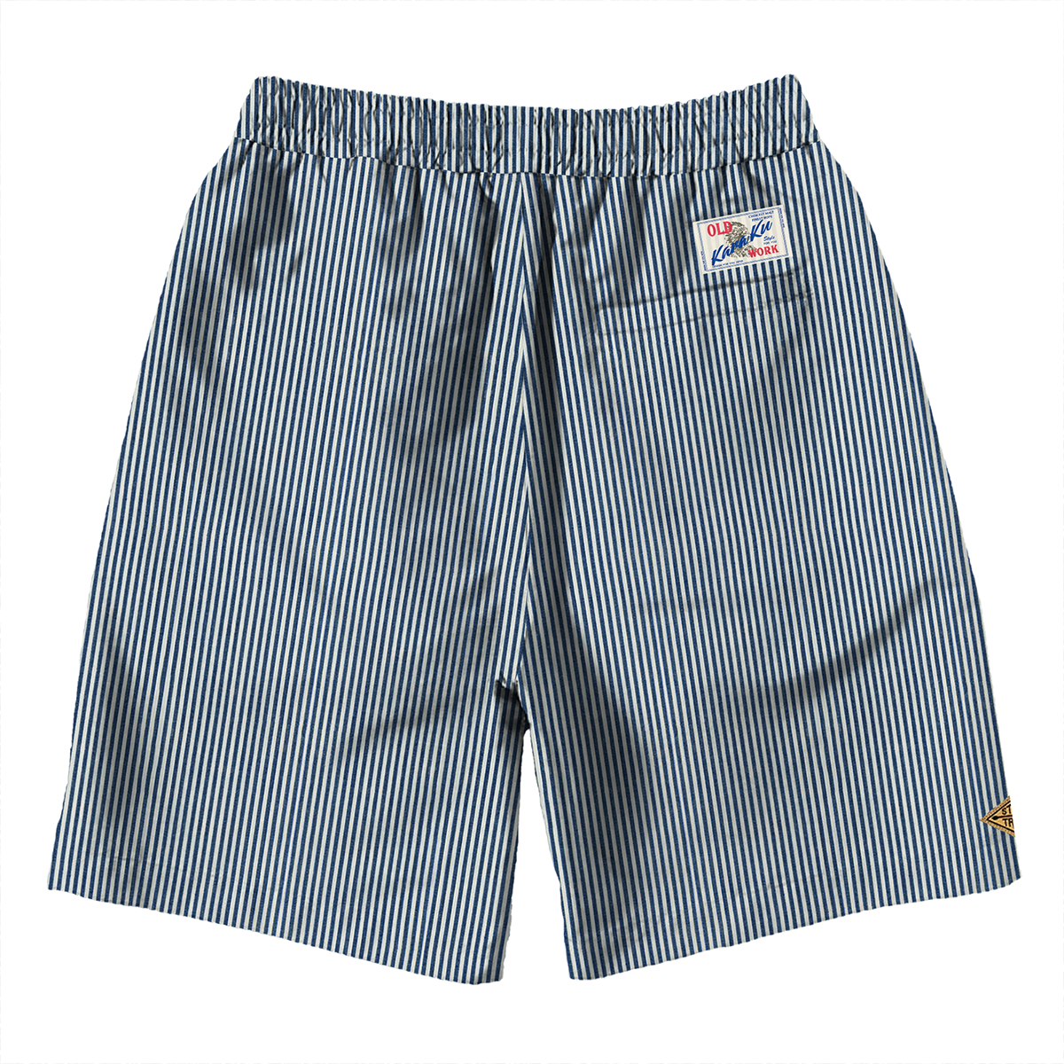 「stay true」刺繍 先染めストライプ柄ショートイージーパンツ