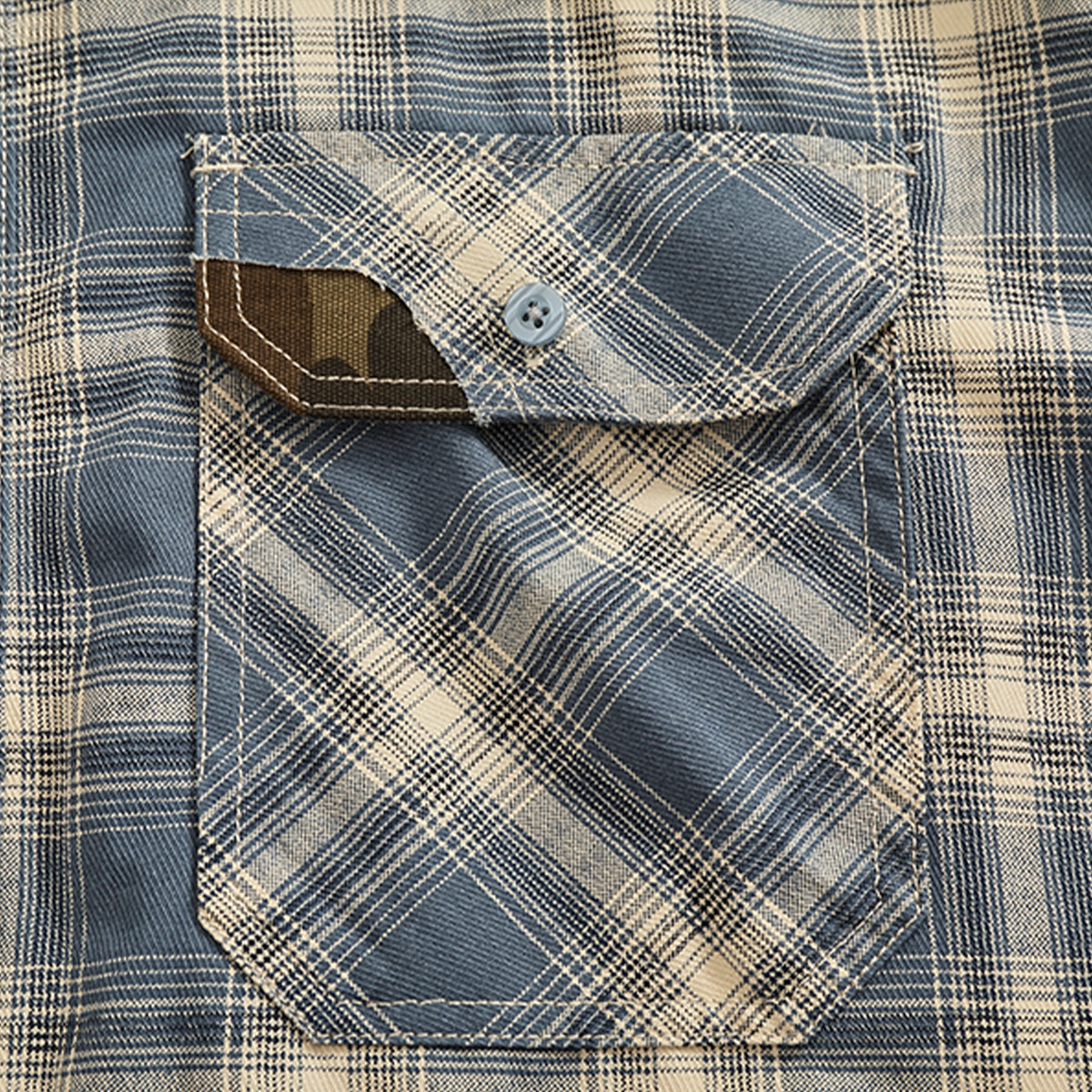 【予約】襟コーデュロイ 裏エスニック柄プリントデニムワークシャツ