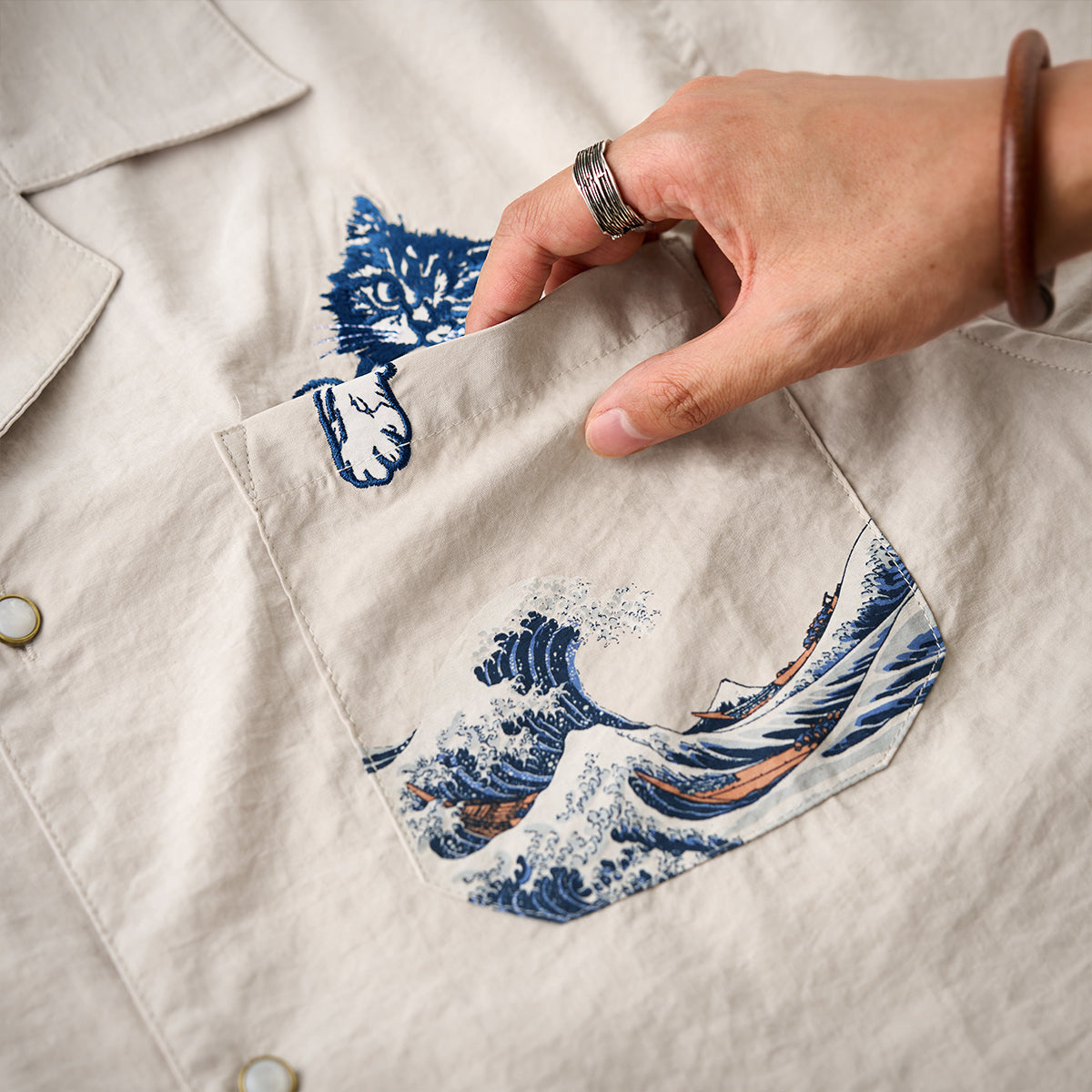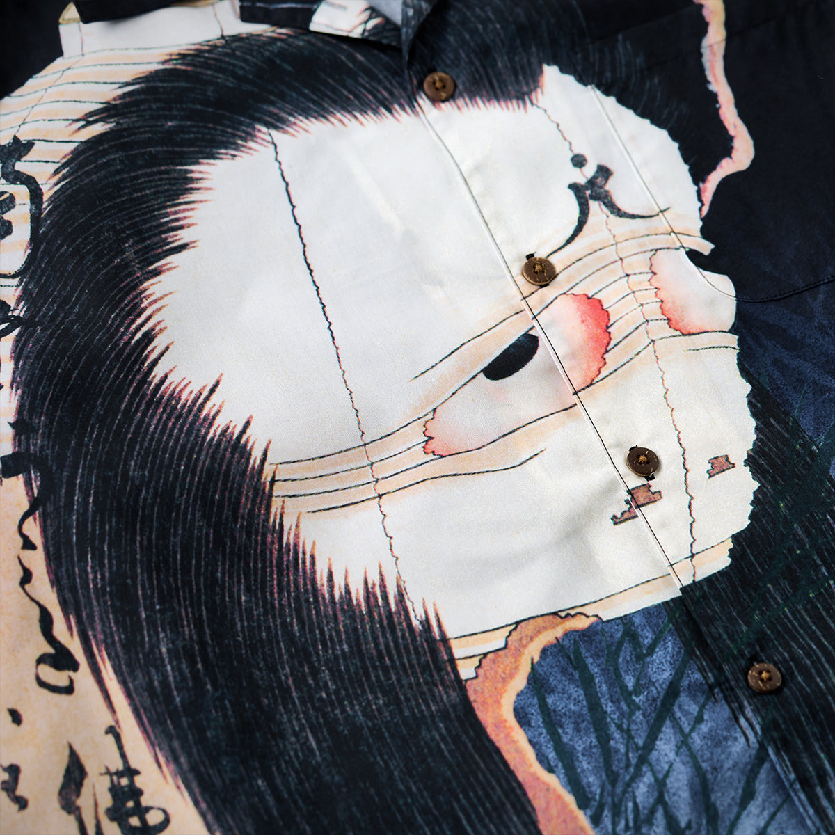 得意とする技法、デザイン、オリジナル生地を用いて、想像力に溢れた江戸の姿を服に中に閉じ込めて、「和」のアイデンティティを残しつつも現代ファッションに昇華させた。