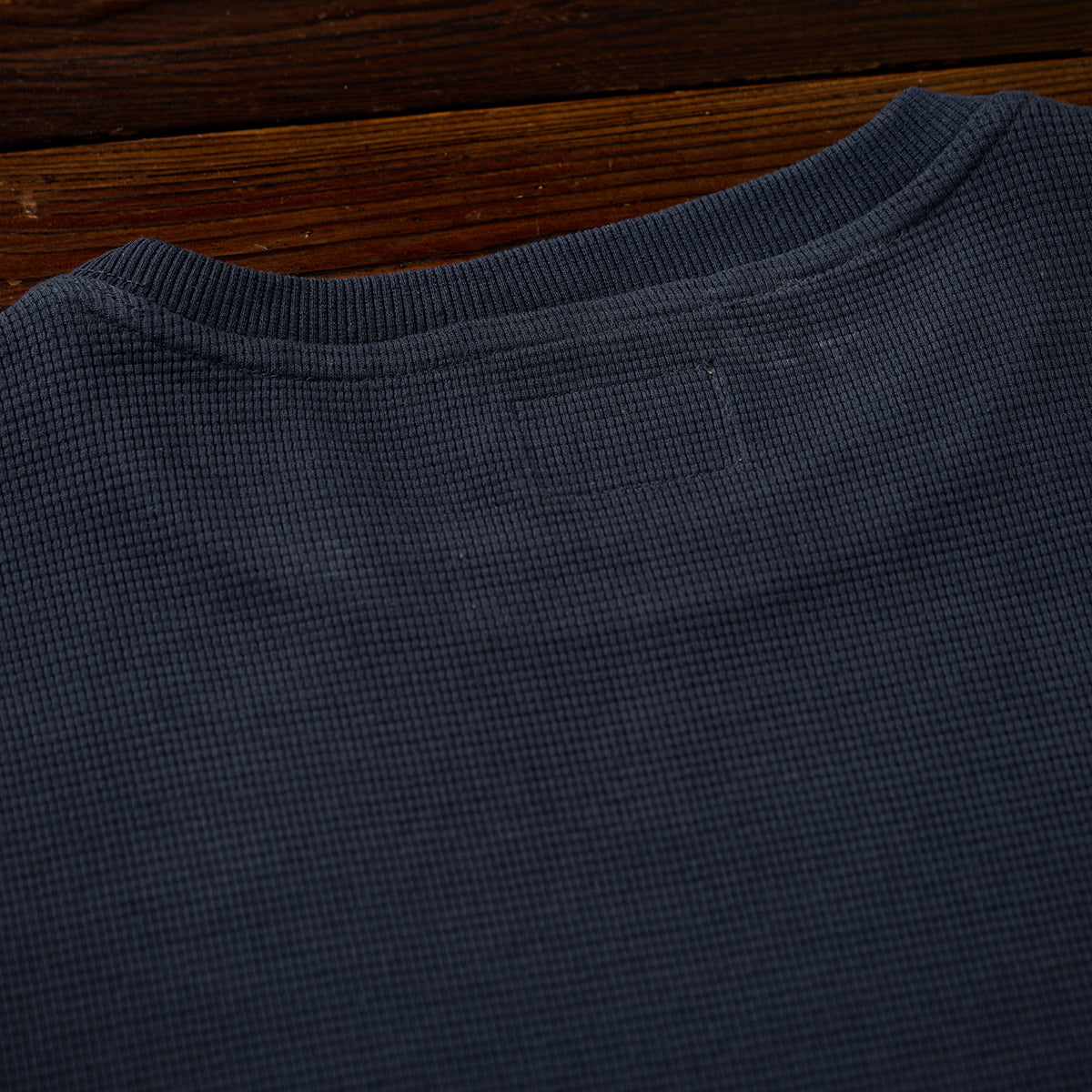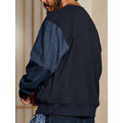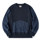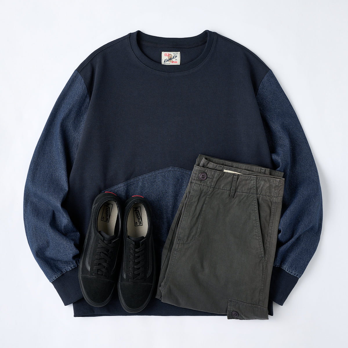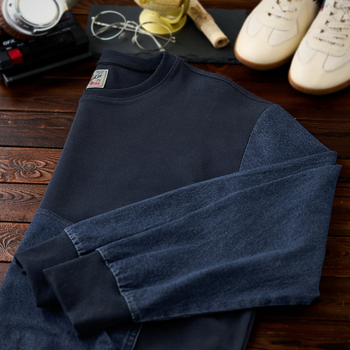 袖・ポケットウォッシュドデニム切替 ワッフルプルオーバースウェット