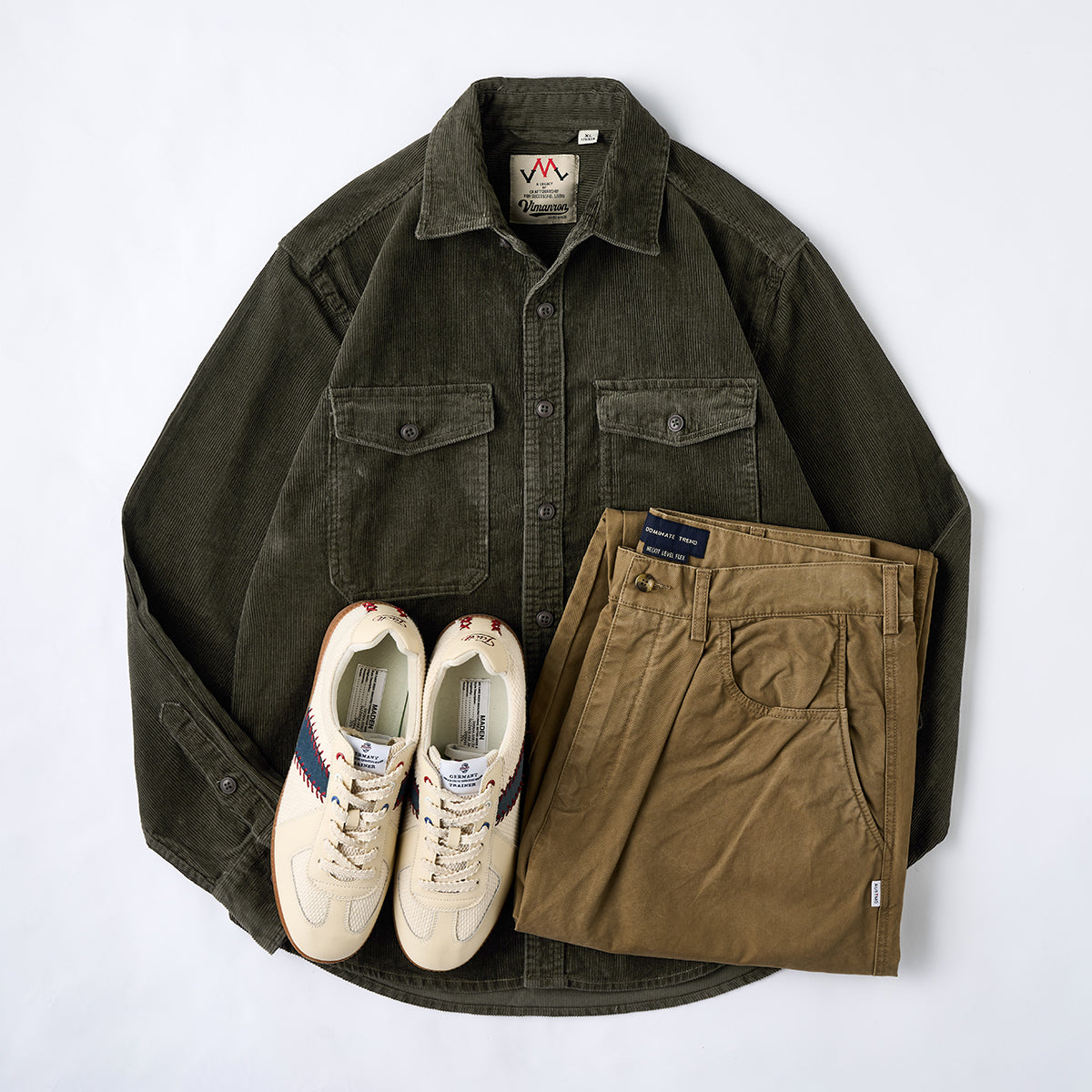 コーデュロイシャツは、程よい厚みと柔らかさで秋冬にぴったりのアイテムです。