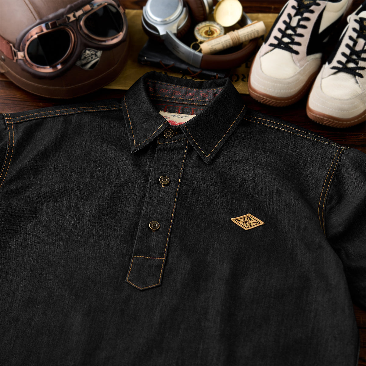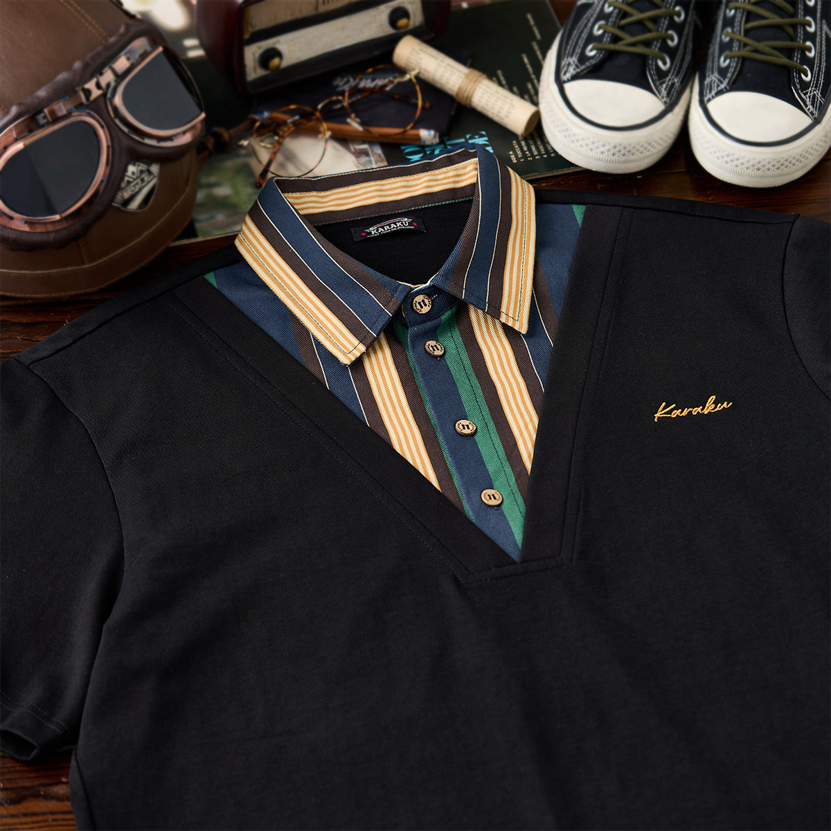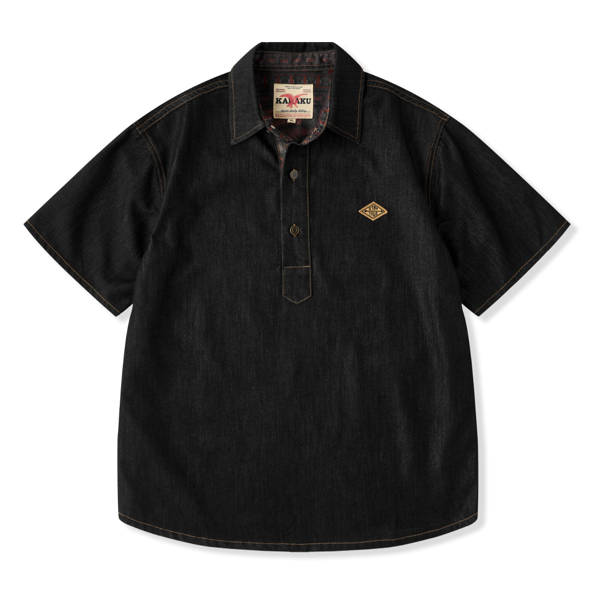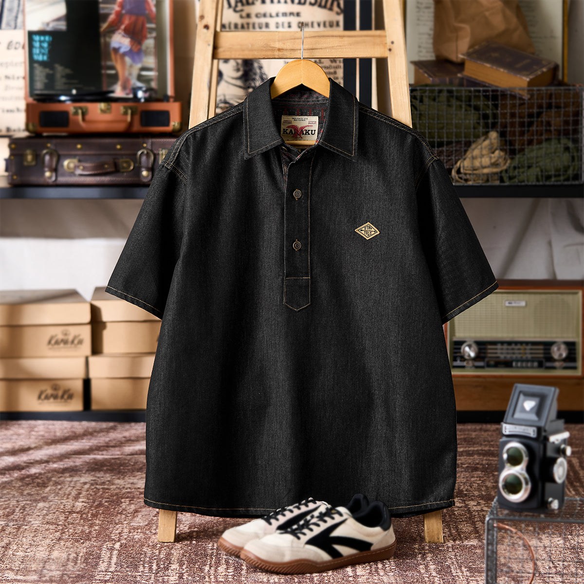 東洋の伝統美と現代のファッション感覚を融合させたデザインを目指しました。ブラックを基調とし、シャツ全体に施された水墨画風の琵琶と牡丹の図案が、静かな中に力強さを秘めた雰囲気を醸し出しています。