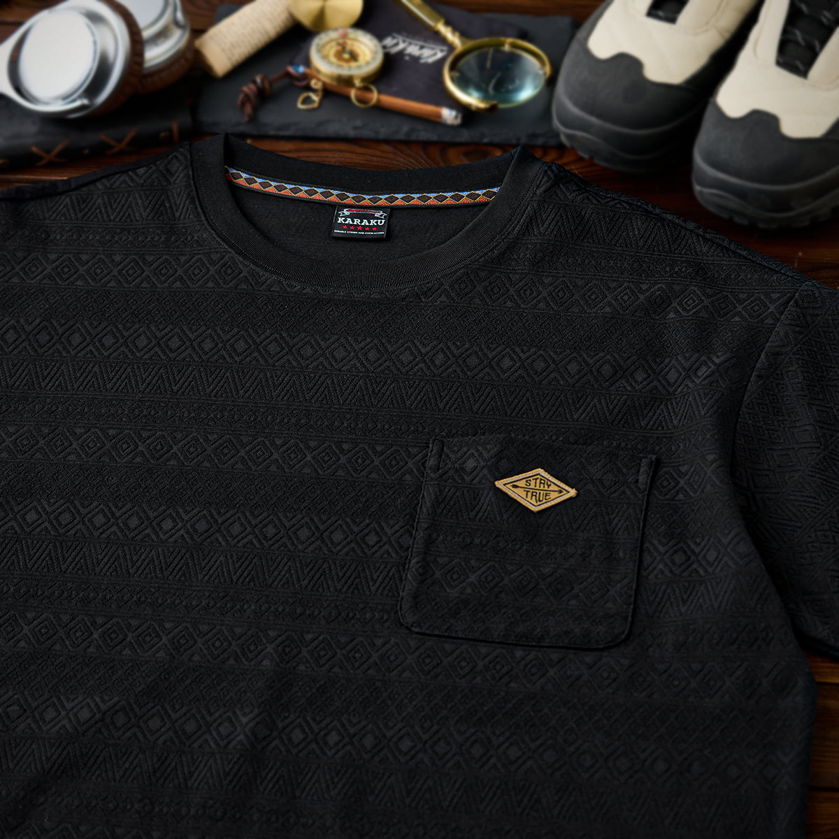 同じ黒でも、コットンの柔らかさ、ウールの温かみ、レザーの光沢など、素材によって表情は大きく変化します。