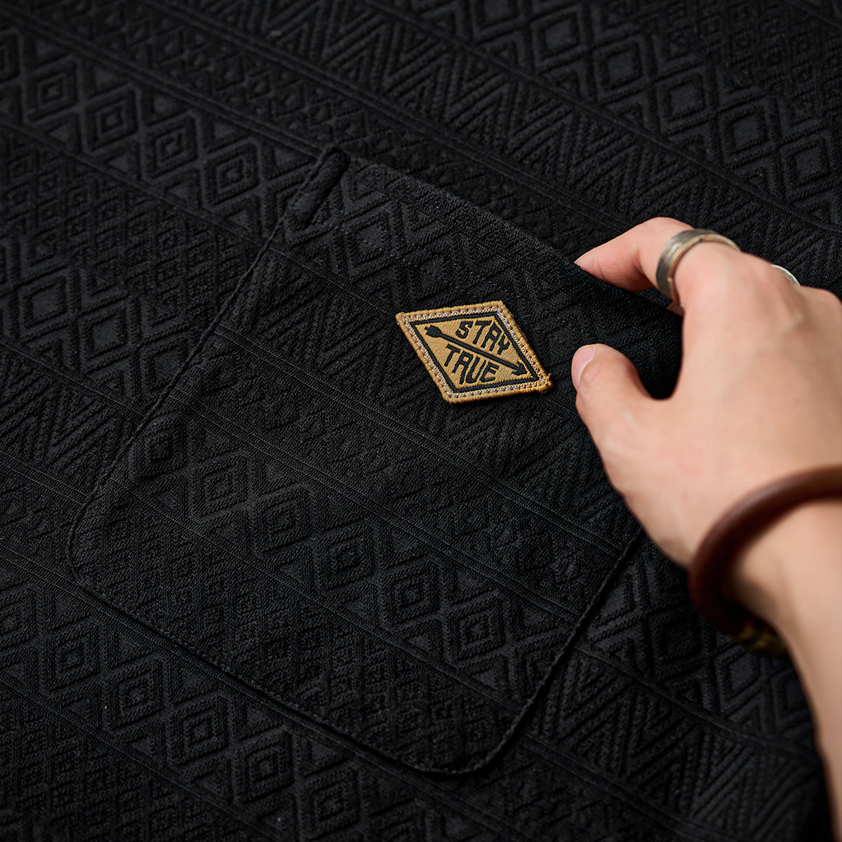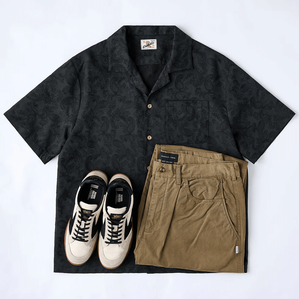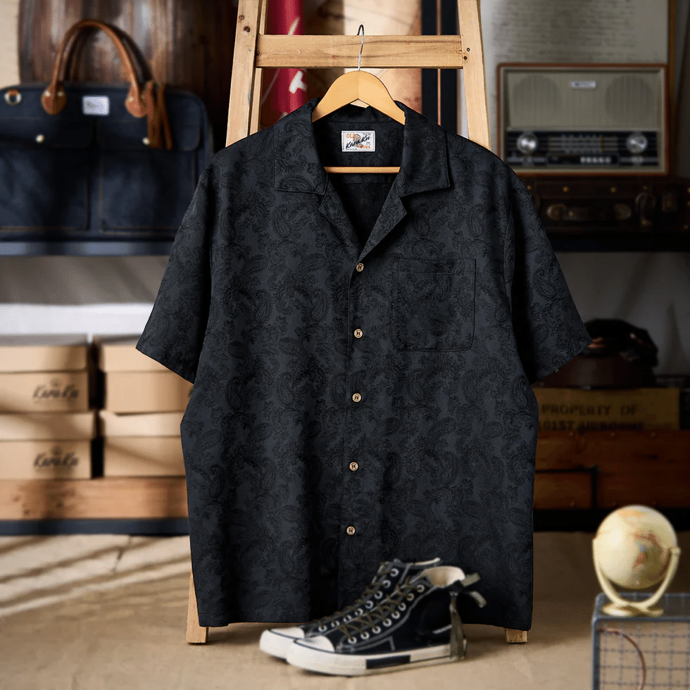 ペイズリー柄をベースに、繊細なジャカード織りで表現した奥行きのある総柄が魅力のオープンカラーシャツ。