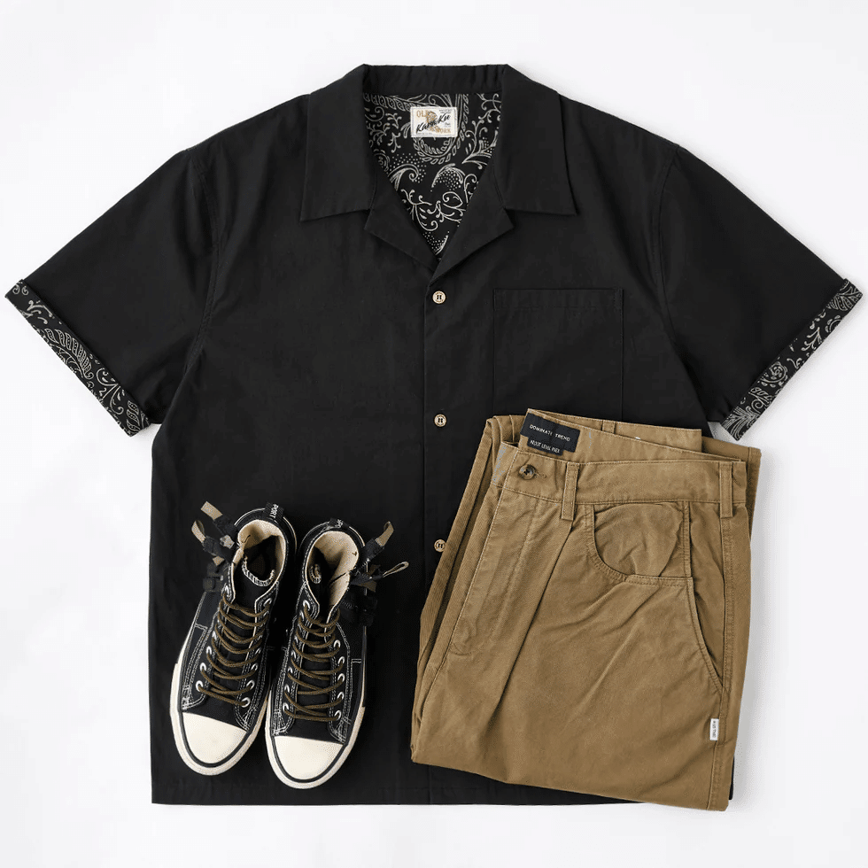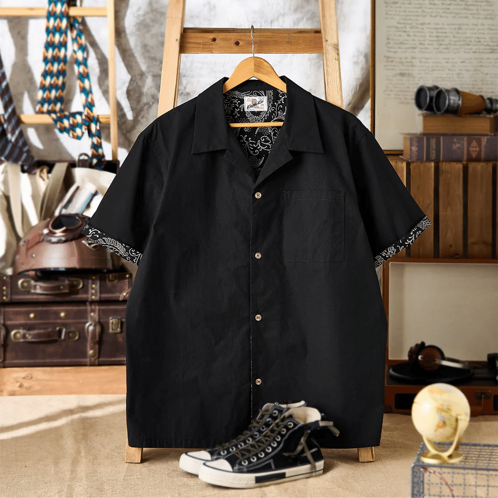 ITEM02 【予約】裏地ペイズリー総柄プリント入りキューバカラーシャツ