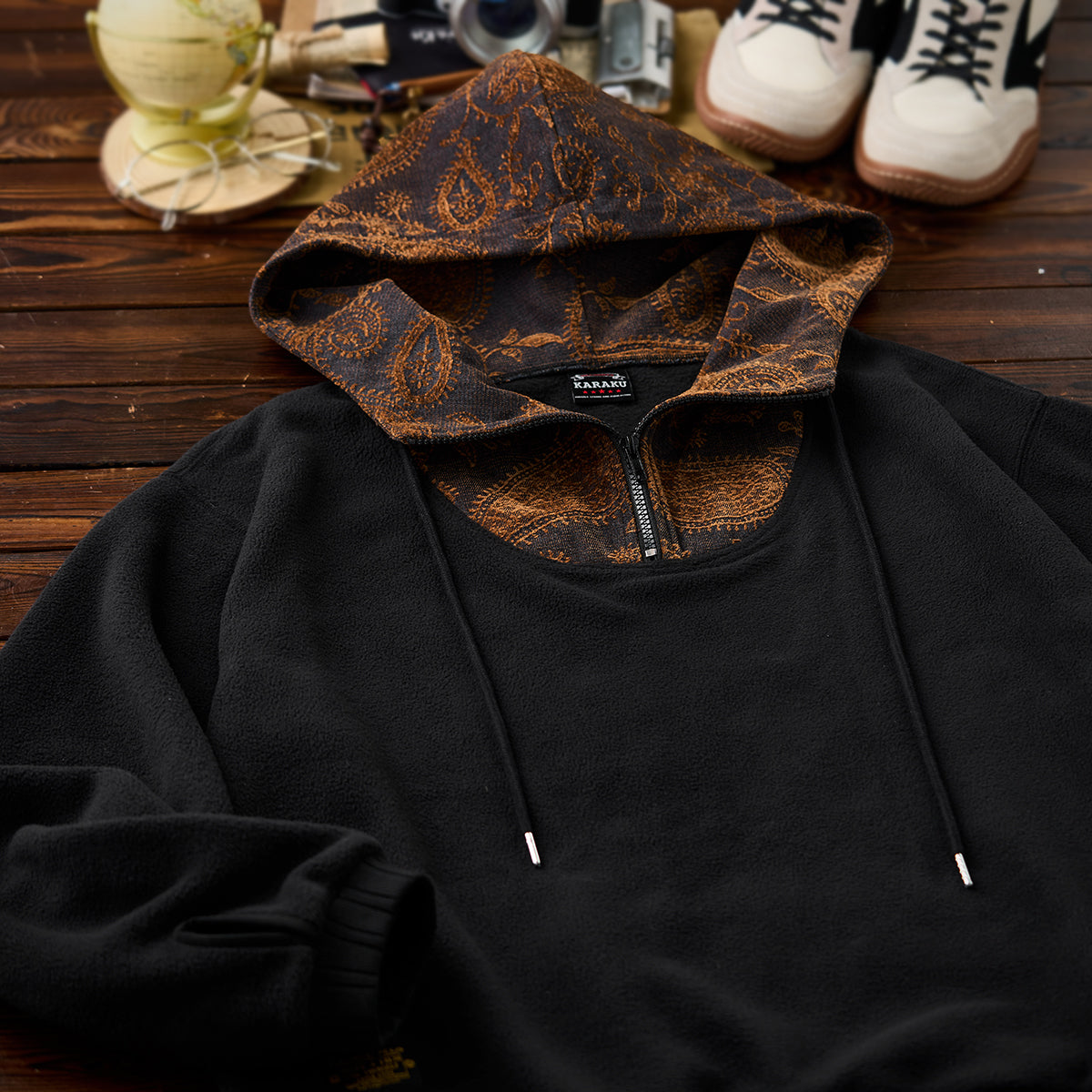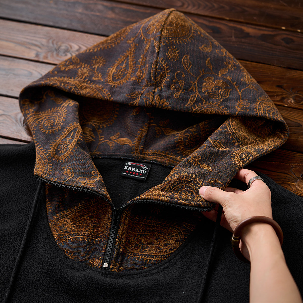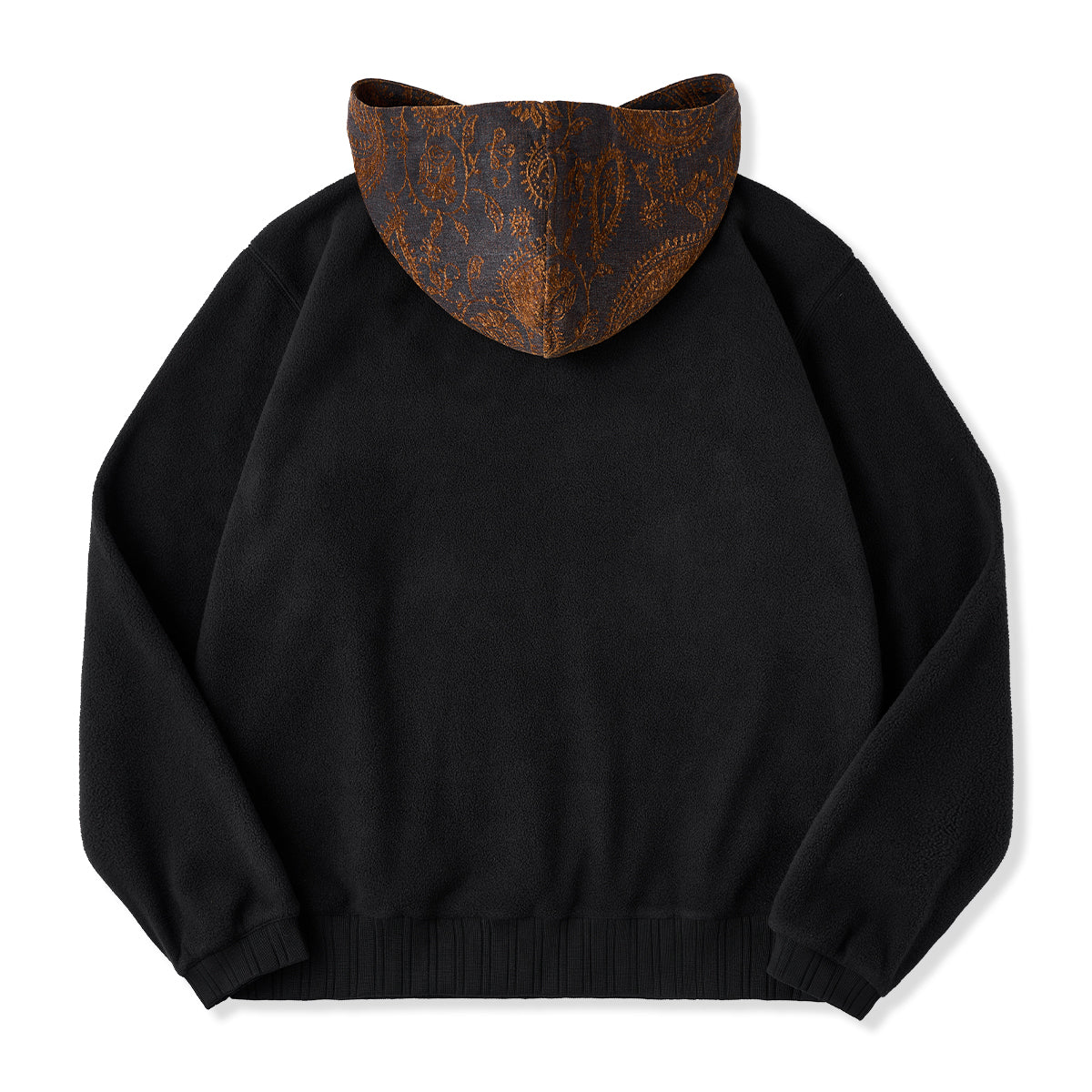【予約】ペイズリー柄シェニル切替 ハーフジップフリースパーカー