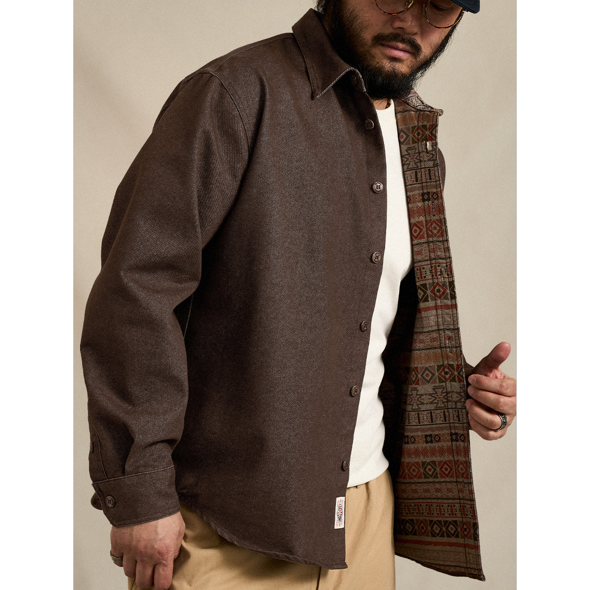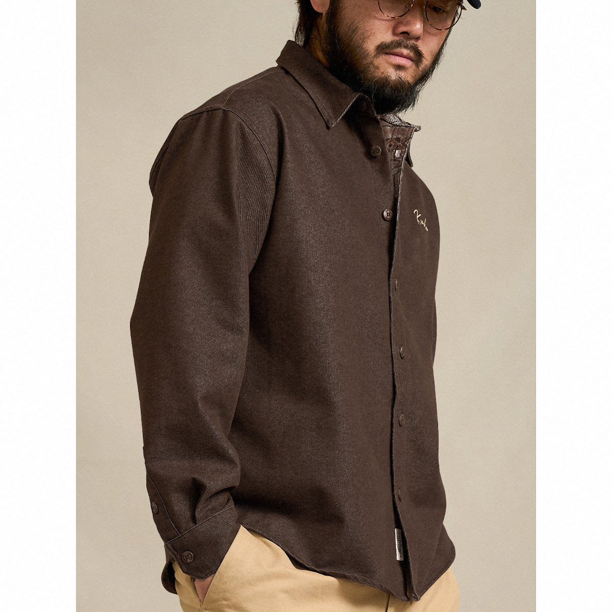 一枚で着こなしが完成する、フェイクレイヤード仕様のニットTシャツ。表情豊かなパイナップルパイル編みを採用し、立体感のある編地とヘビーウェイトならではの安心感ある着心地を両立しました。胸ポケットに「STAY TRUE」と刺繍ワッペンが付いて、シンプルながらもユニークなポイントになって、ワッペンの黄色が全体のダークなカラーに対してアクセントとなり、目を引く。襟にはフェイクレイヤードデザインを施し、重ね着せずとも奥行きのあるスタイリングを演出。一枚で主役になり、シンプルなボトムスと合わせるだけで雰囲気のあるコーディネートが完成します。シルエットは程よくゆとりを持たせ、体のラインを拾いにくい設計。カジュアルからアメカジ、ワークテイストまで幅広く馴染む、存在感と実用性を兼ね備えた一着です。