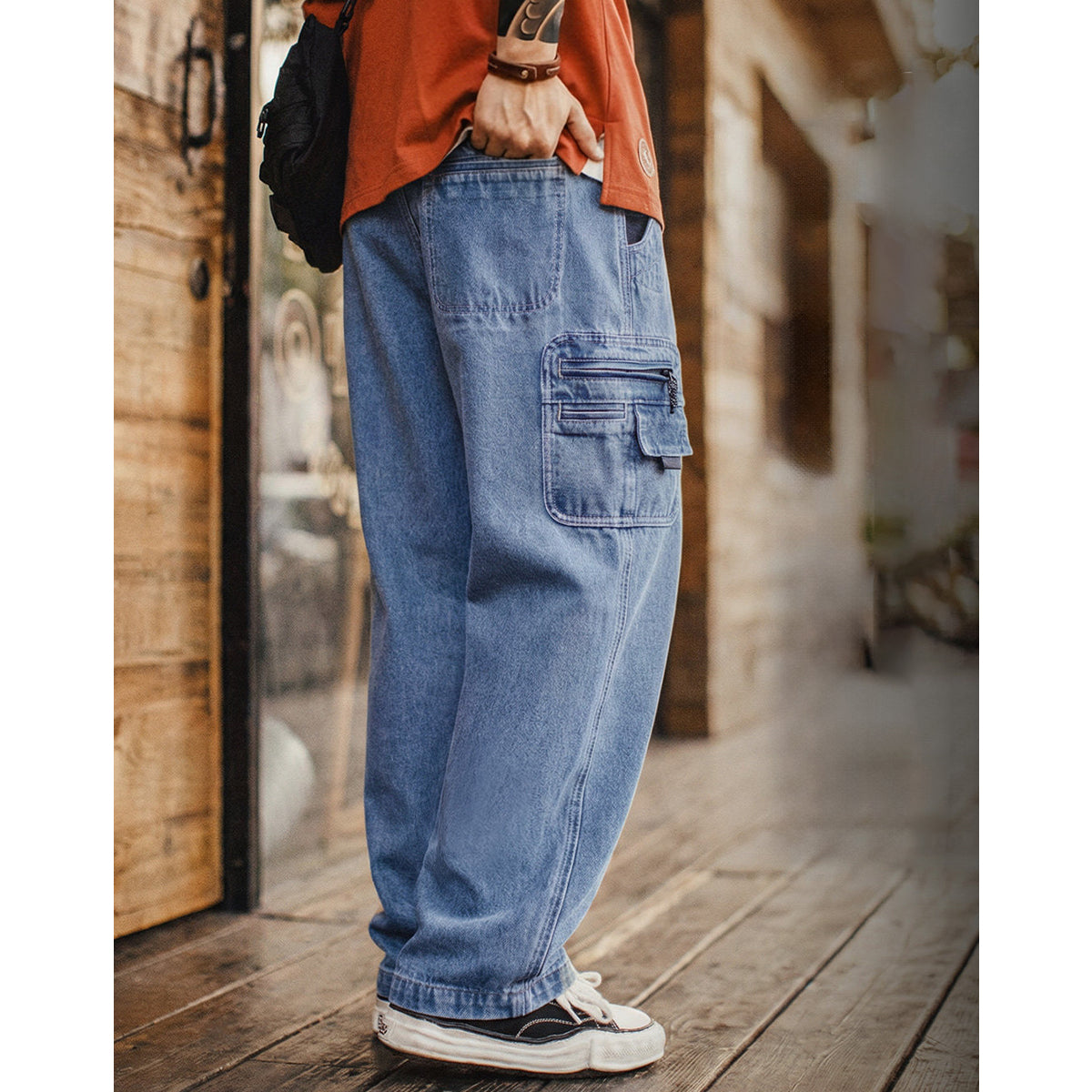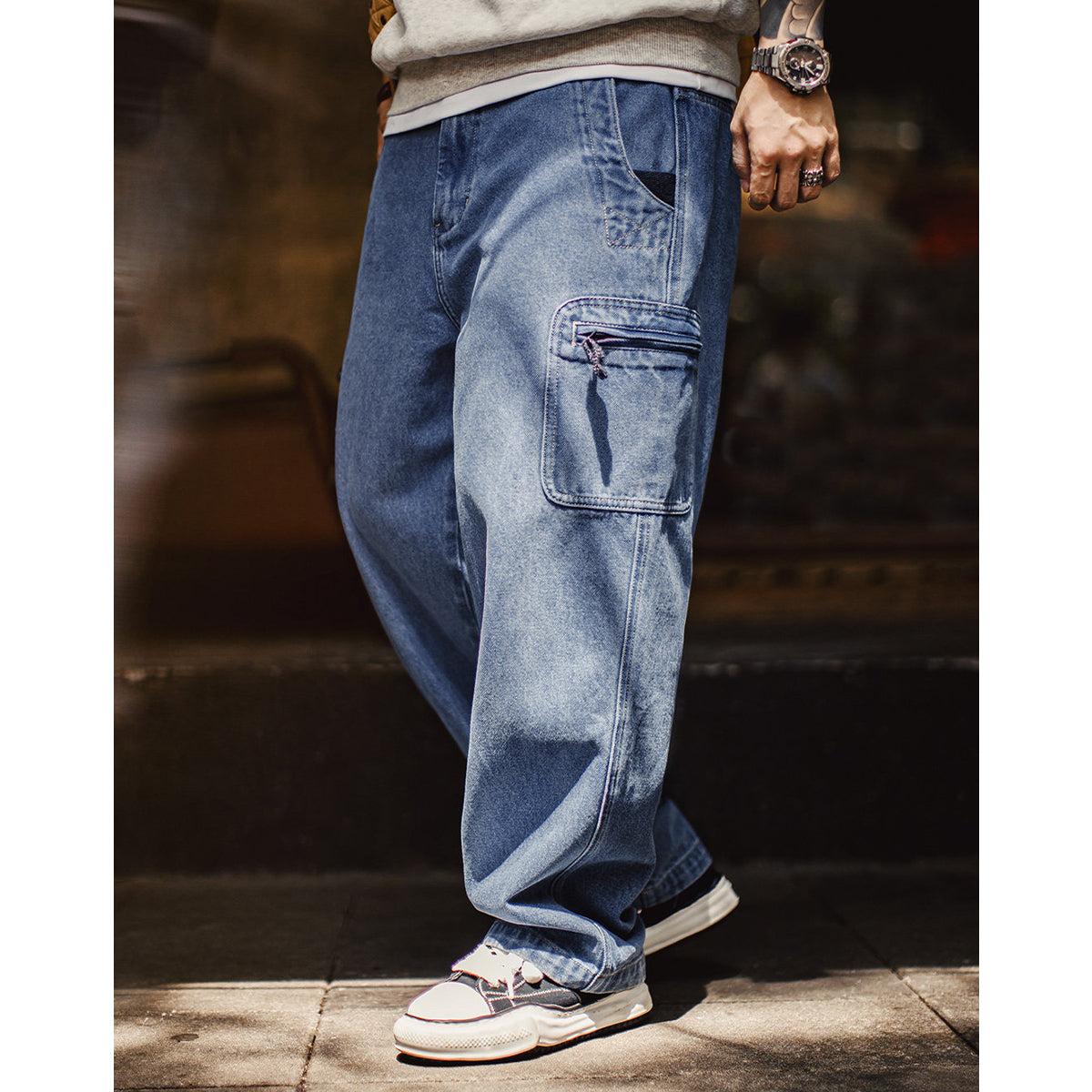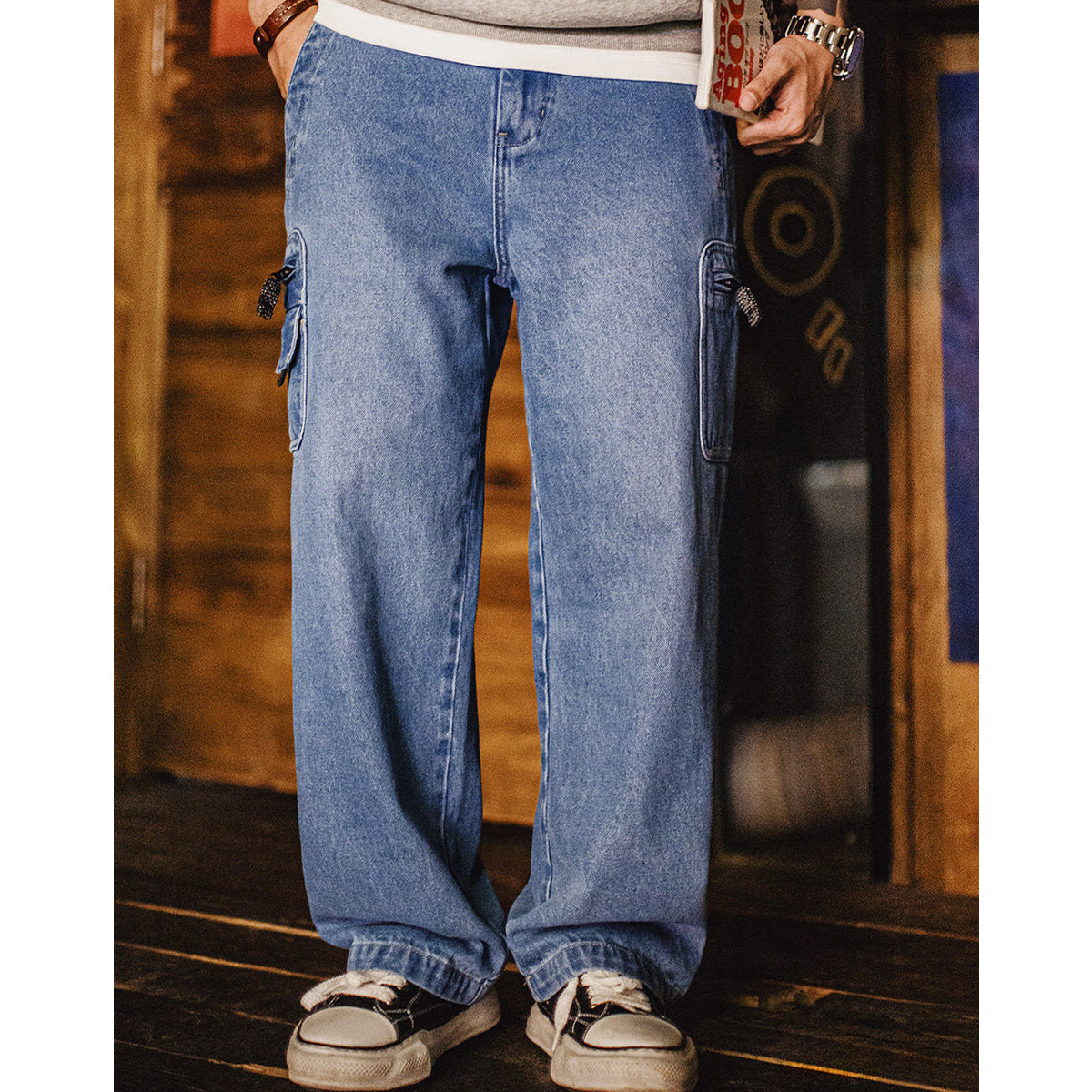 カーゴポケット付き 10.5ozツイルウォッシュデニムパンツ