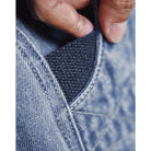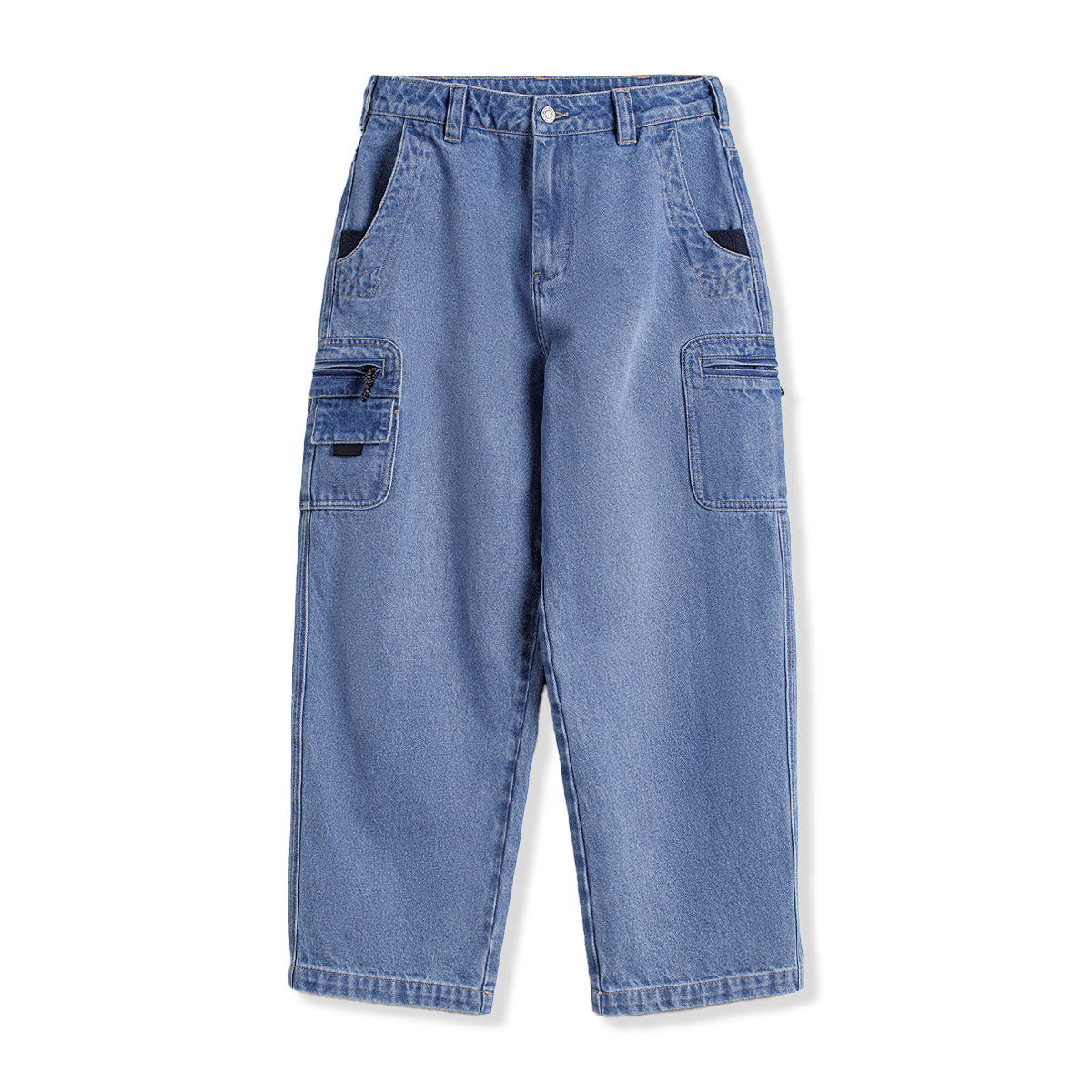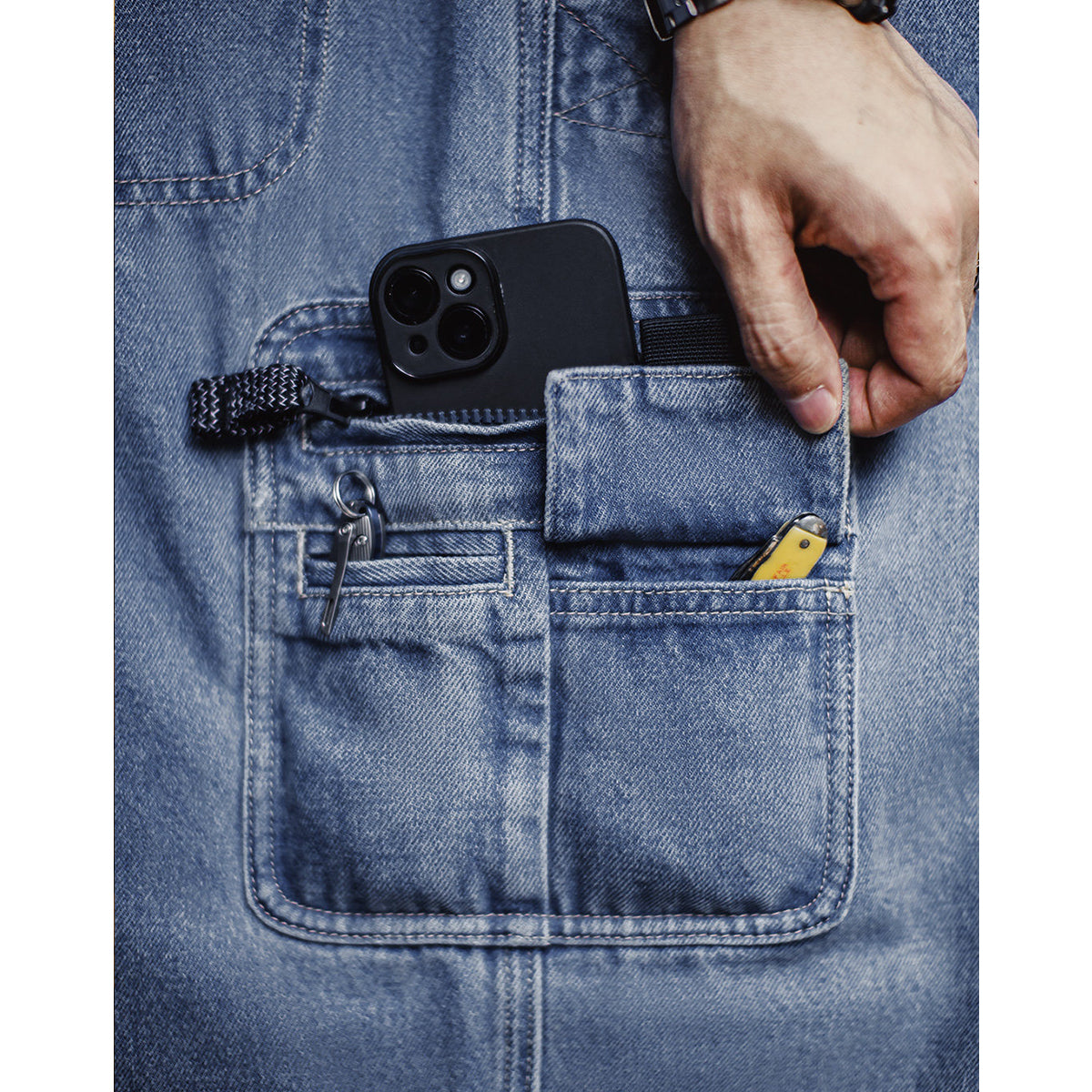 10ozツイルデニムを使用し、軽量で柔軟性があり、耐久性と快適性が特徴です。厚すぎず、カジュアルからストリートスタイルまで幅広く対応可能な生地です。