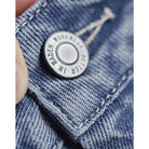 ライトブルーデニムがベースで、ウォッシュ加工が施されています。自然な色落ちがあり、ヴィンテージ感を強調しています。カジュアルかつ洗練された雰囲気を演出しています。