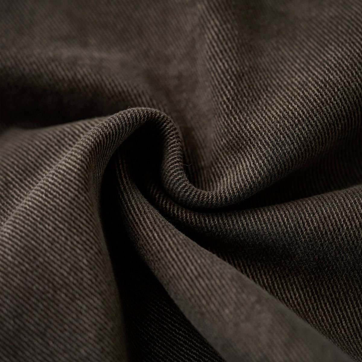 デニム特有のツイル織がはっきりと見られます。しっかりとした厚みがありつつも、柔らかそうな手触りが特徴的です。