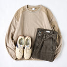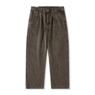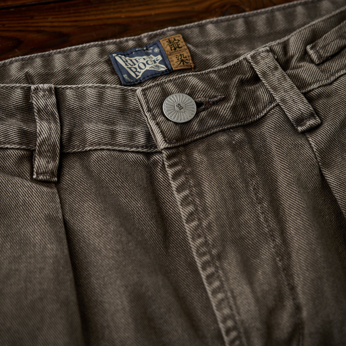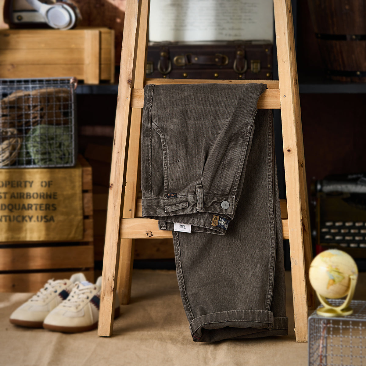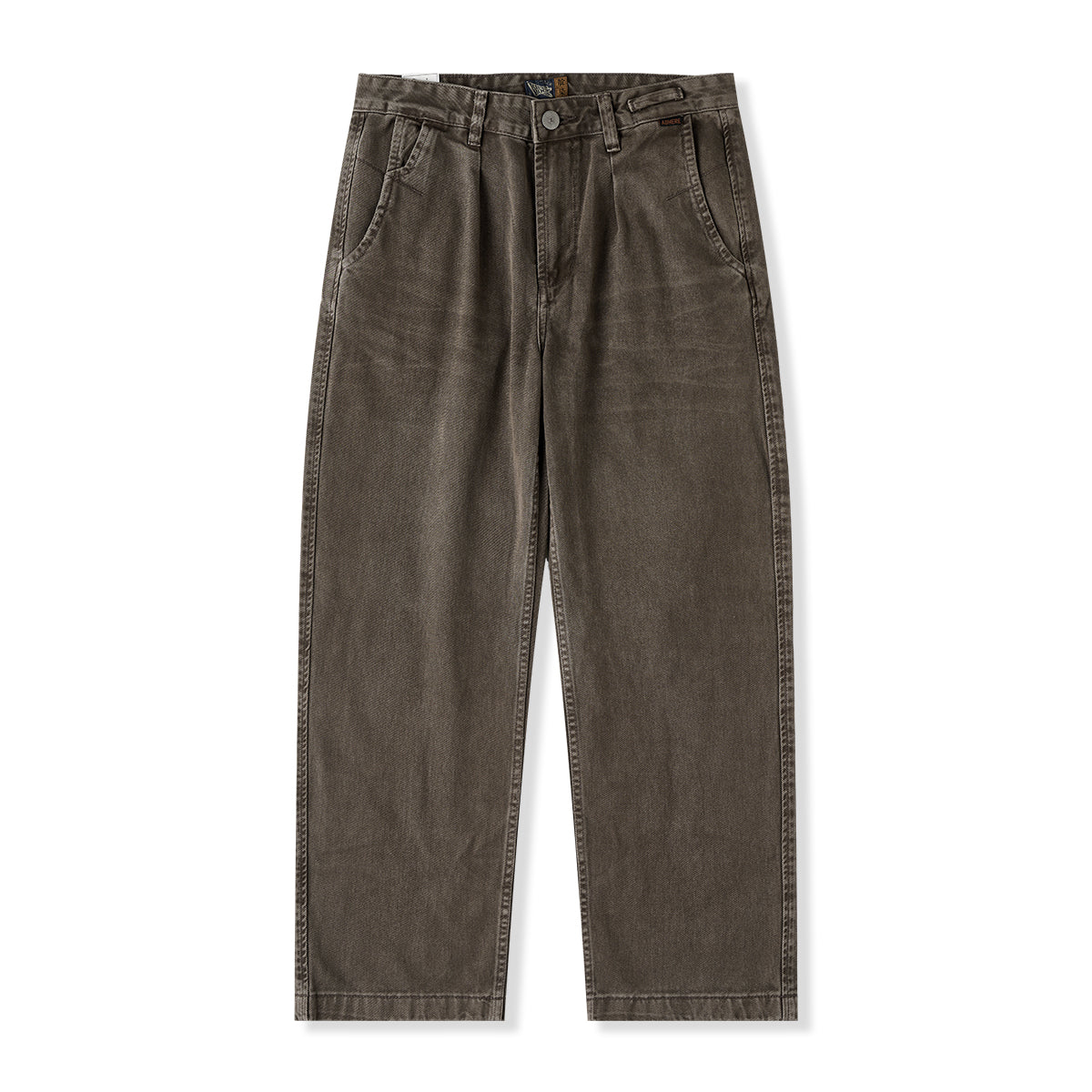 リラックスフィットのストレートカットです。全体的にゆったりとした印象で、カジュアルな着こなしがしやすいです。落ち着いたブラウンがかったグレーです。ヴィンテージ感や洗練された雰囲気を持ち、幅広いスタイルにマッチします。