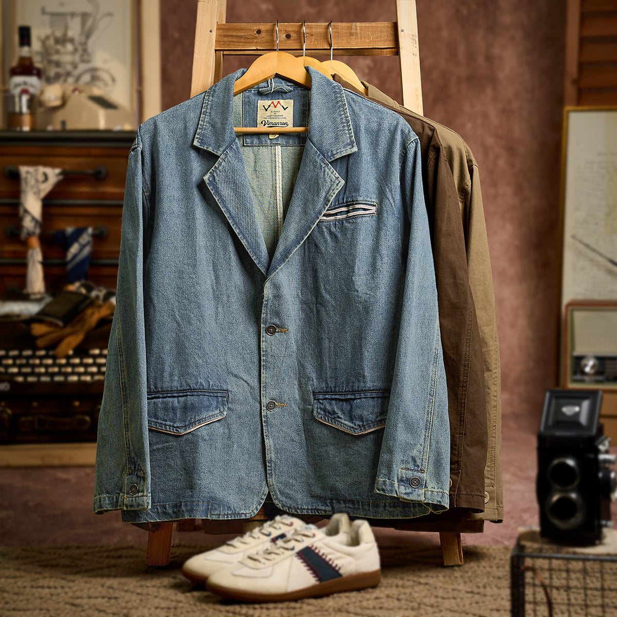 3色展開 ウォッシュ加工デニムテーラードジャケット