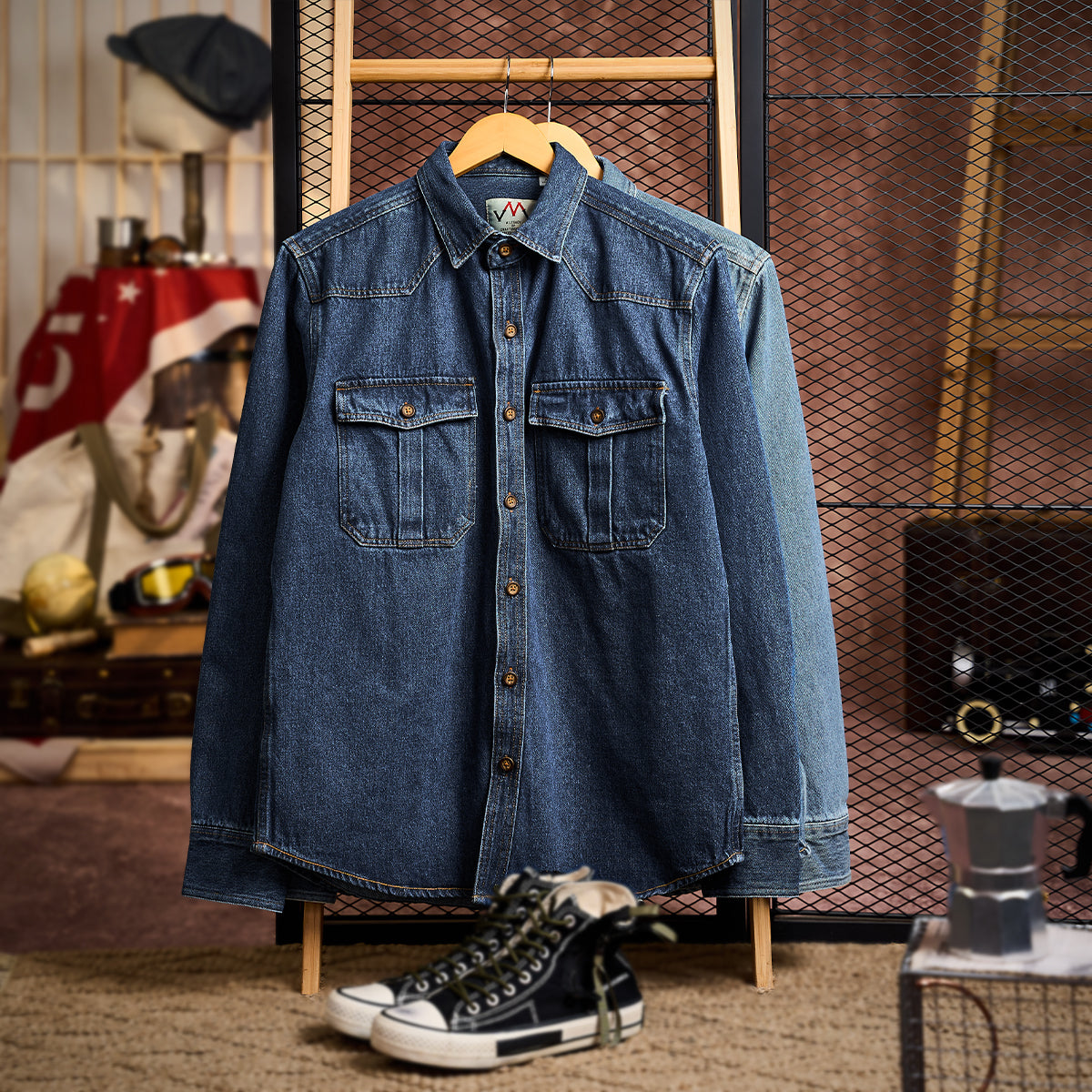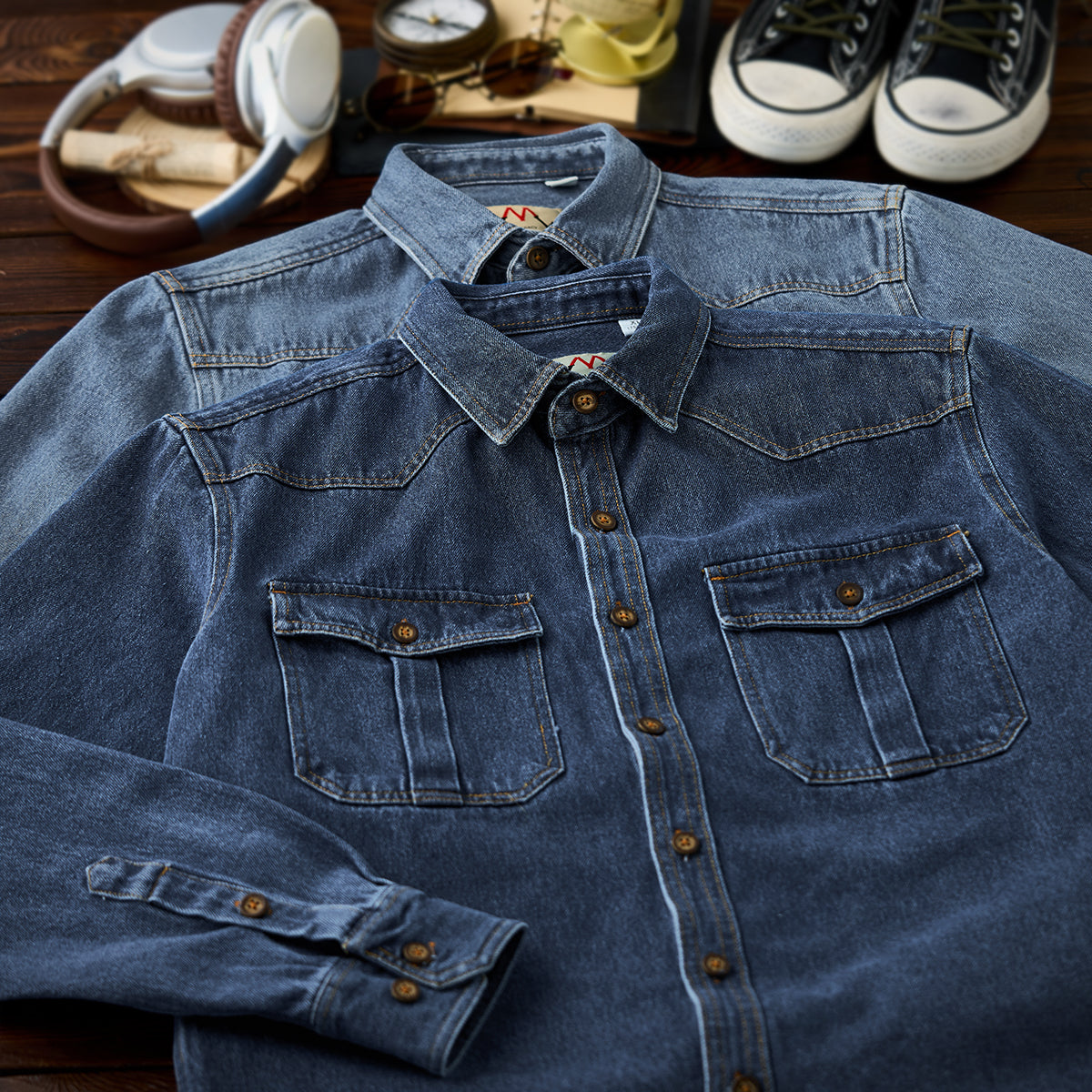 クラシックなワークウェアのディテールに、現代的なデザインを落とし込んだデニムシャツです。肩から胸にかけて施されたウエスタンヨークは、立体感と動きやすさを両立。胸元のプリーツ入りポケットは、実用性とデザイン性を兼ね備え、さりげないアクセントになっています。程よい厚みのデニム素材は、長く着込むほどに味わいが増し、経年変化も楽しめる仕上がり。カジュアルにはもちろん、レイヤードスタイルのインナーとしても活躍します。デザインのこだわりと着心地を両立させた、日常に溶け込むワークシャツです。