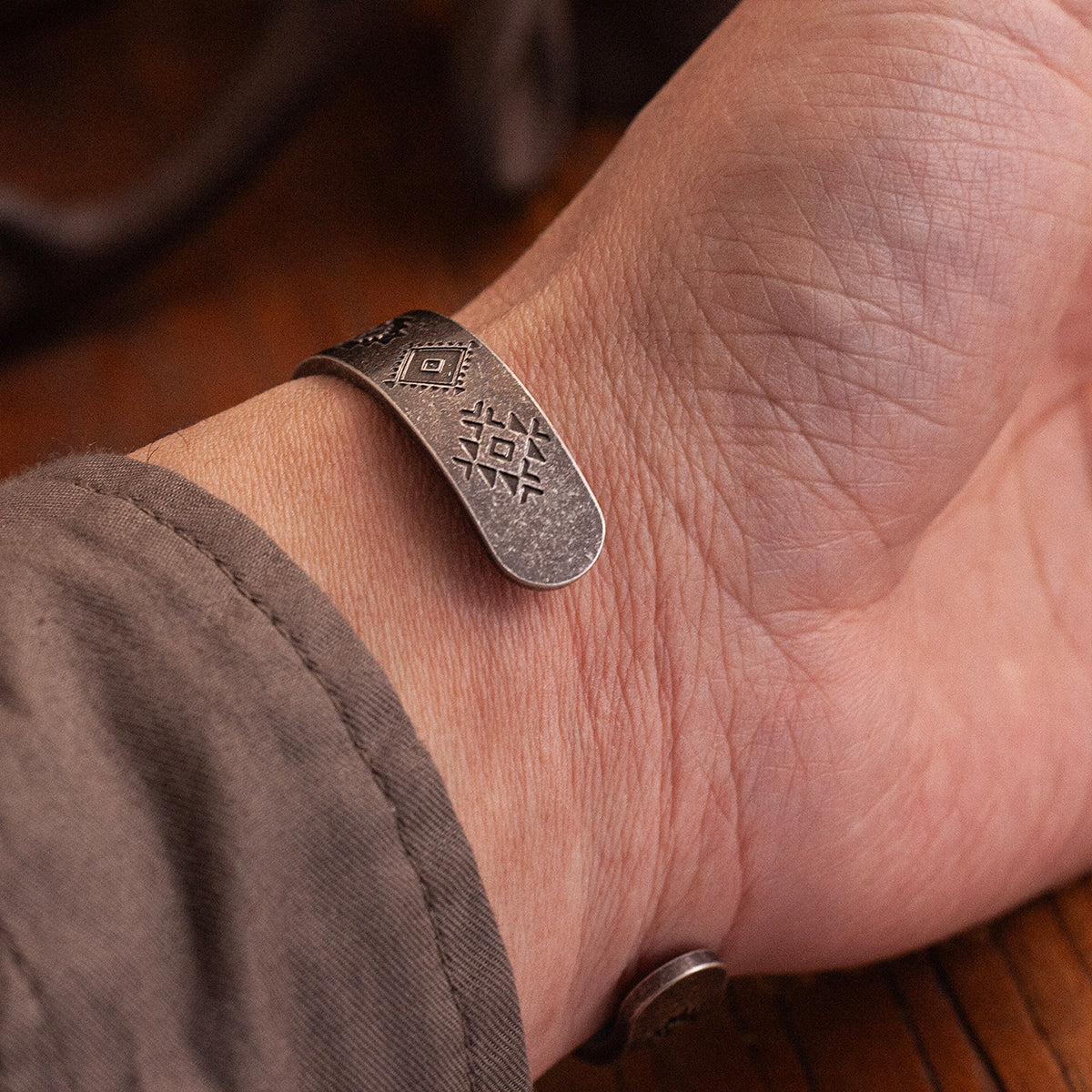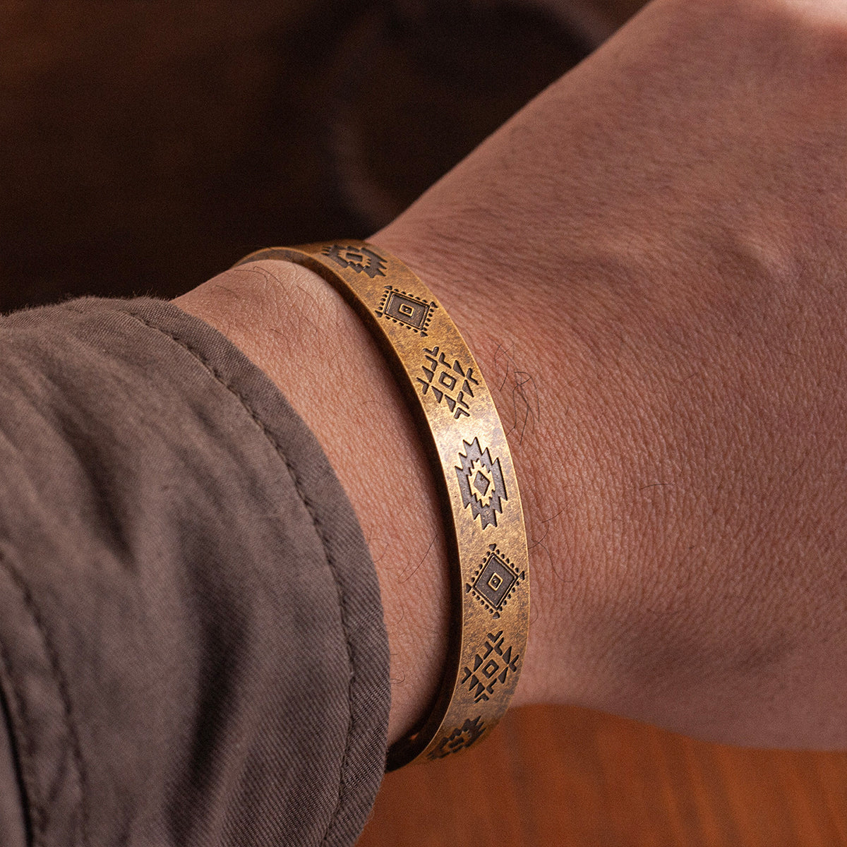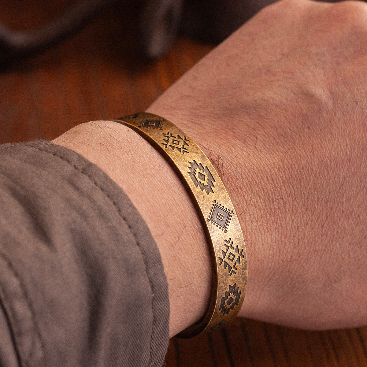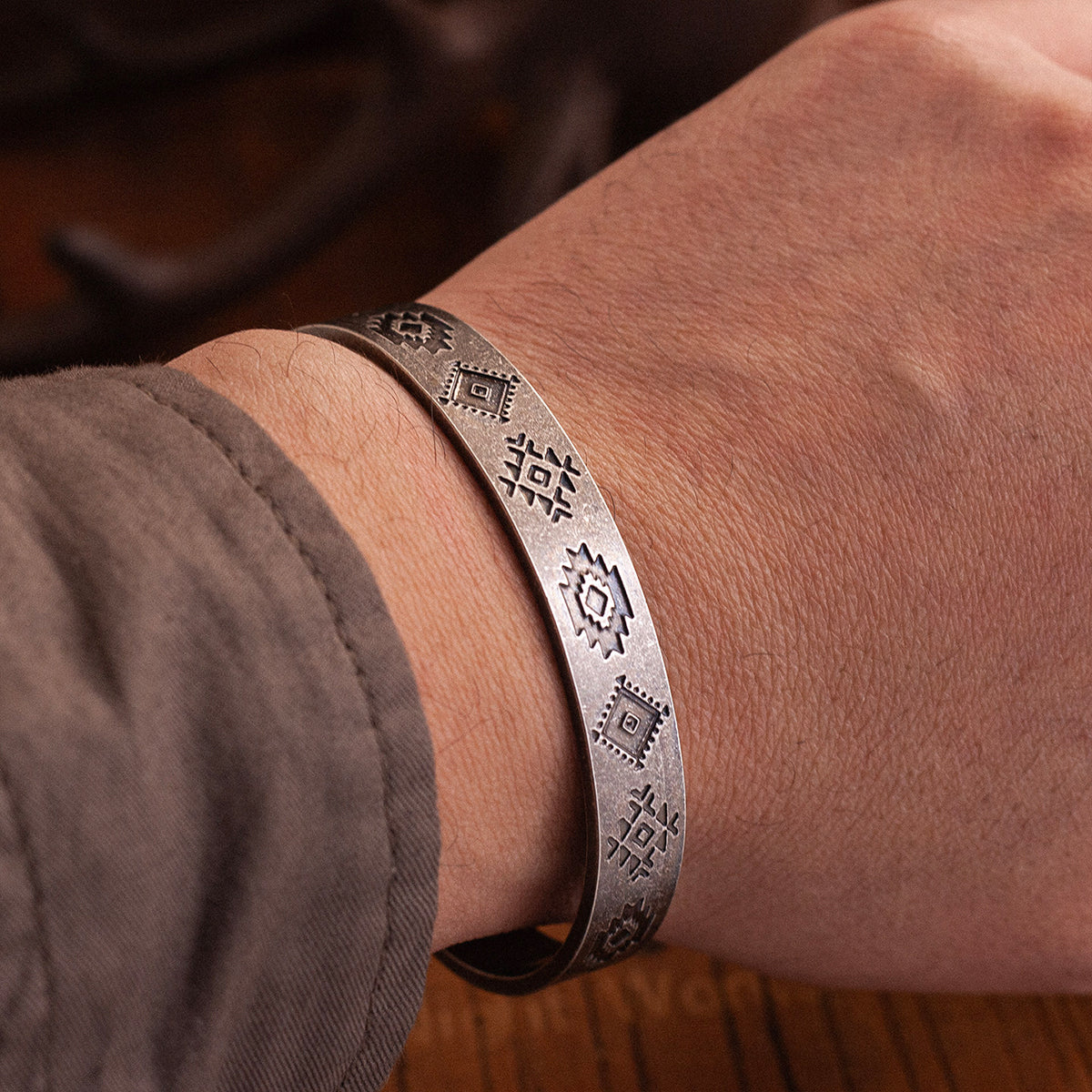 ナバホトーテム柄 ヴァイキングヴィンテージ仕上げチタンブレスレット