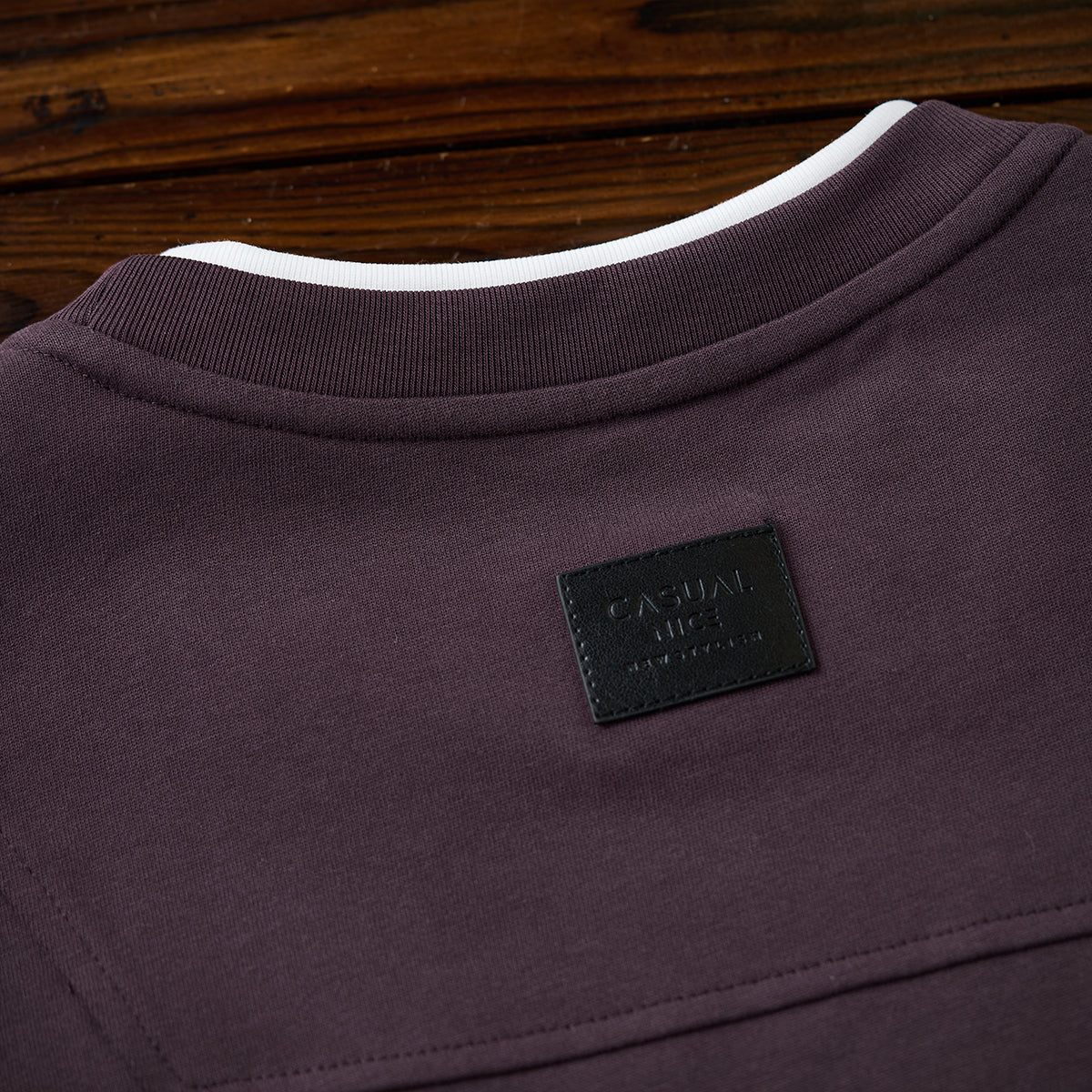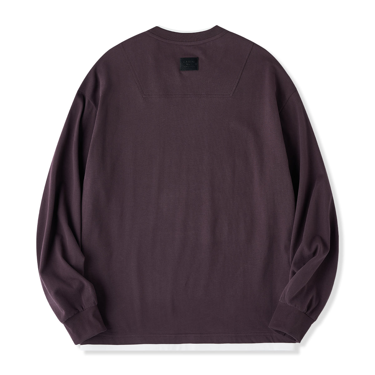 3色展開 レザータグ付きフェイクレイヤードコットンロンT