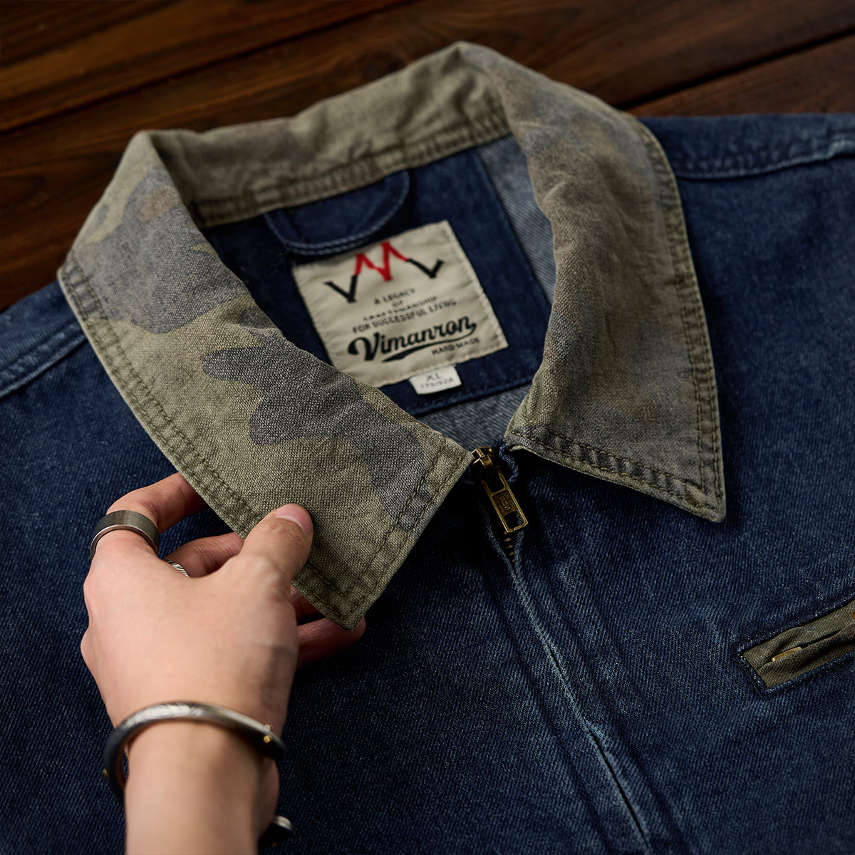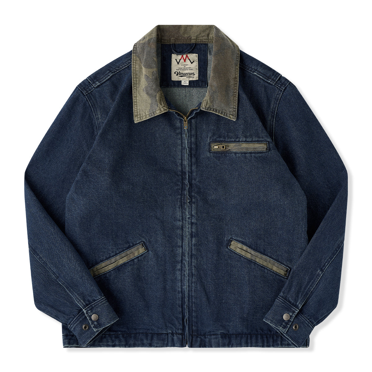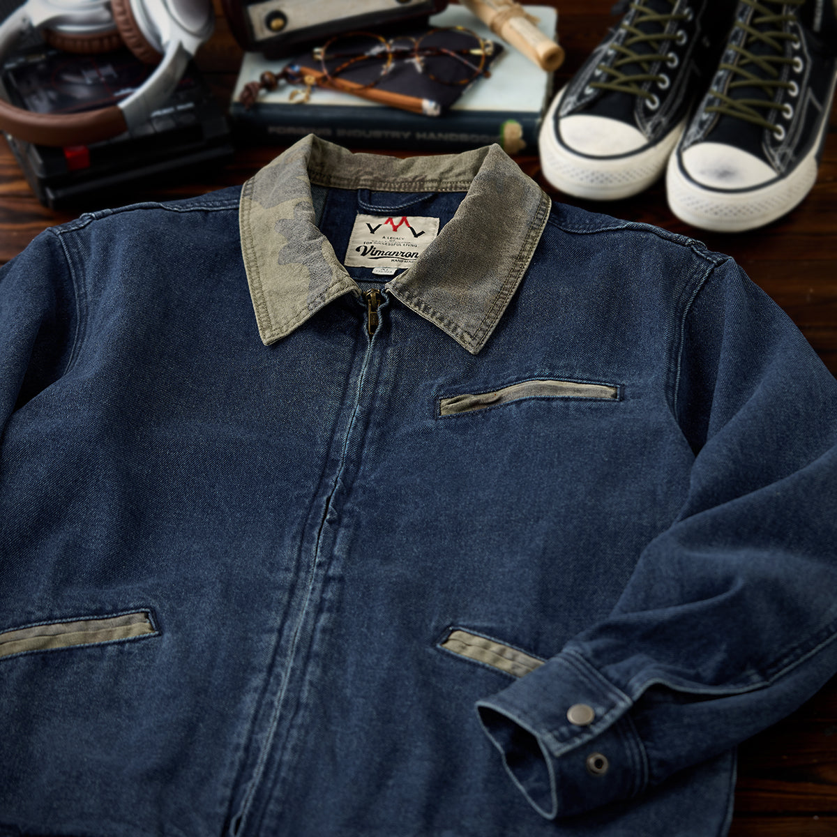襟カモフラージュ ウォッシュデニムデトロイトジャケット