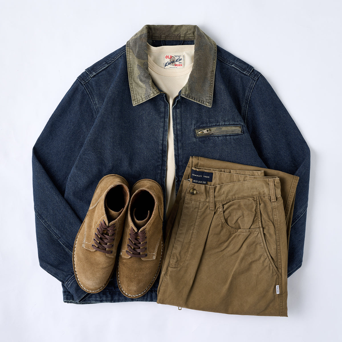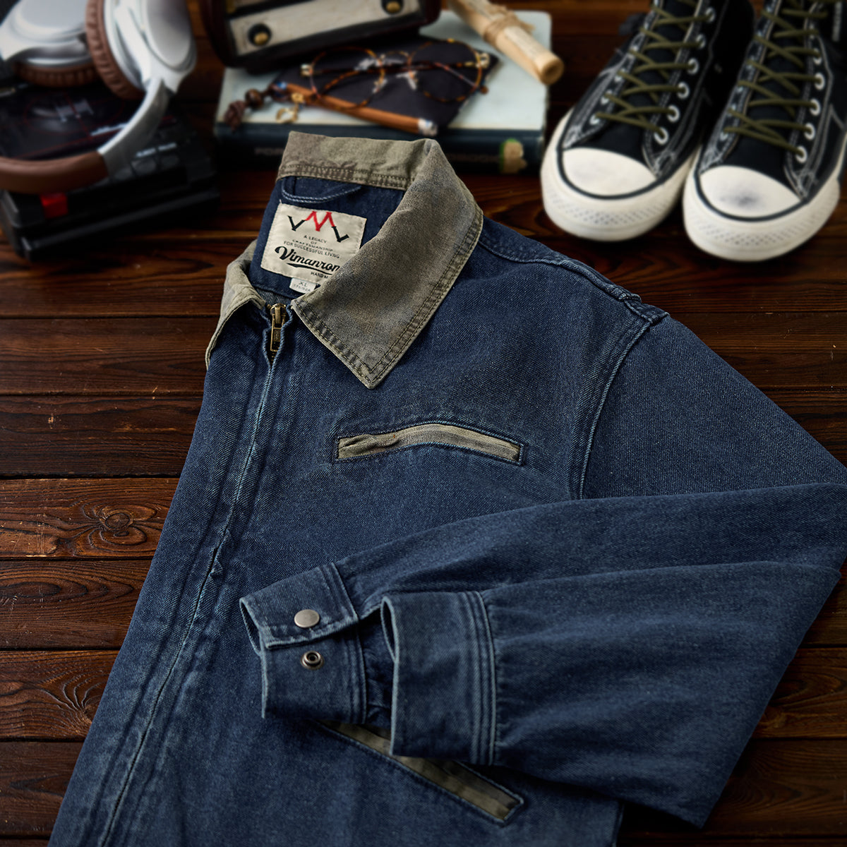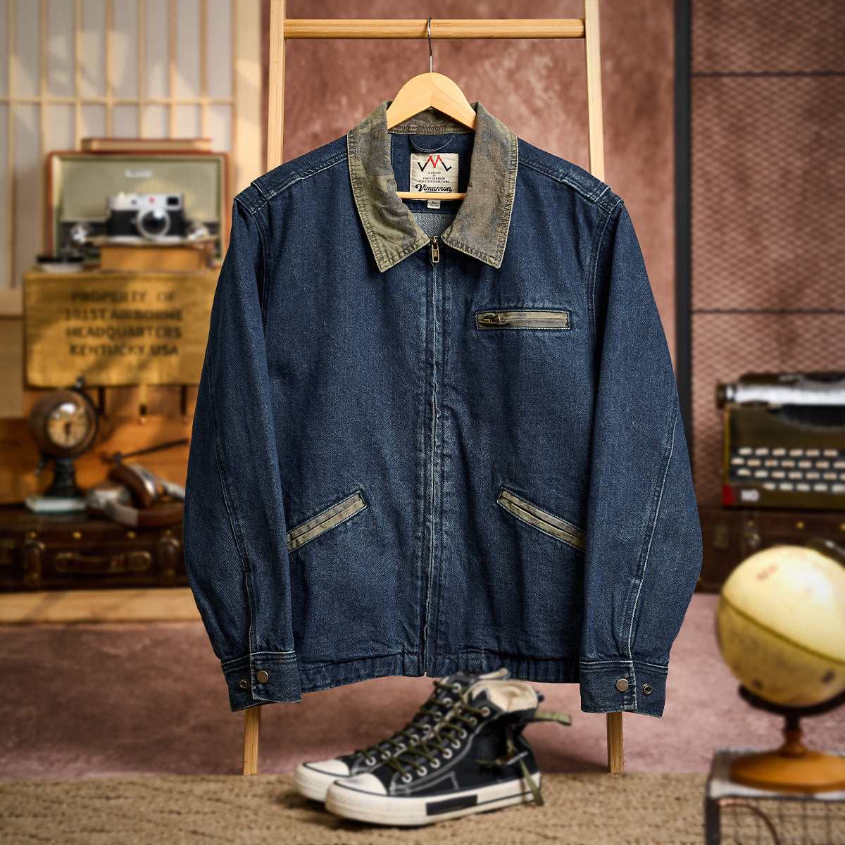 襟カモフラージュ ウォッシュデニムデトロイトジャケット