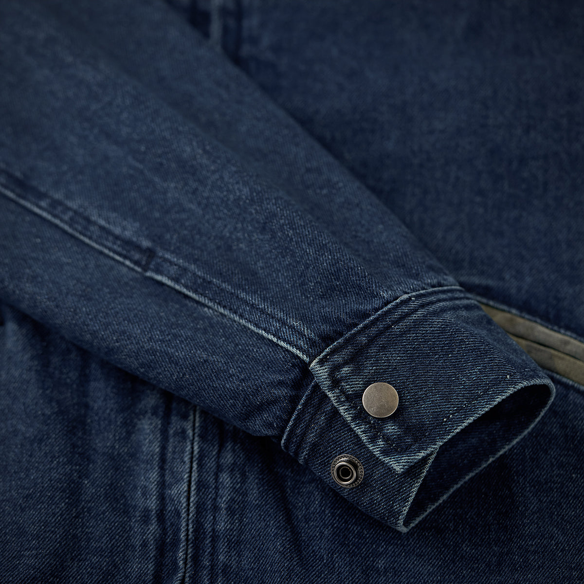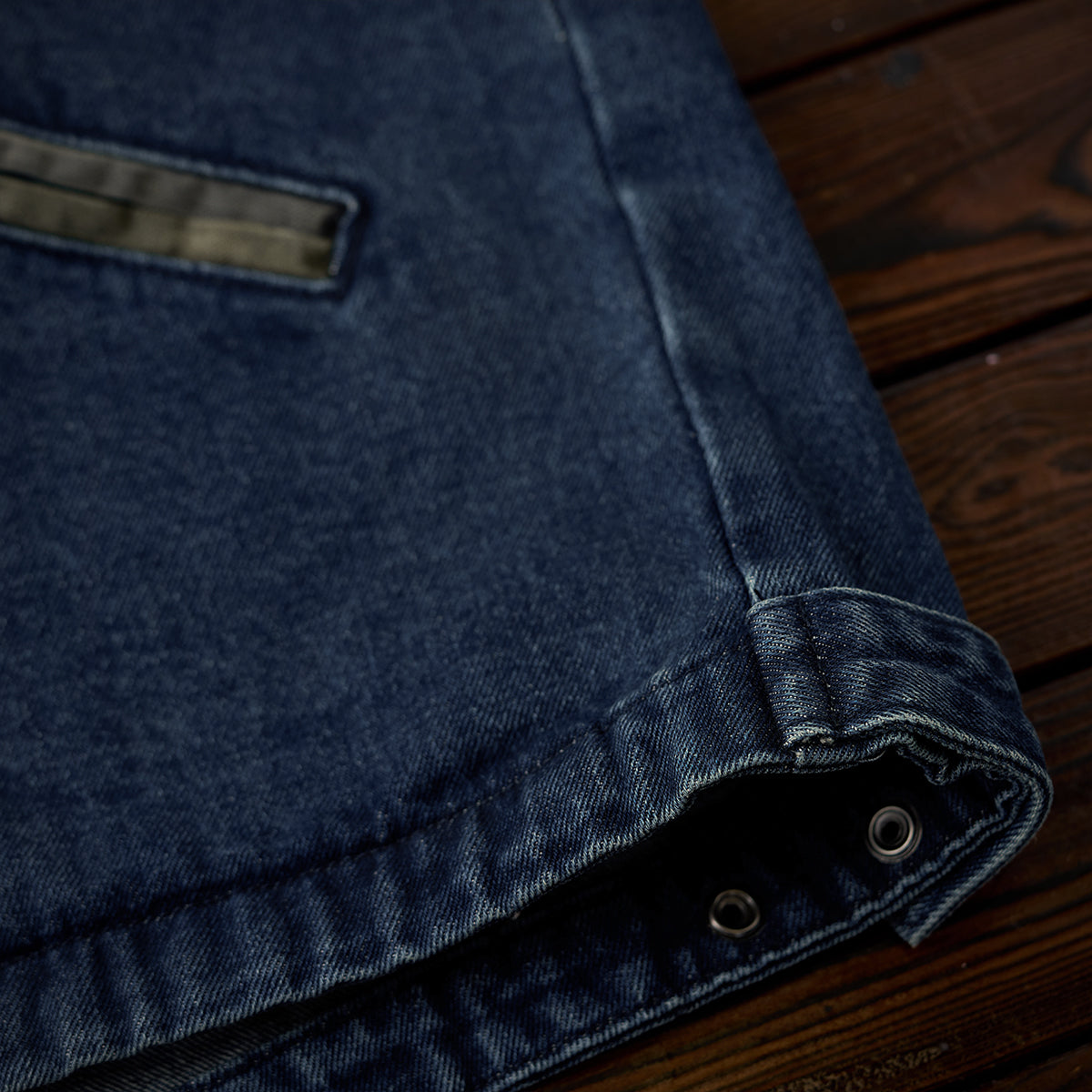【予約】フックボタン付き斜め前立て スタンドカラーデニムジャケット