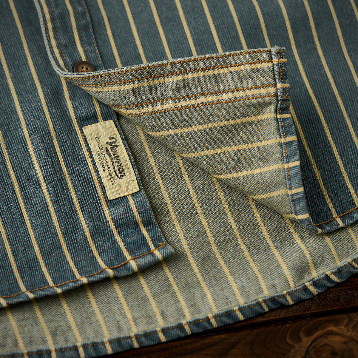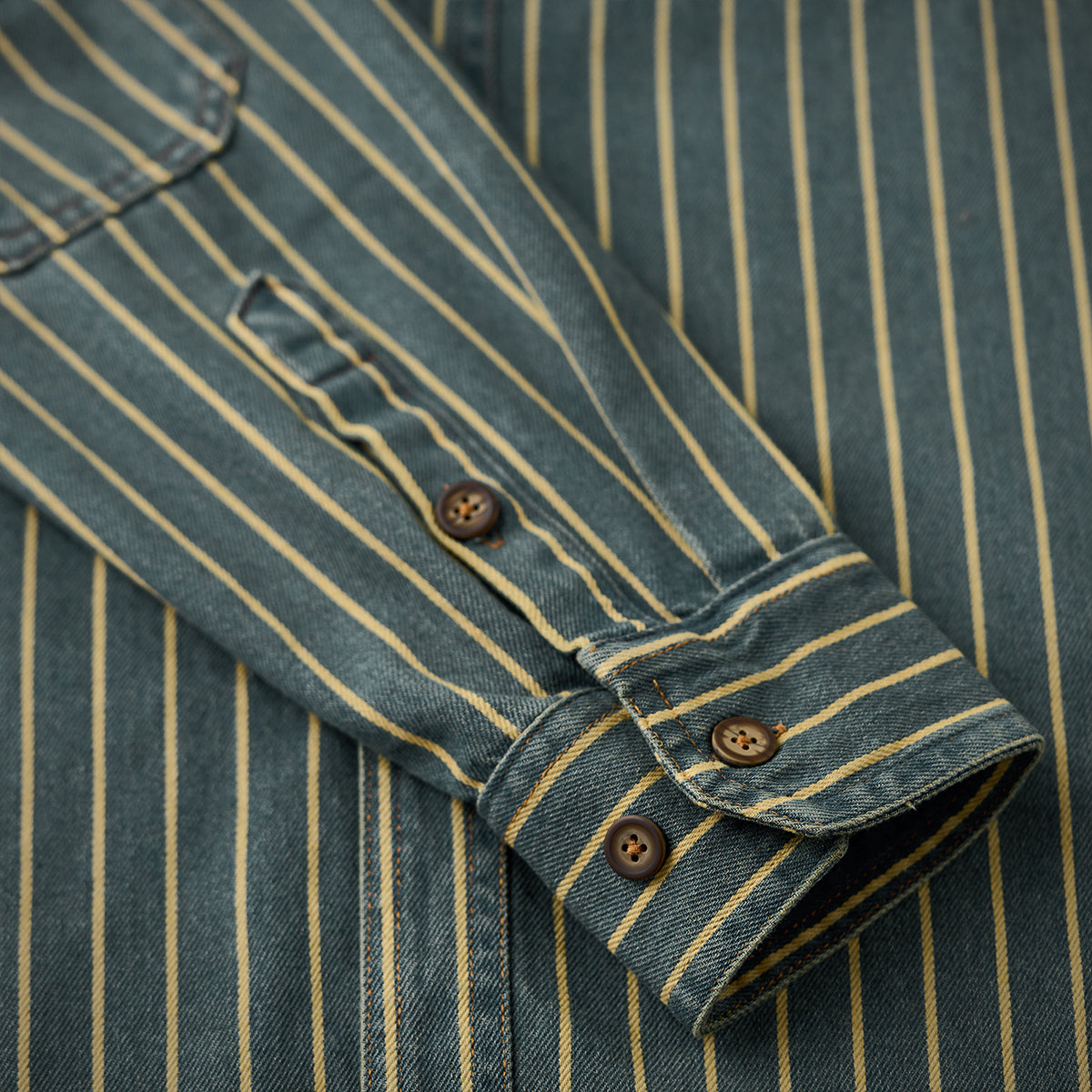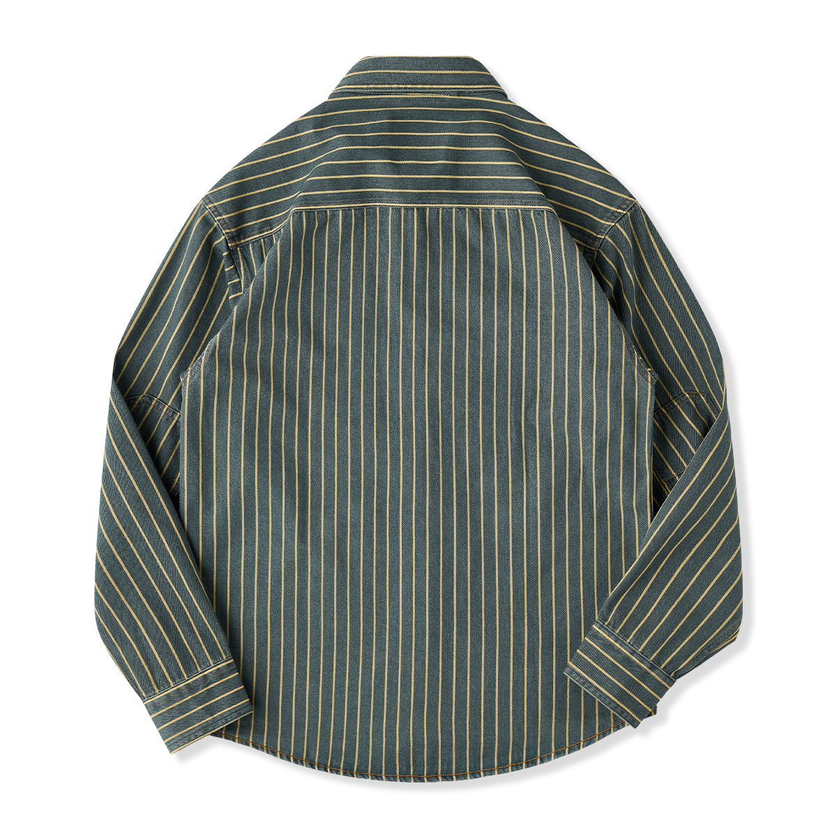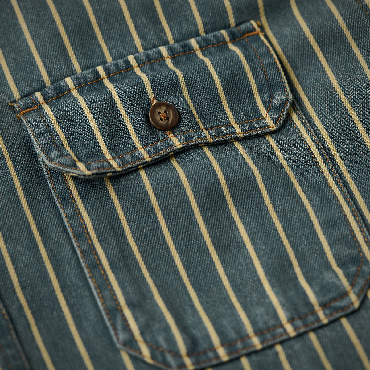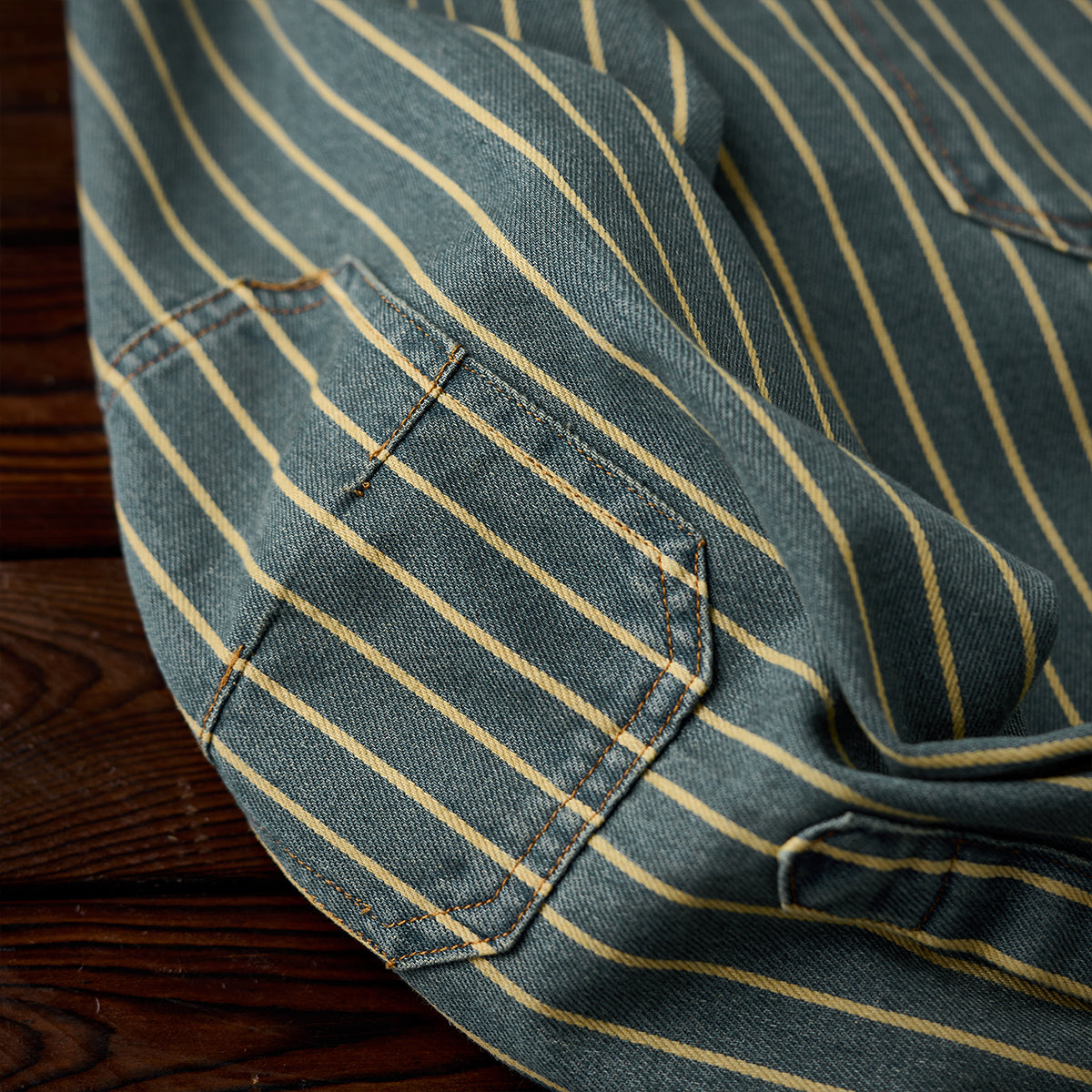 ガチャポケ付き ストライプ柄ウォッシュド加工デニムワークシャツ