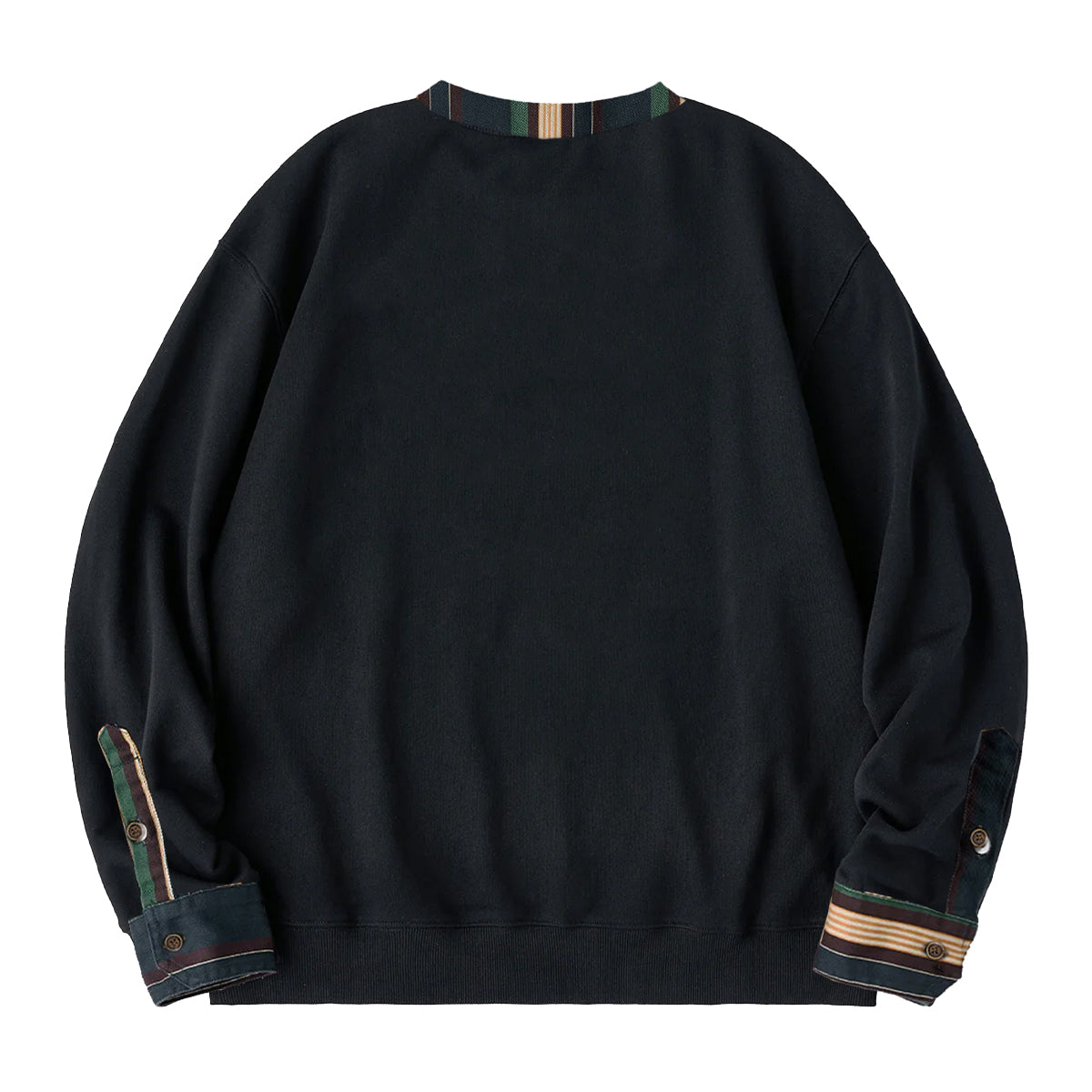 【予約】マルチストライプ切替 3ボタンヘンリーネックスウェットシャツ