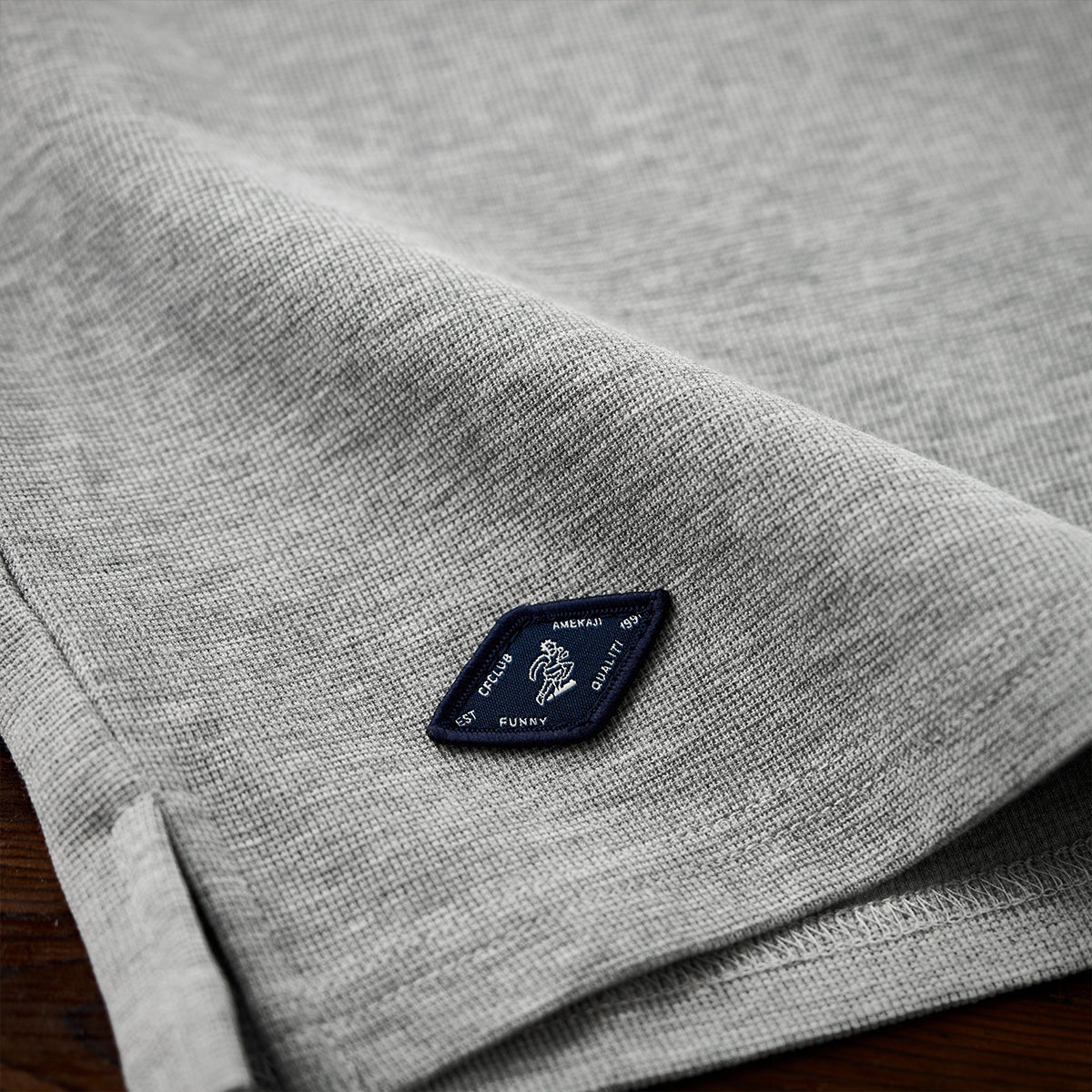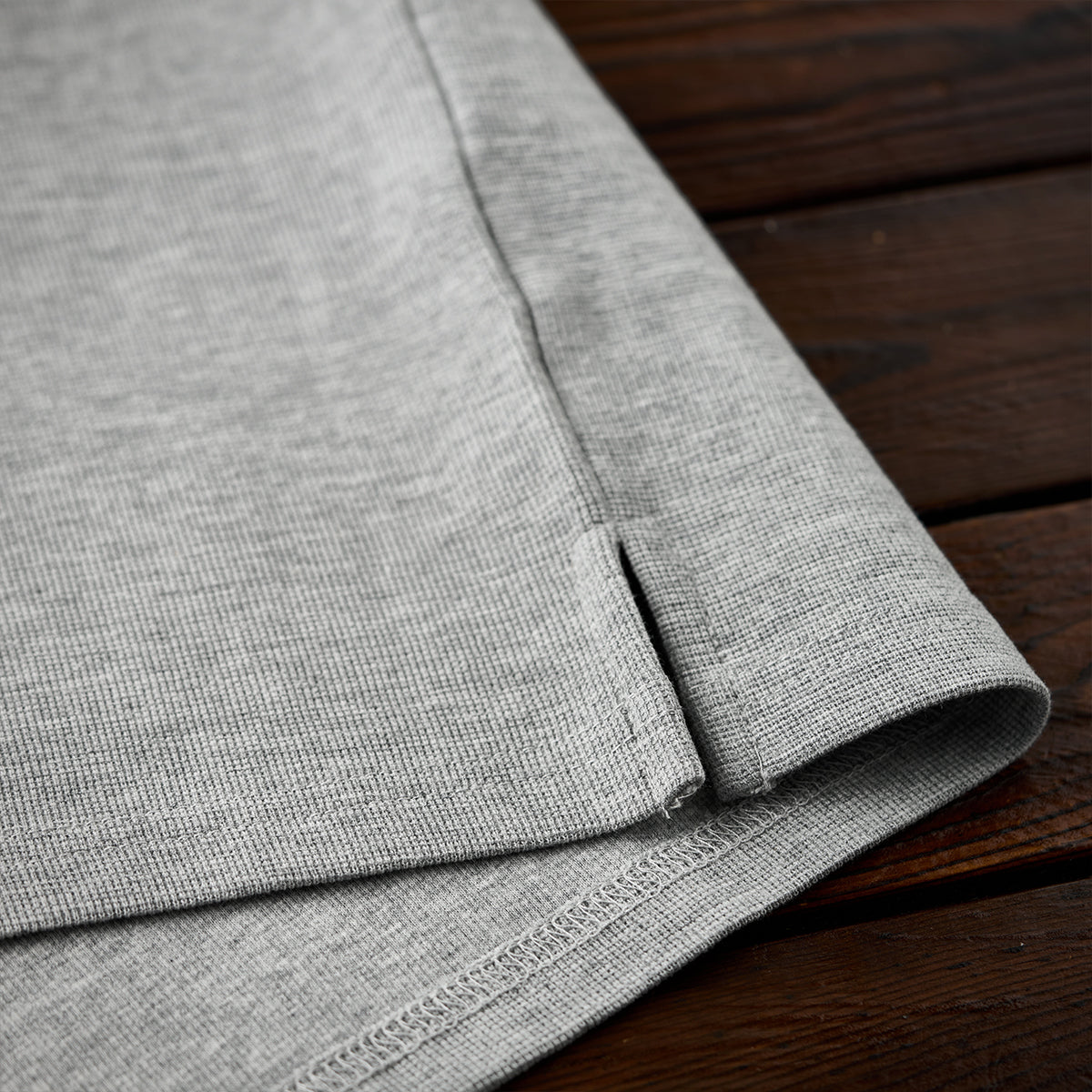 細かな凹凸のあるワッフル生地は、触感に柔らかさを与えつつ、肌への密着を軽減。通気性が高く、蒸れにくい素材として機能的。