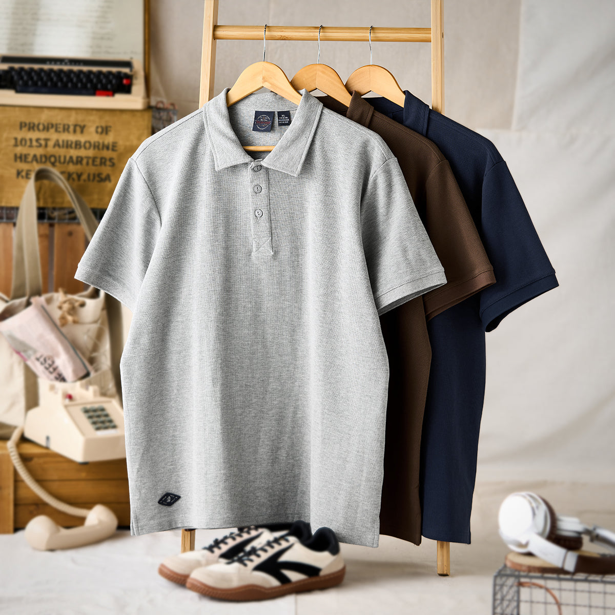 ミニワッフルテクスチャーポロシャツ 全3色