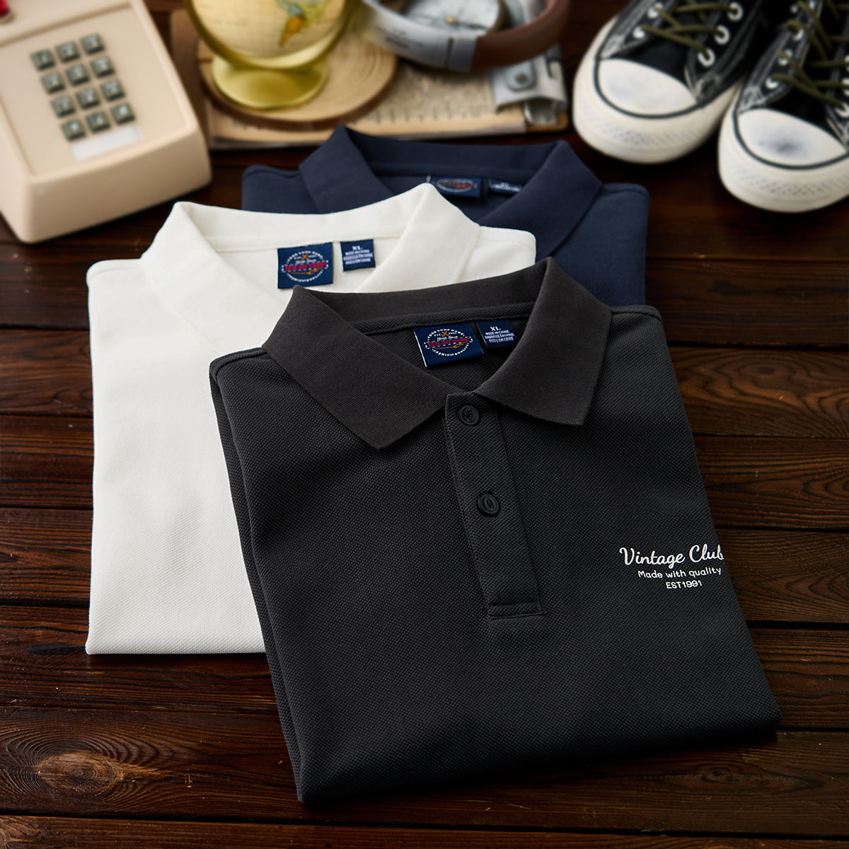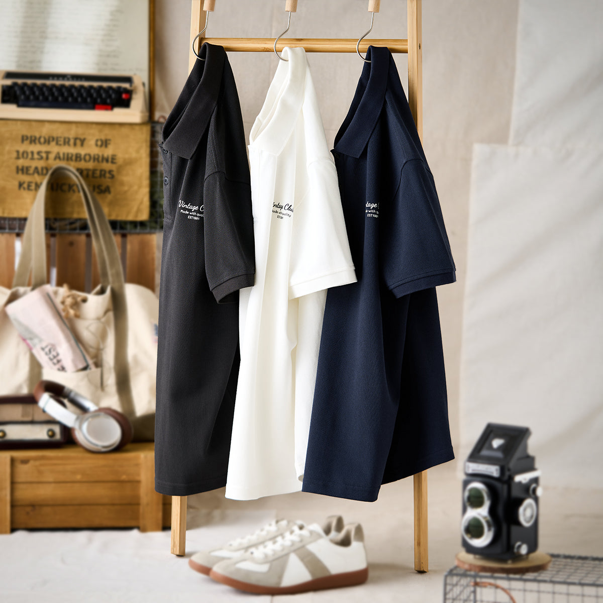 表情豊かなピケ編みコットンを使用した、ベーシックながらこだわりが光るポロシャツ。立体感のある生地が肌離れよく、通気性にも優れており、ロングシーズン快適に着用できます。ワンポイントのプリントが目を引く。カラーは使いやすい無地の3色展開。インナーとしても主役としても頼れる、シンプルながら洗練された一枚です。