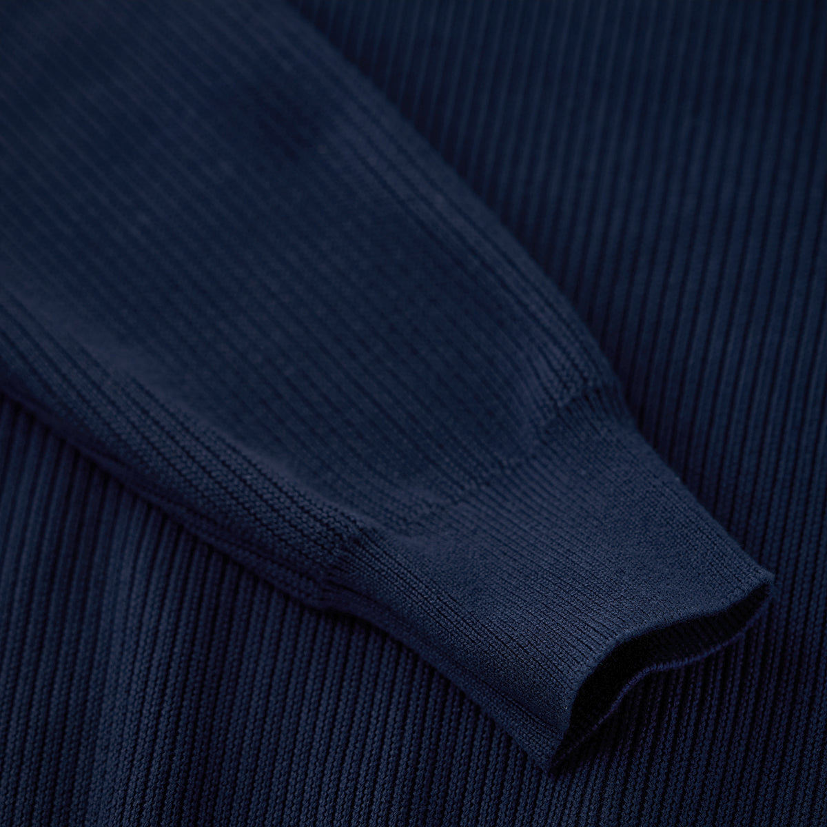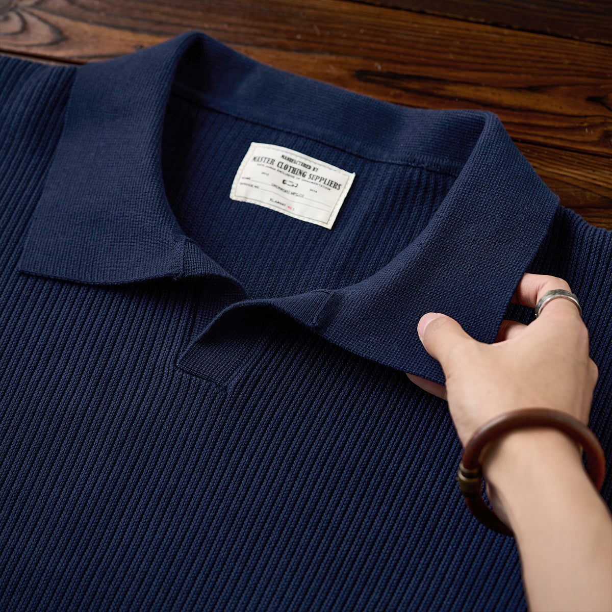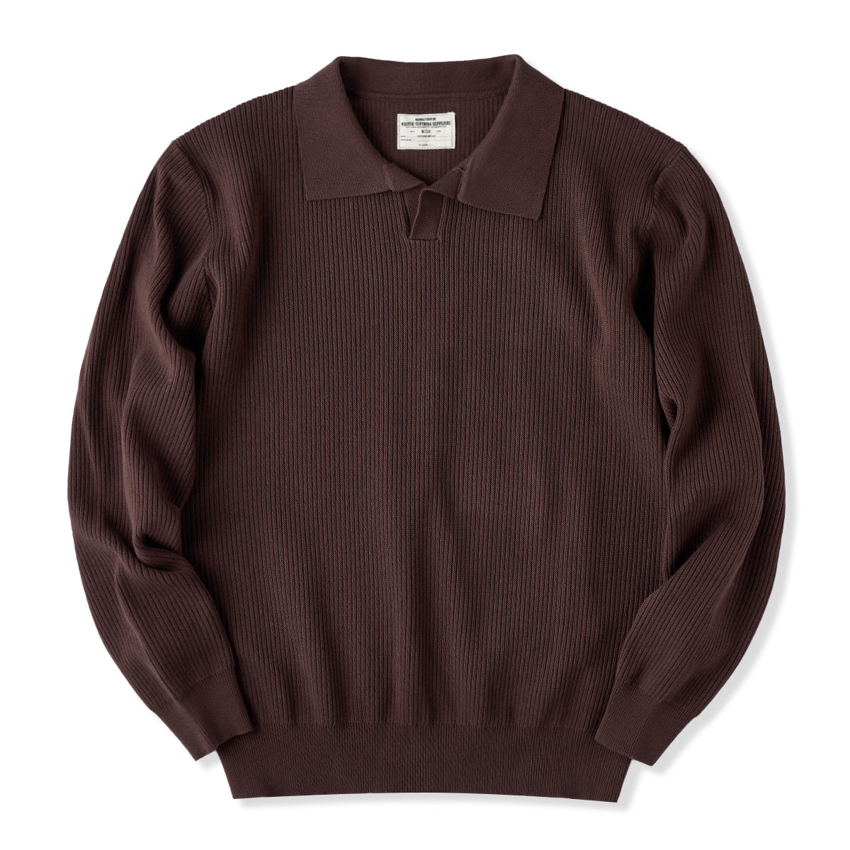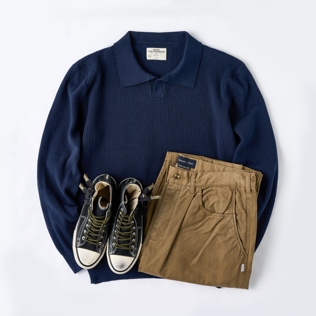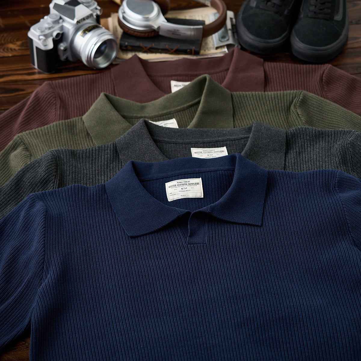 肉厚でしっかりとした質感が魅力の、ヘビーウェイトコットンニット織りスキッパーカラーポロシャツ。編地特有の伸縮性と、コットンならではのやわらかな肌触りを兼ね備え、快適な着心地を実現。襟元はボタンレスのスキッパーデザインで、リラックスした抜け感と大人の余裕を演出します。袖口と裾にはリブを配し、シルエットを程よく引き締めながら、スポーティかつ上品な印象に仕上げました。無地ながらも、ニット織りの表情豊かな生地感が上品さをプラス。一枚で着ても様になり、ジャケットやブルゾンのインナーとしても幅広く活躍します。ベーシックでありながら存在感のある、シーズンレスなアイテムです。