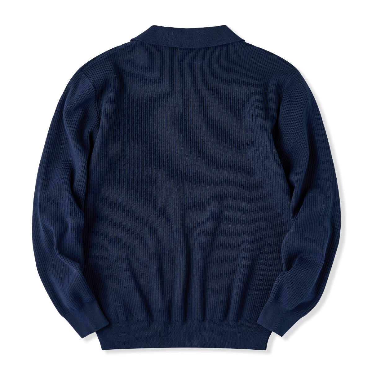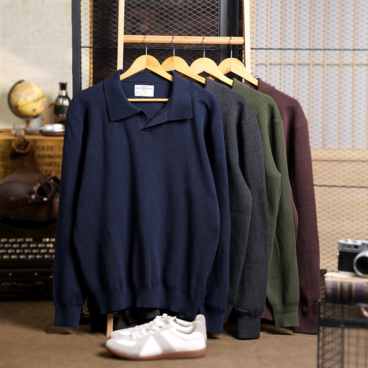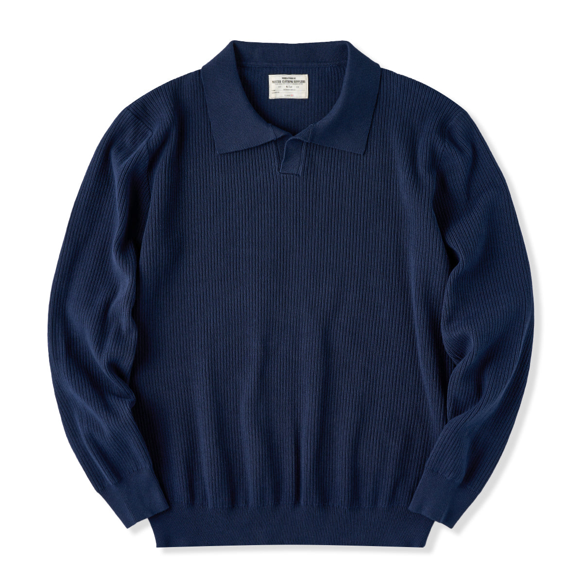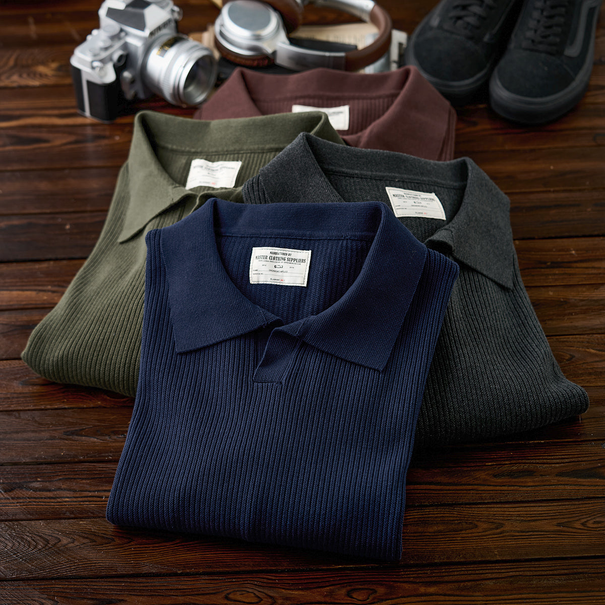無地4色 ヘビーウェイトコットンニット織りスキッパーカラーポロシャツ