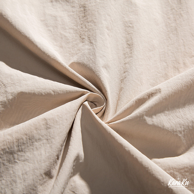 上質なポリエステル素材を使用、ハリがある生地なので綺麗なシルエットをキープしてくれます。しなやかでシワになりにくいのも特徴です。