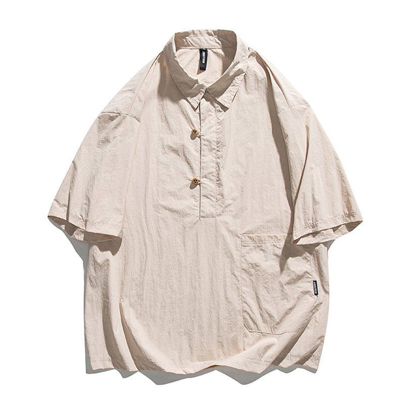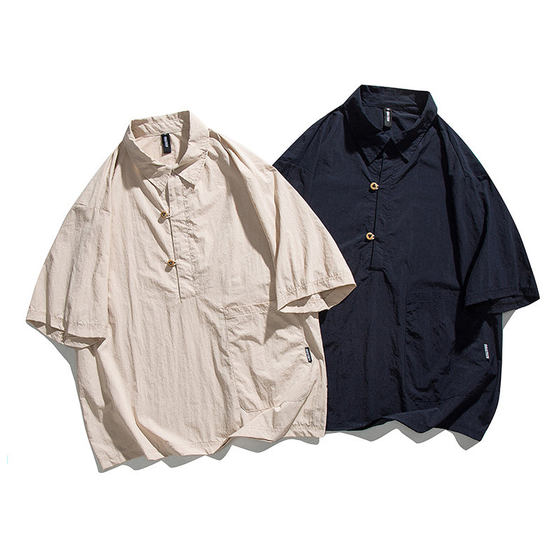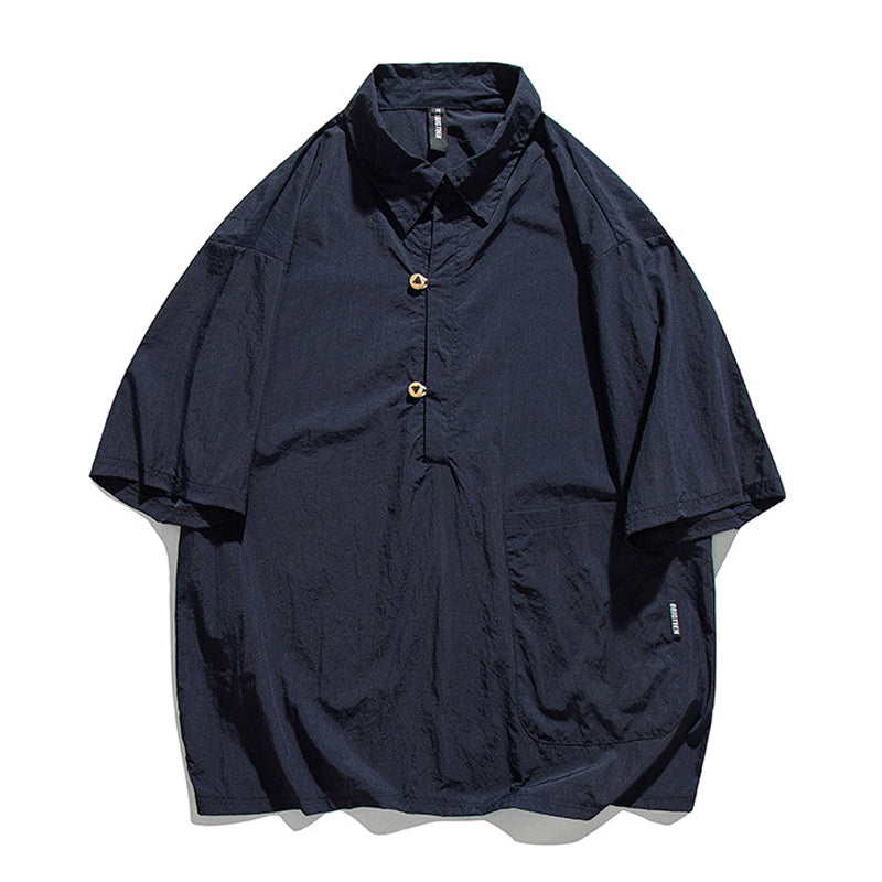 ループウッドボタン付き ルーズシルエットポロシャツ