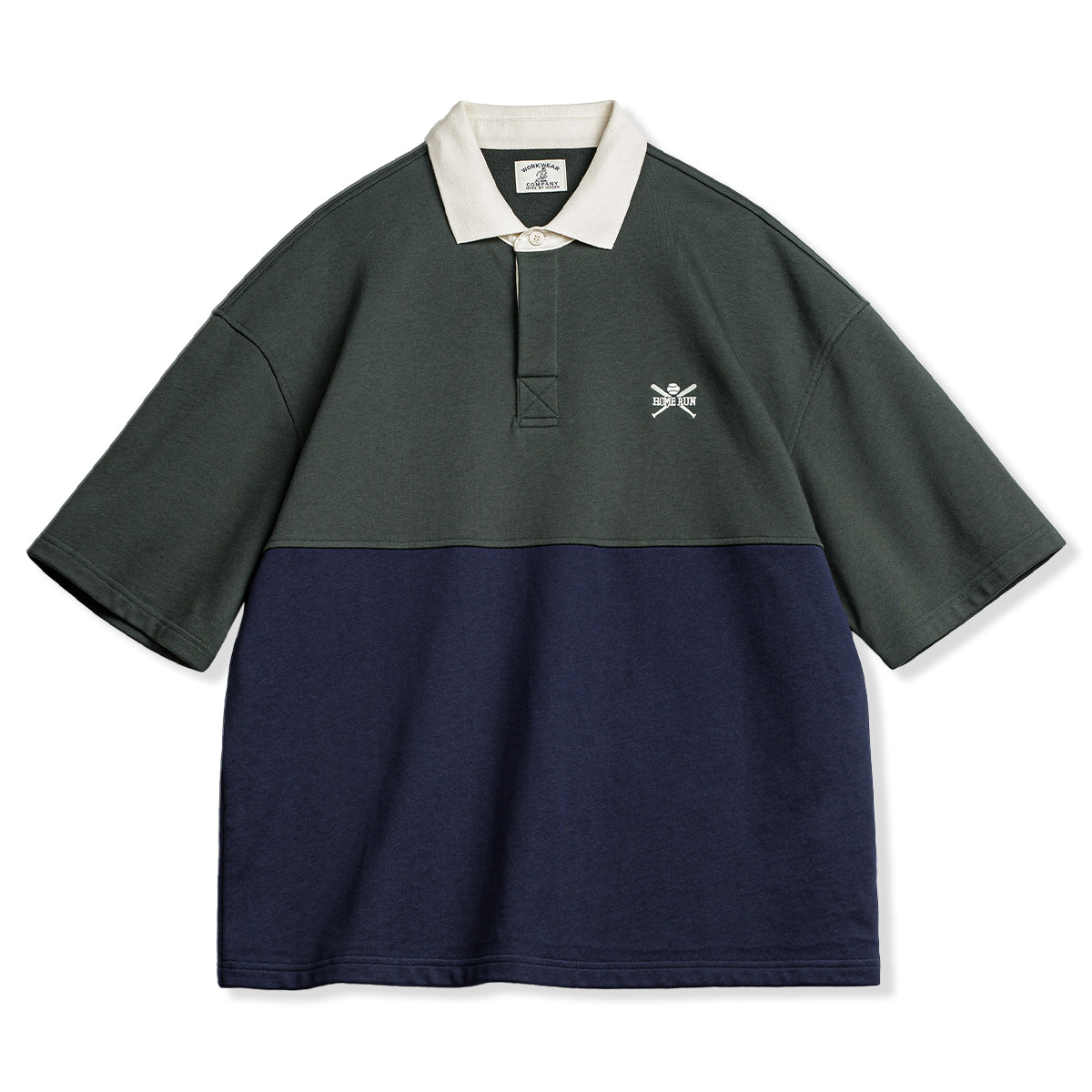 「HOME RUN」&ベースボール要素刺繡 配色切替ポロシャツ