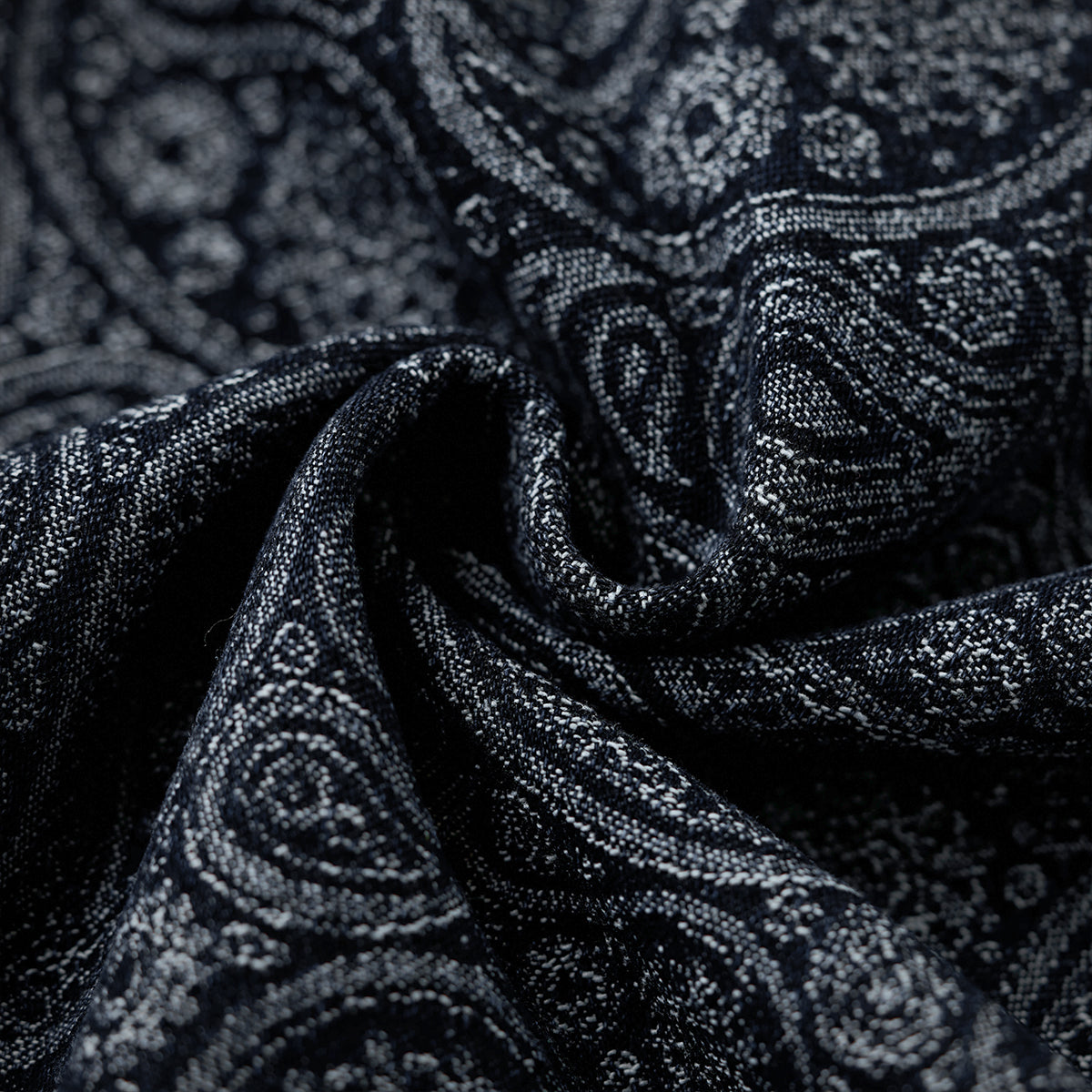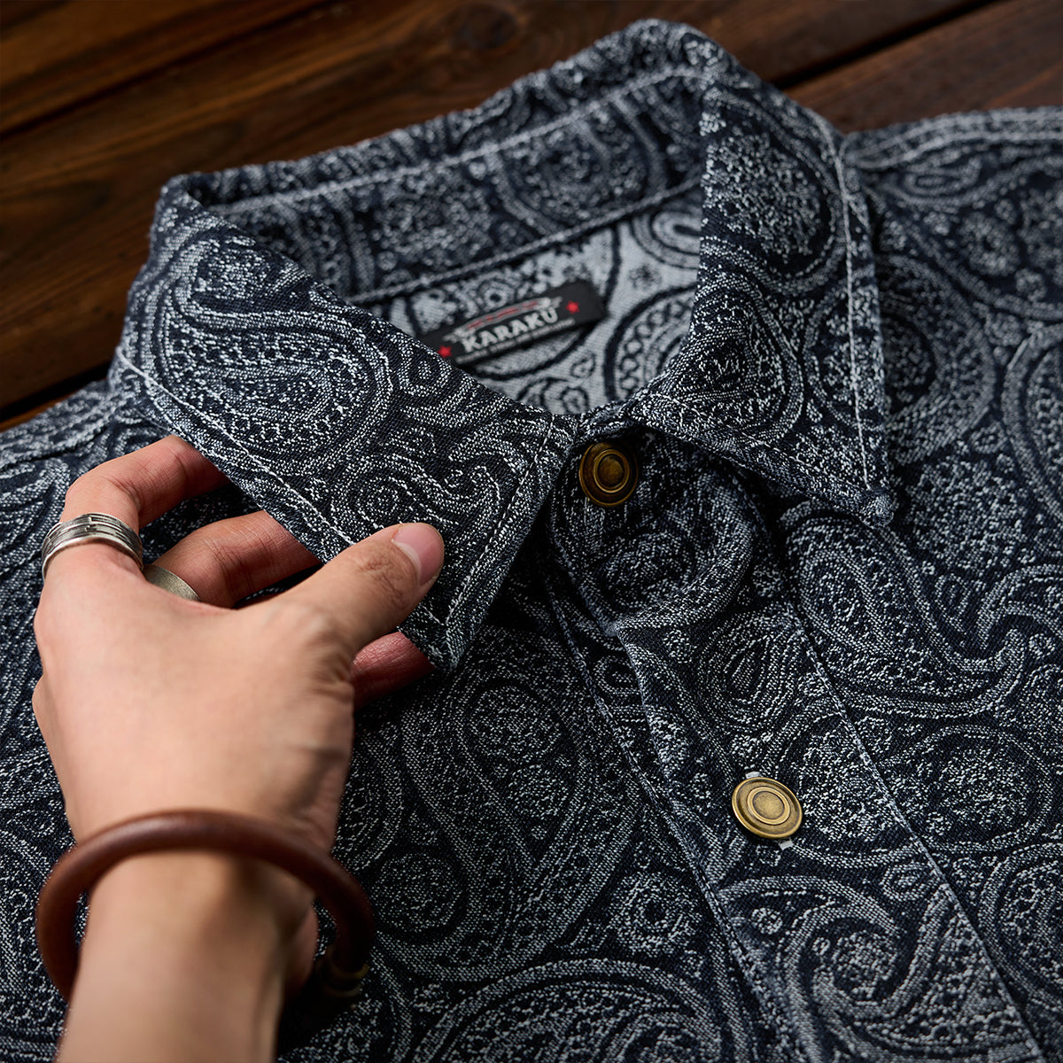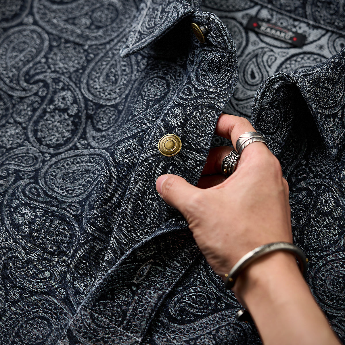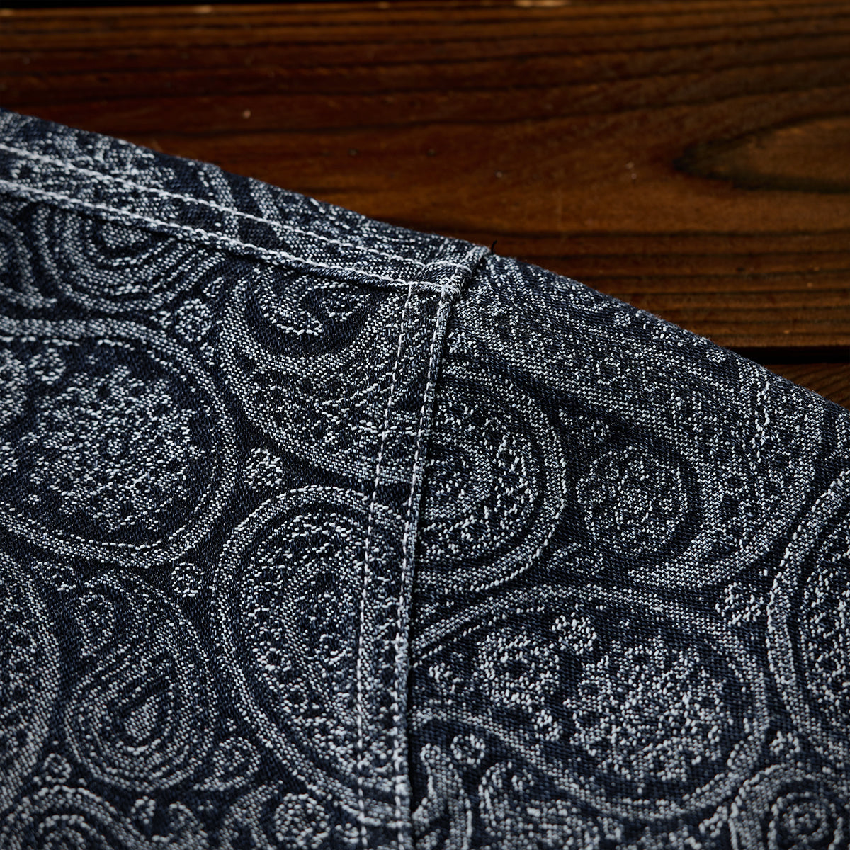 ペイズリー柄ジャガード織りデニム ハーフボタンデニムプルオーバーシャツ