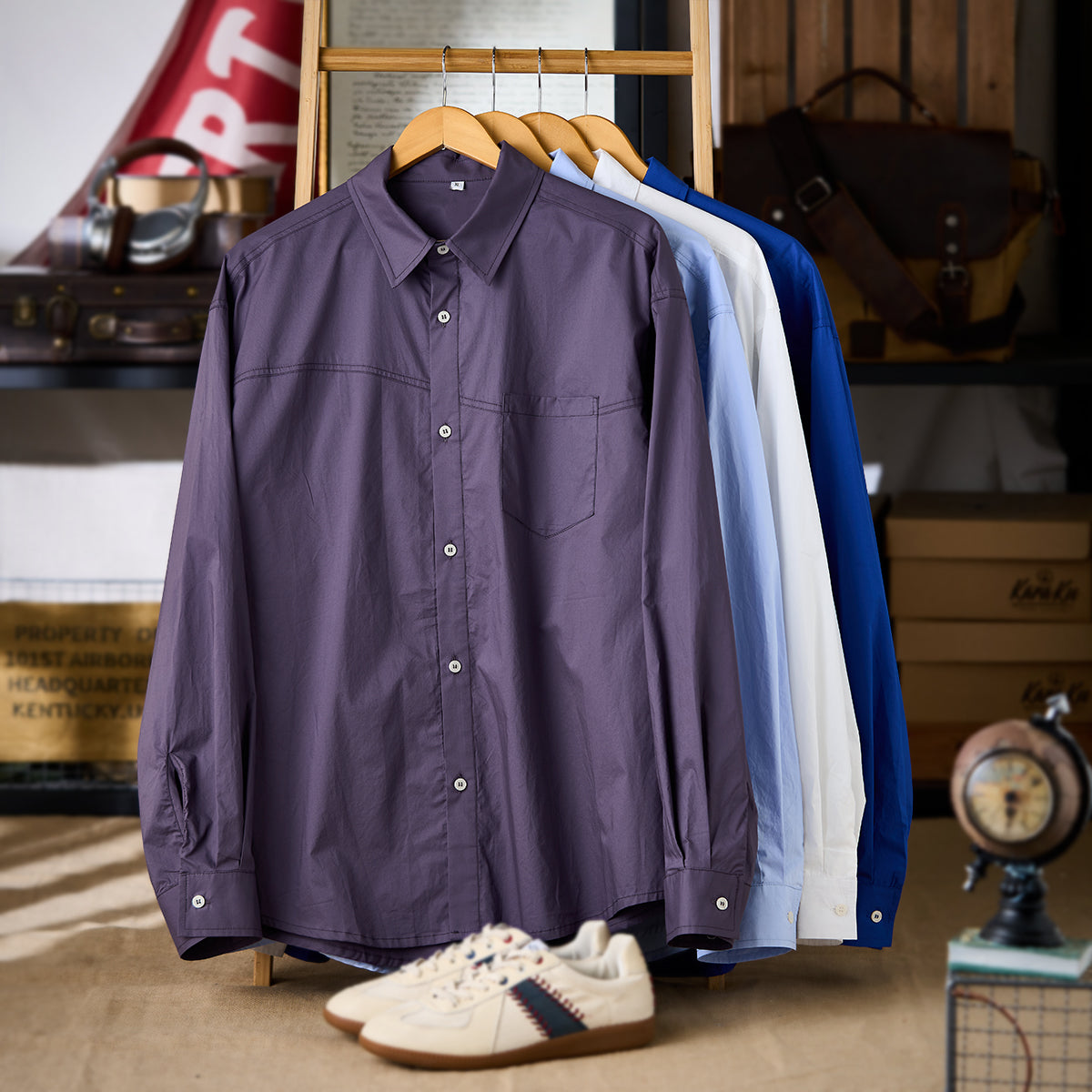 4色展開 ウェーブステッチコットン長袖シャツ