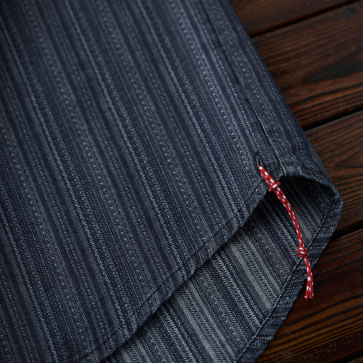 【予約】紅白ヒモ付き ジャカードストライプ綿麻デニムシャツ