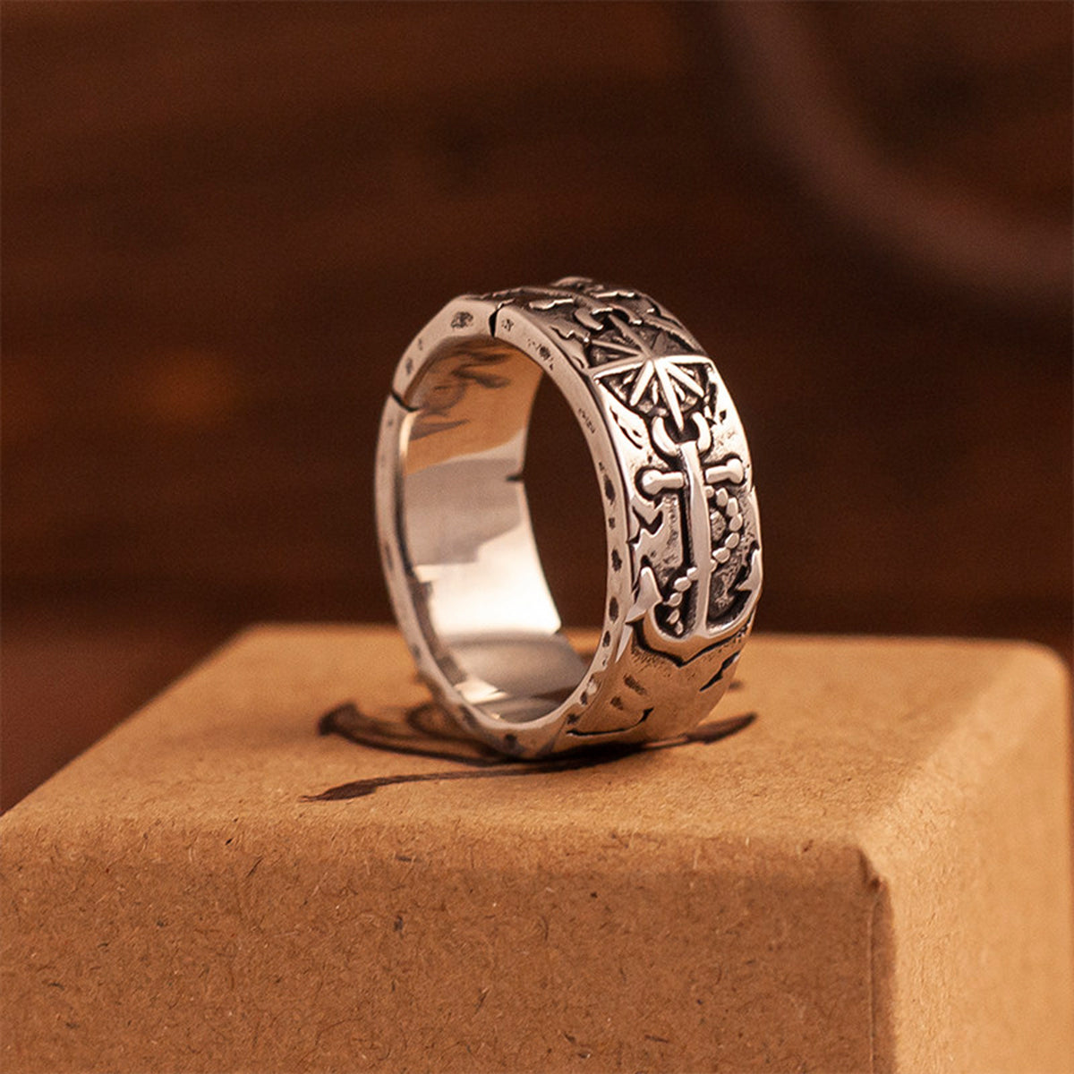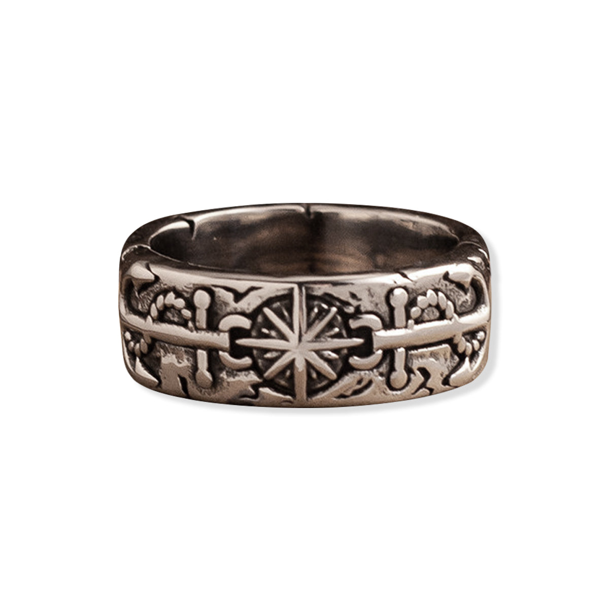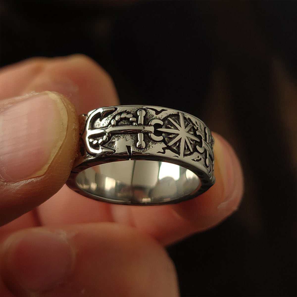 アンカー&コンパス柄 ヴィンテージ仕上げチタンリング