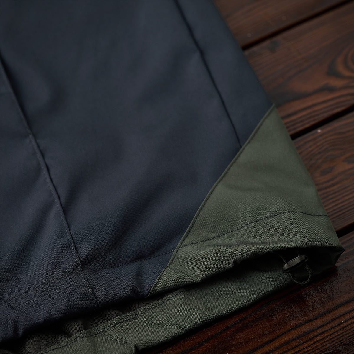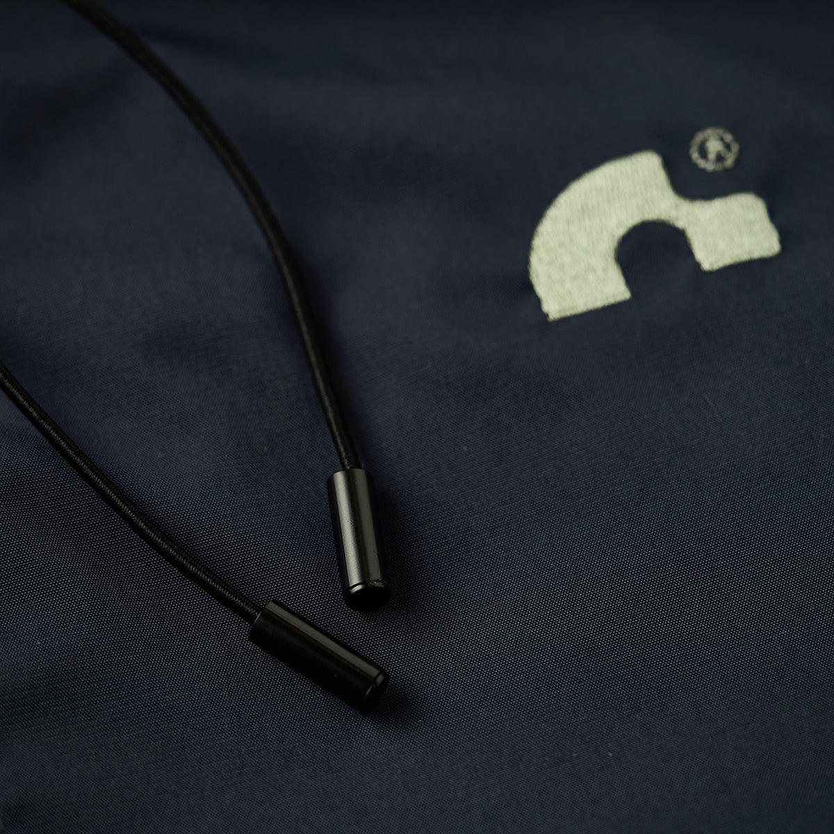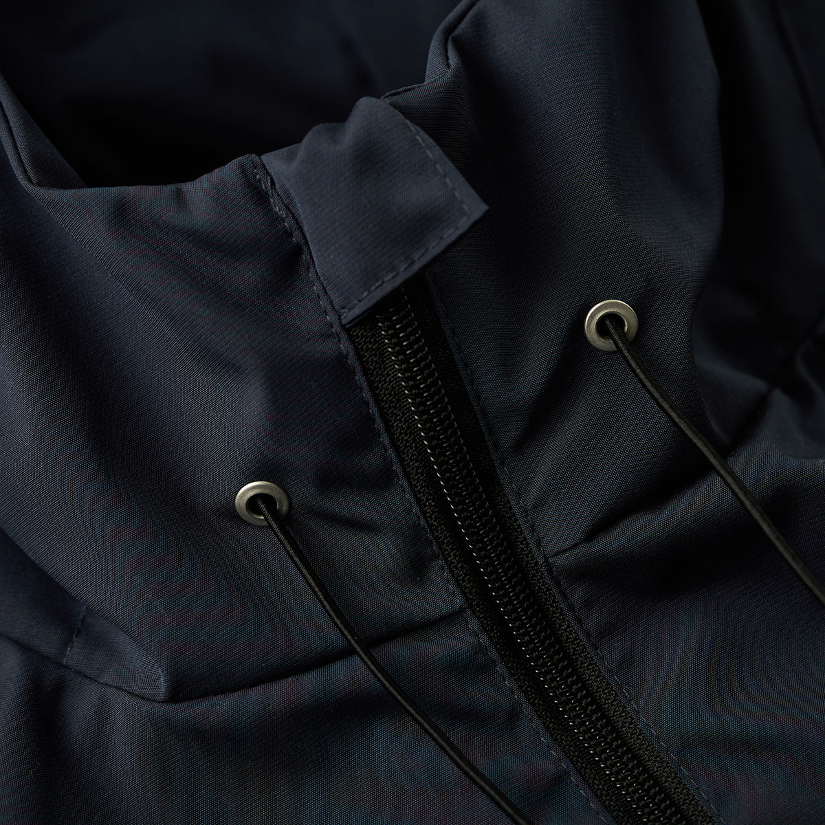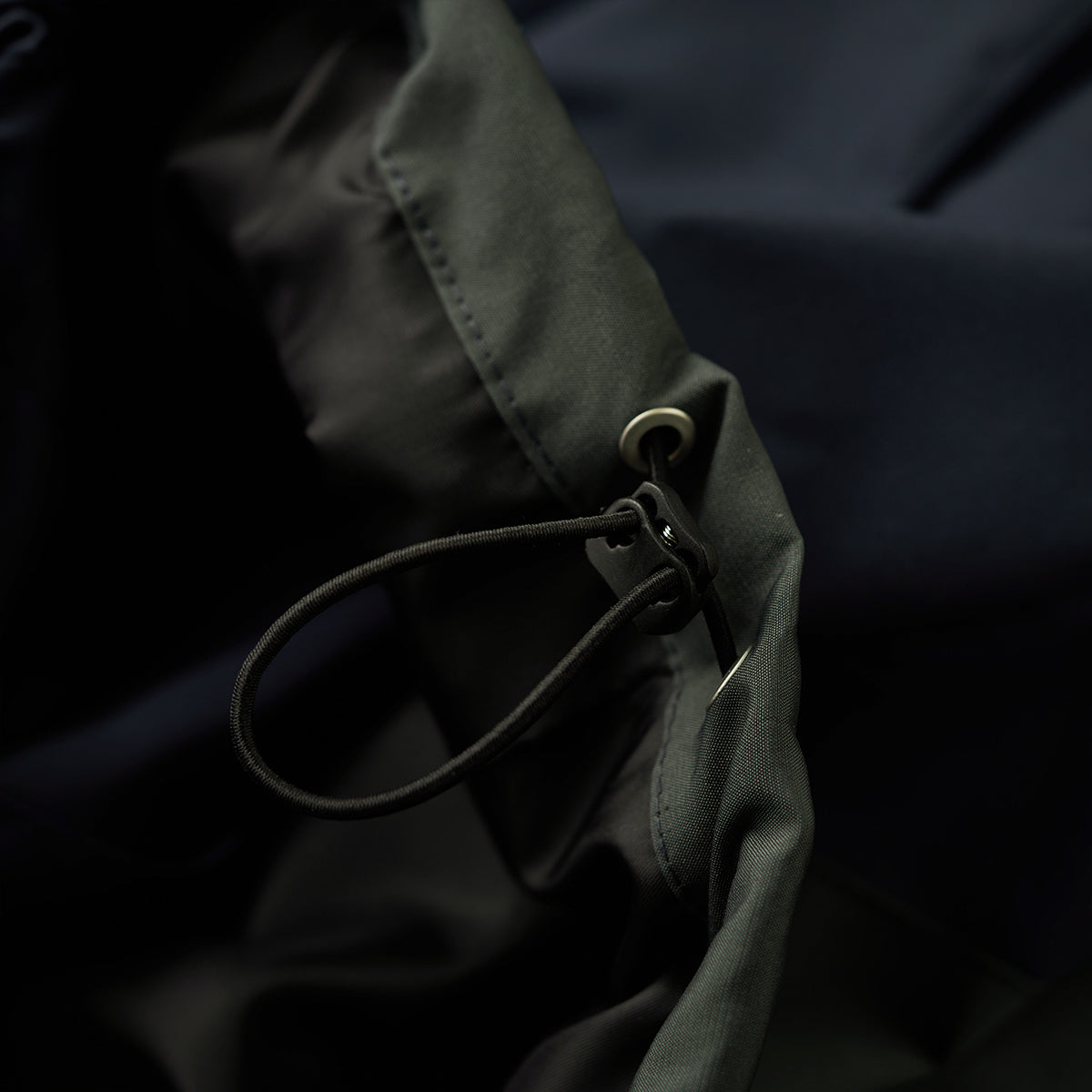 裾周りはドローコードなど防風性と機能性も十分、冷気や風の侵入を軽減し、フィット感を調整できる。